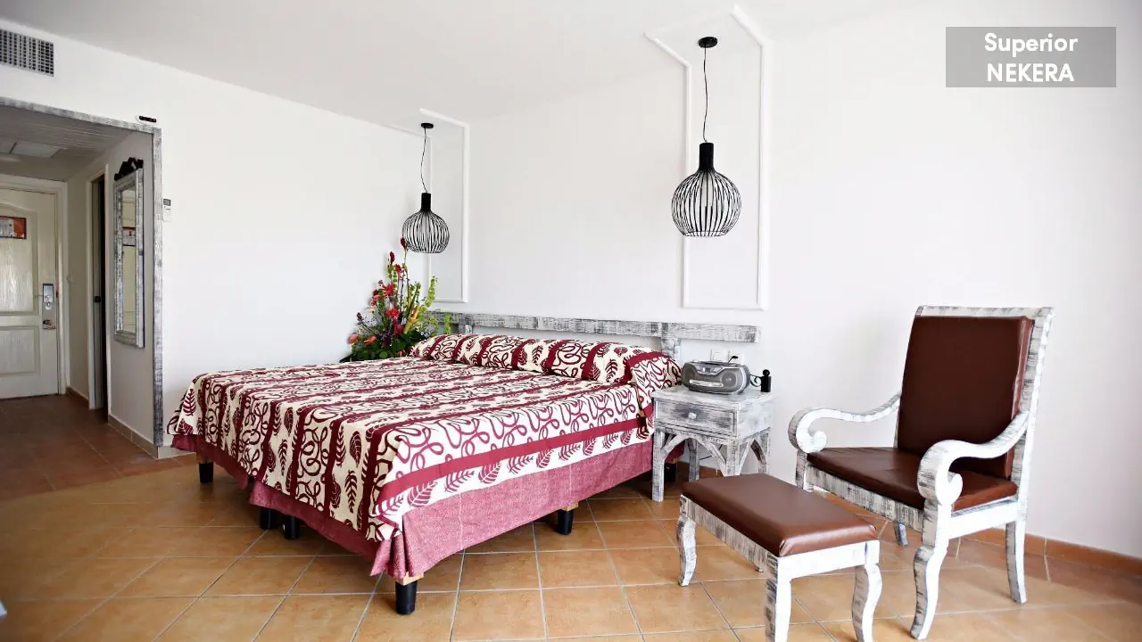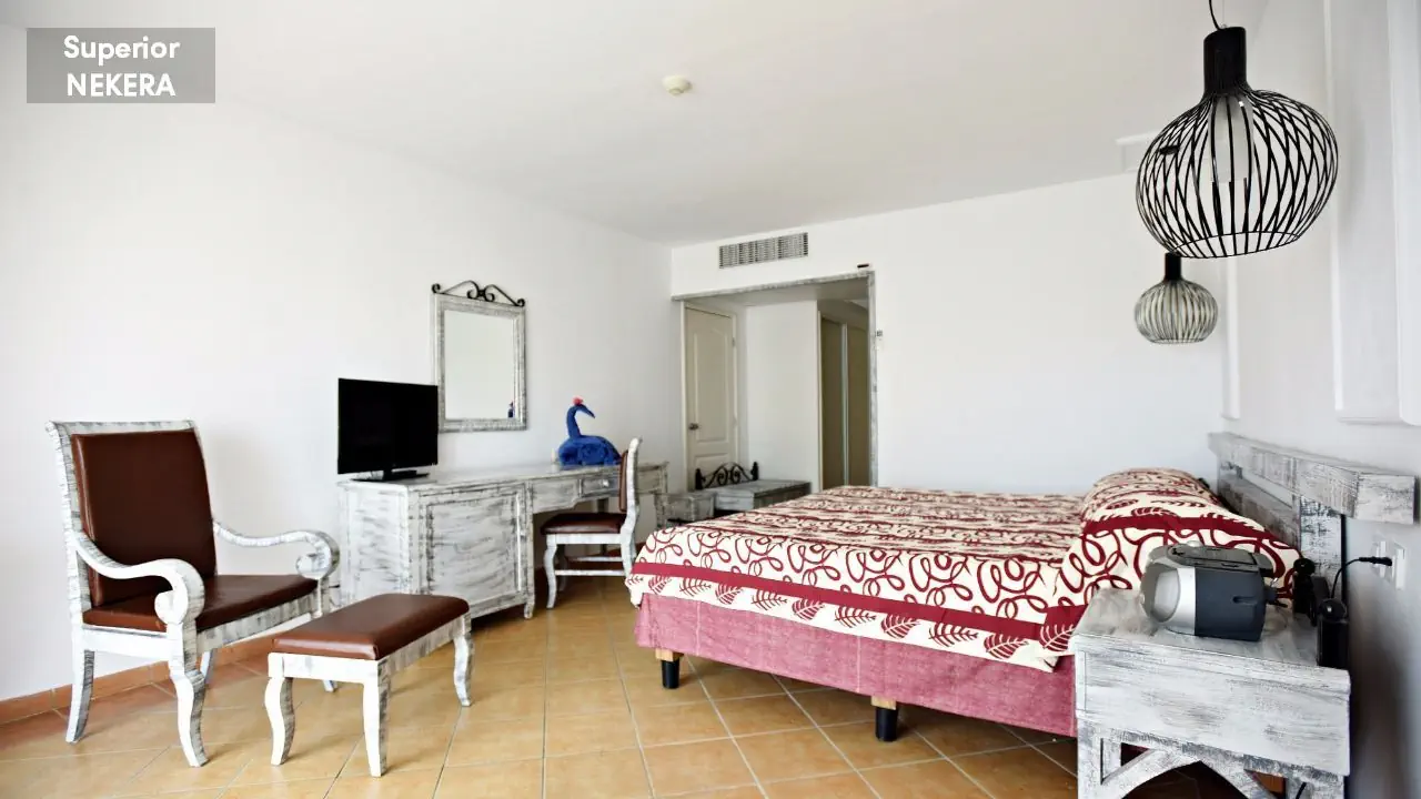 Pokoje deluxe (A1-3A) - z mini lodówką, klimatyzacją, sejfem, TV sat, telefonem, łazienką, suszarką, WC, balkonem lub tarasem. Pokoje komfort (A1-3K): za wyższych pietrach i bliżej plaży. Suity (A1-3B) - z oddzielną sypialnią, z zestawem do przygotowywania kawy/ herbaty, częściowo z widokiem na morze, w pobliżu plaży. Wariant ekonomiczny (A1-3S).