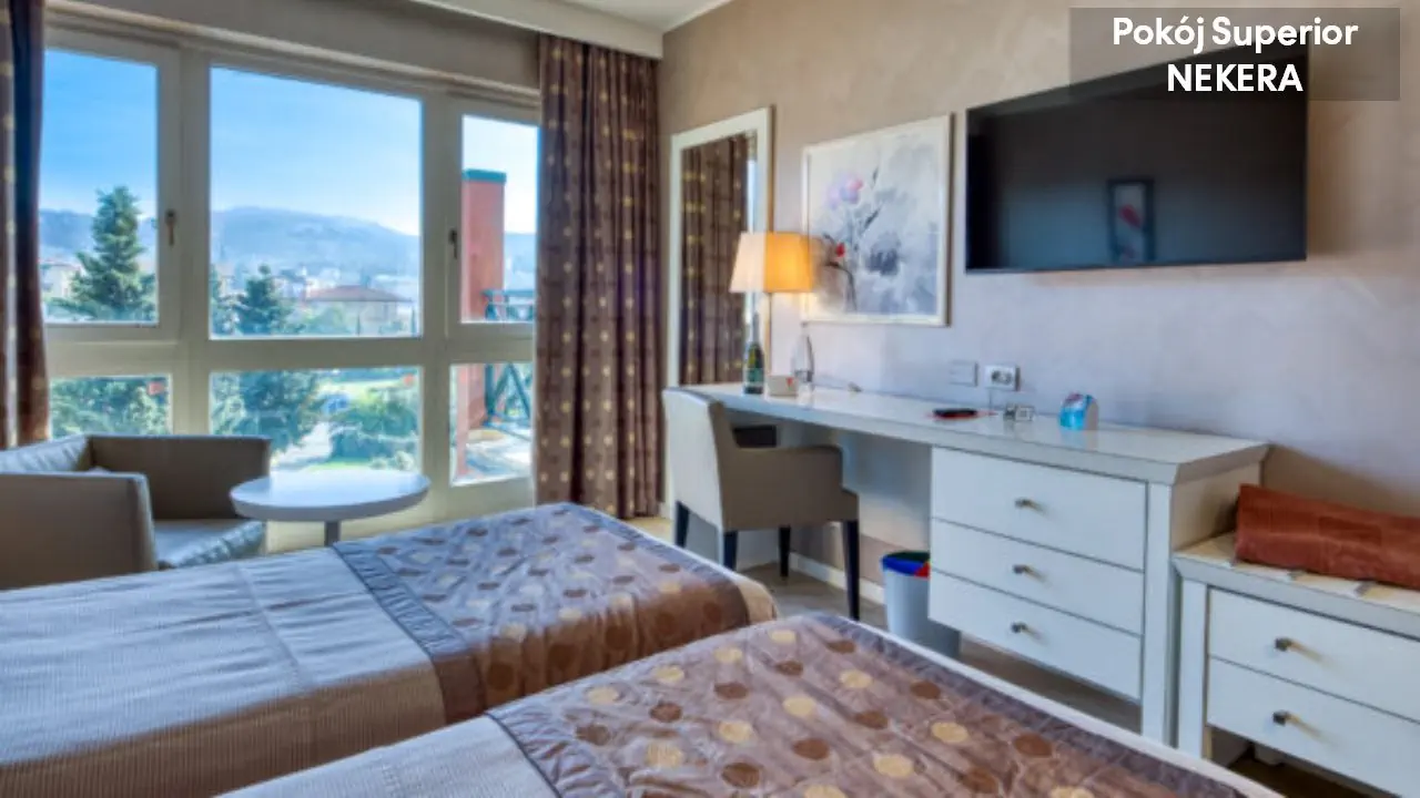 Noclegi, wyżywienie zgodnie z rezerwacją, telefoniczną opiekę rezydenta. Dodatkowo w przypadku imprez pakietowych z przelotem, oprócz ww. świadczeń w cenie zawarty jest: przelot, opłata lotniskowa, opłata za wylot z lotniska lokalnego, transfer lotnisko-hotel-lotnisko (chyba, że dana oferta stanowi inaczej), ubezpieczenie dla imprez turystycznych, bezpośrednia opieka polskojęzycznego rezydenta - w sezonie letnim (wakacyjnym): Kreta, Rodos, Turcja (Riwiera), Majorka, Bułgaria, całorocznie: Malta, na pozostałych kierunkach opieka telefoniczna lub przez czat w serwisie moja.nekera.pl. W przypadku imprez turystycznych opartych o przeloty przewóz bagażu może być nieuwzględniony w cenie. Cena uzależniona jest m.in. od przewoźnika oraz terminu wyjazdu, należy ją zweryfikować podczas zakupu. Linie lotnicze, w których bagaż jest w cenie (20 kg bagaż główny oraz bagaż podręczny) - przeloty czarterowe: Enter Air, LOT (dla wylotów na Rodos), Sky Express, Holiday Europe, European Air Charter, Ryan Sun (dla wylotów na Rodos) oraz przeloty rejsowe: Sun Express, Corendon, Pegasus Airlines, Emirates, Fly Dubai, Quatar Airlines, Air France, Austrian Airlines.Przykładowe linie lotnicze, gdzie bagaż jest dodatkowo płatny to: FR (Ryanair), W6 (WizzAir), Easy Jet. Podane godziny serwowania posiłków oraz funkcjonowania poszczególnych elementów infrastruktury hotelowej mogą ulec nieznacznym zmianom, ze względu na sezonowość, siły wyższe i inne okoliczności.