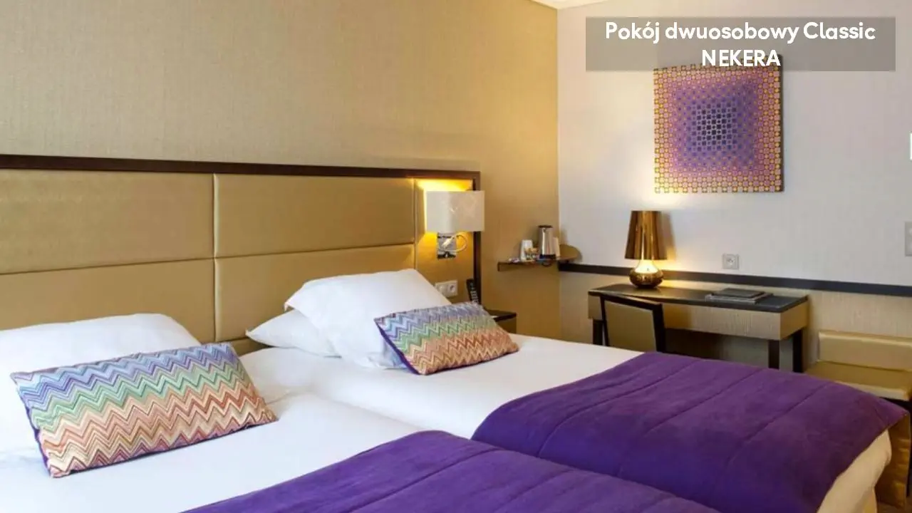 Pokój dwuosobowy Classic: ok. 15 m2, mogący zakwaterować do dwóch osób, jedno łóżko podwójne, TV, Wi-Fi, sejf, indywidulanie sterowana klimatyzacja i ogrzewanie, zestaw do parzenia kawy i herbaty, prywatna łazienka (wanna lub prysznic, toaleta, umywalka, suszarka do włosów). Pokój dwuosobowy Deluxe: ok. 17 m2, mogący zakwaterować dwie osoby dorosłe i dziecko, jedno łóżko podwójne lub dwa łóżka pojedyncze, pokój wyposażony w bezpłatny minibar, szlafrok i kapcie; poza tym wyposażony jak pokój dwuosobowy Classic. Junior Suite: ok. 23 m2, mogący zakwaterować dwie osoby dorosłe i dziecko, jedno łóżko podwójne i część dzienna z dodatkowym łóżkiem; pokój wyposażony w bezpłatny minibar, ekspres do kawy Nespresso; poza tym wyposażony jak pokój dwuosobowy Classic.