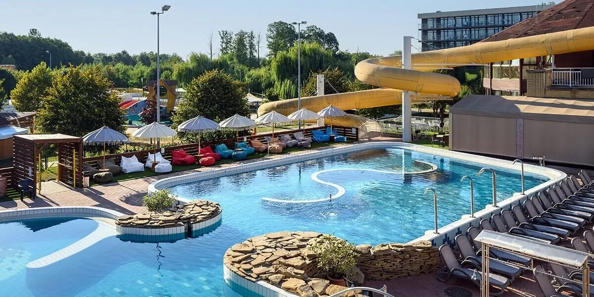 Park Inn by Radisson Zalakaros Hotel and Spa to czterogwiazdkowy hotel w węgierskim uzdrowisku Zalakaros, sąsiadujący bezpośrednio z termami Zalakaros Spa. Należy do renomowanej marki Park Inn sieci Radisson, która gwarantuje jakość pobytu i usług. Dzięki połączeniu z termami, pakietowi all inclusive i wygodnym, klimatyzowanym pokojom z balkonami i szlafrokami do dyspozycji gości, Park Inn by Radisson Zalakaros to idealne miejsce na wypełnione relaksem, ale też wieloma atrakcjami wakacje. A jeśli znudzą Ci się termy, w zaledwie Udogodnienia: Aquapark, Basen zewnętrzny, Basen dla dzieci, Jacuzzi, SPA, Sauna, Masaże, Wellness, Zabiegi odnowy biologicznej, Bar / restauracja, Sala zabaw dla dzieci, Pokój gier, Kącik zabaw dla dzieci, Animacje dla dzieci, Siłownia, Klimatyzacja, Pobyt z pupilem, Winda, Dla niepełnosprawnych, Garaż, Parking strzeżony / monitorowany, Parking, Płatność kartą