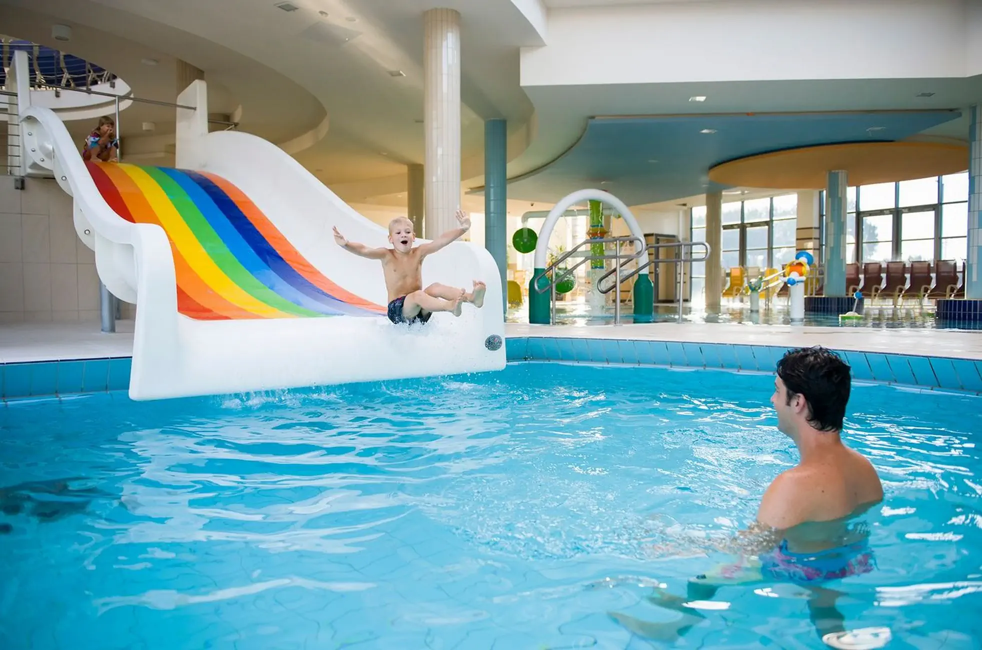 Klimatyzacja Internet Psy i koty mile widziane Dla Niepełnosprawnych Sport Zjeżdzalnie wodne Plac zabaw Basen wewnętrzny Basen zewnętrzny Siłownia Dla Rodzin Bez paszportu Parking Darmowe WiFi