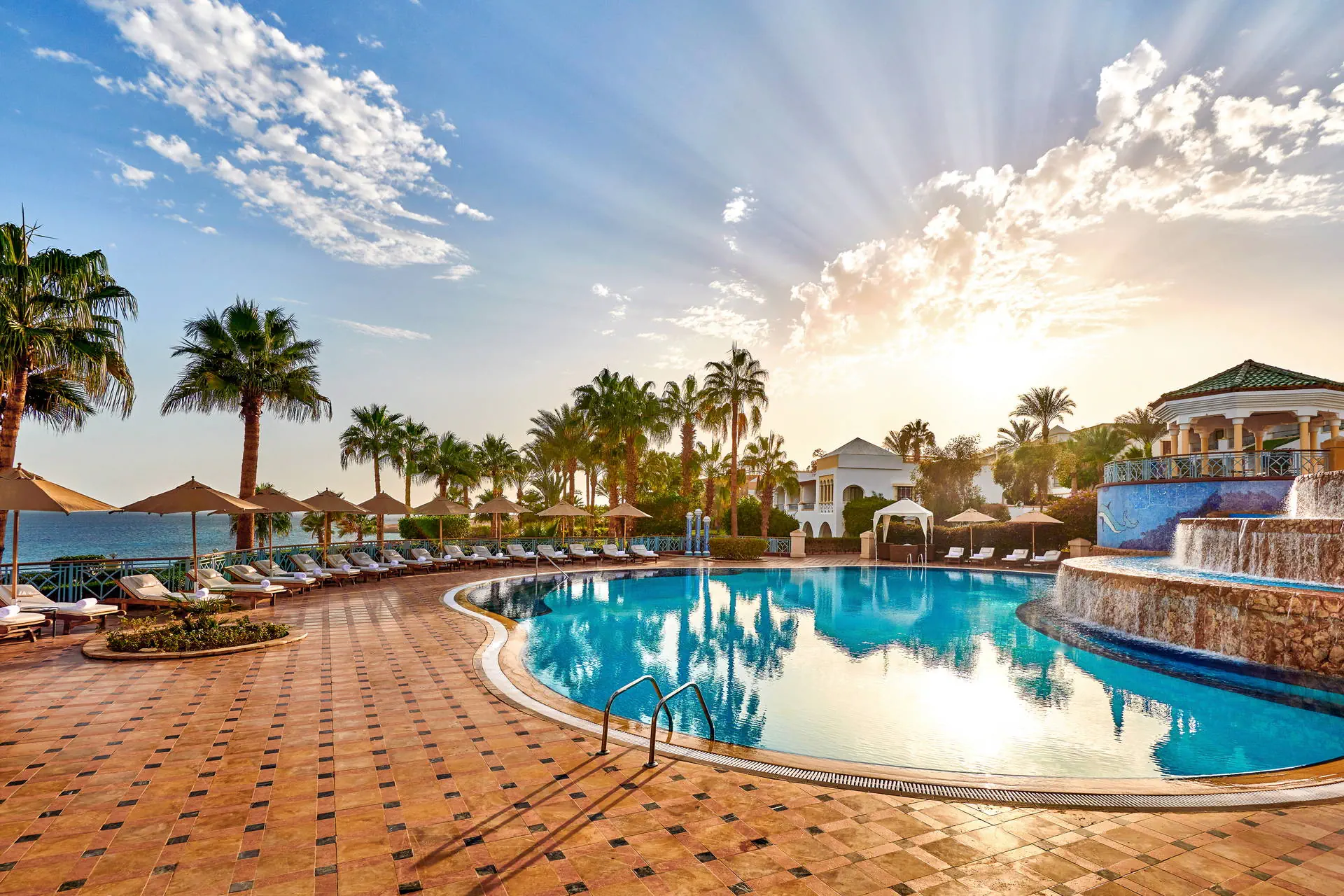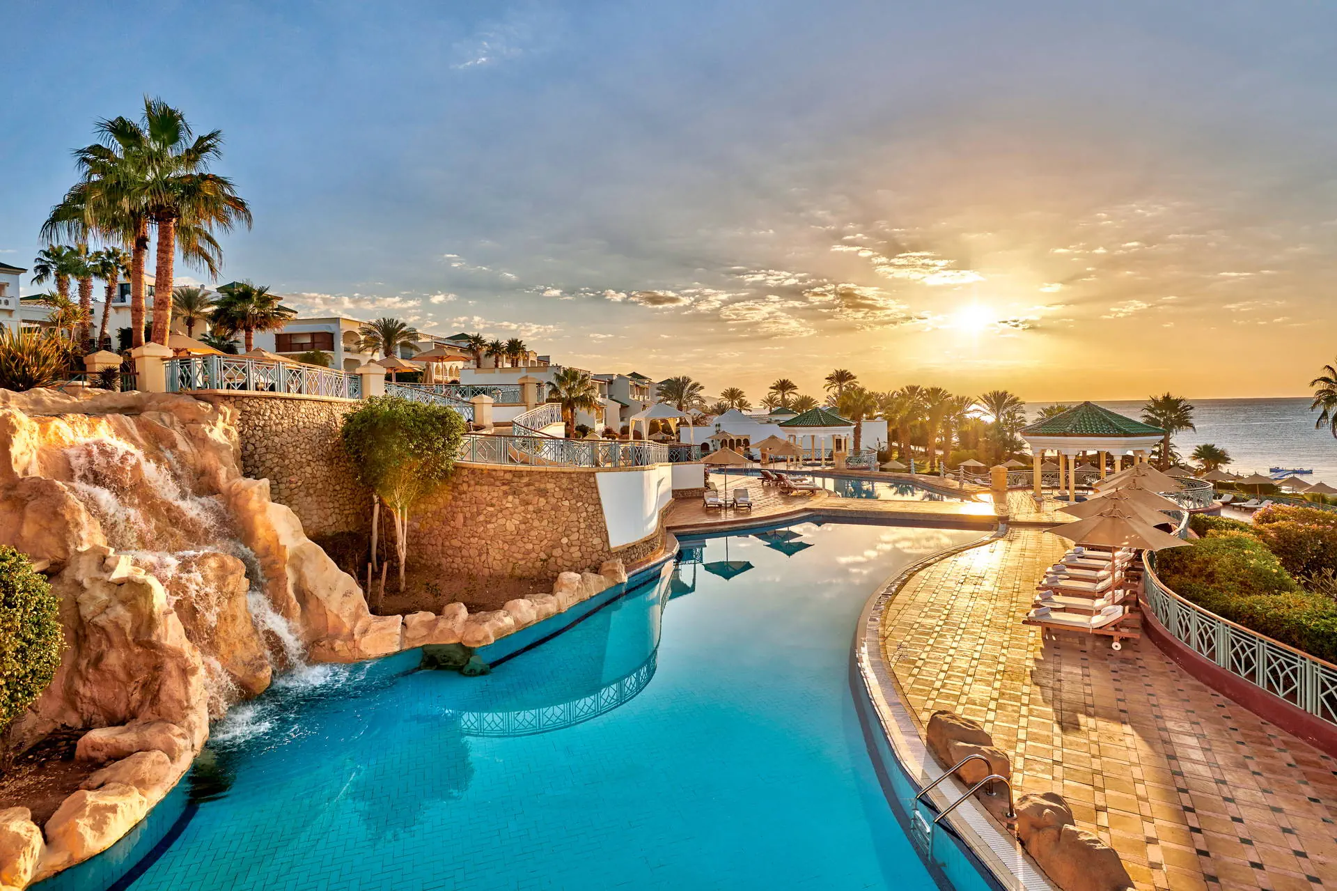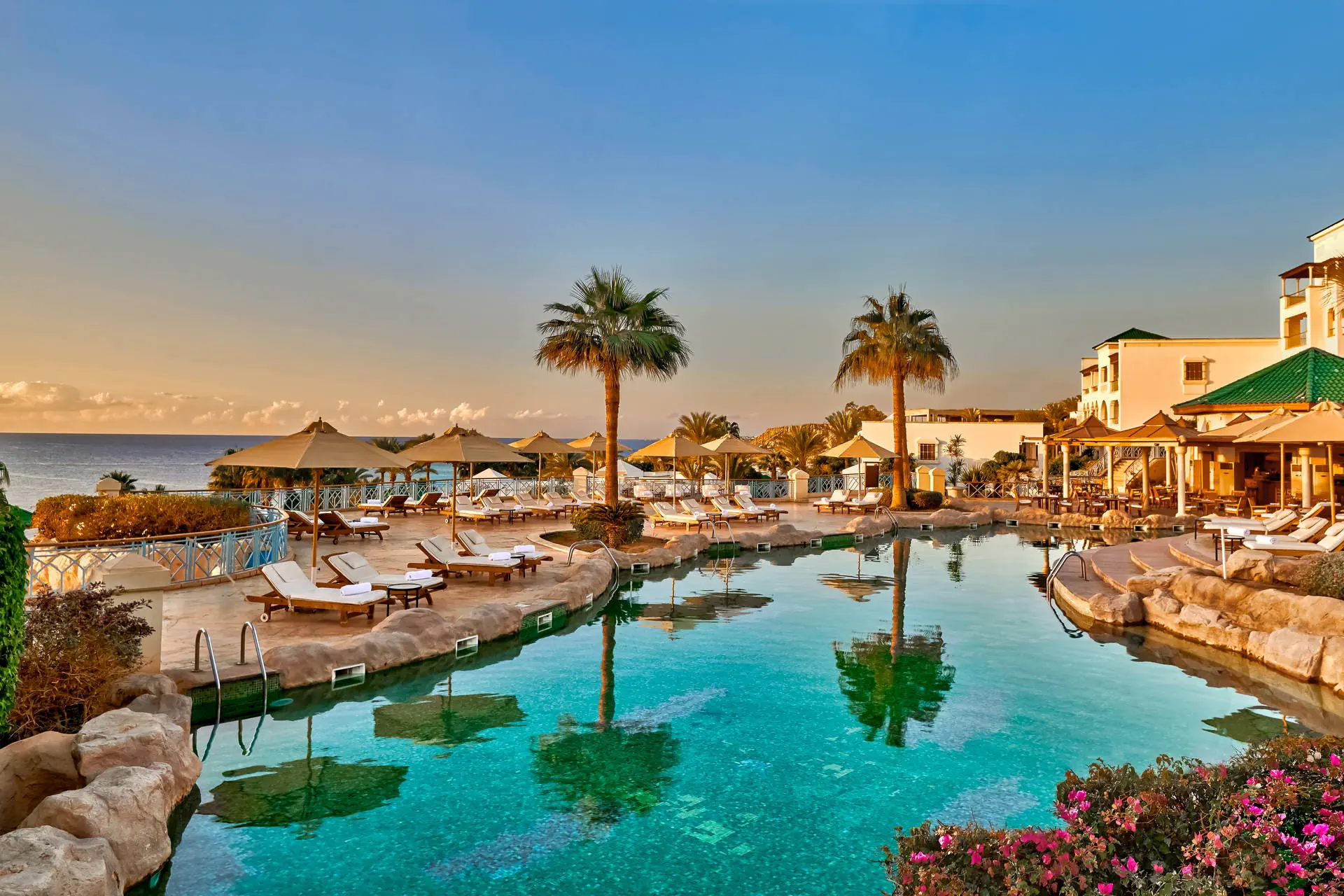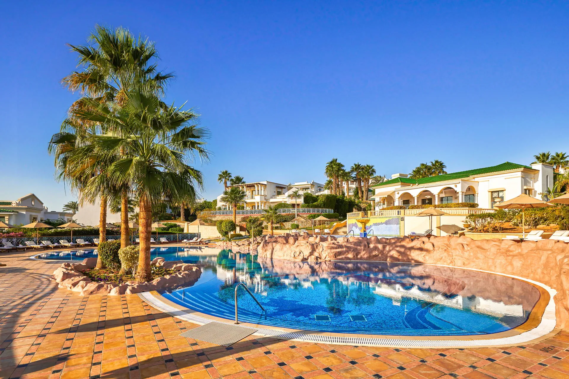 Położenie Do lotniska międzynarodowego w Sharm El Sheikh jest ok. 13 km. Ok. 3 km do centrum słynnej dzielnicy Naama Bay, z bezpłatnym transferem hotelowym dwa razy dziennie. Godziny transferu do potwierdzenia w recepcji. Położony na skraju „wodnej oazy”, nad brzegiem Morza Czerwonego z efektownymi rafami koralowymi. Plaża Odległość od plaży może wynosić ponad 1 km w zależności od lokalizacji pokoju. Dojście do plaży promenadą przez teren hotelu. Szeroka, prywatna, piaszczysta plaża o długości ok. 1 km. Leżaki, parasole i ręczniki w cenie (czynne od 08:00 do zachodu słońca). Pomost dostępny na plaży. Do dyspozycji gości Całodobowa recepcja, eleganckie lobby. Wodny kompleks basenów w kształcie laguny o łącznej powierzchni ok. 2500 m2, z 82 metrową zjeżdżalnią w formie korkociągu (dostępne od 08:00 do zachodu słońca). Atrakcje dla dorosłych: siłownia, spa (płatne). Restauracje: 4 wysokiej klasy restauracje oraz bary na terenie całego hotelu. Pozostałe informacje: punkt wymiany walut, bankomat, sklepy z lokalnymi wyrobami. Pokoje Hotel oferuje 432 luksusowe pokoje i apartamenty urządzone w śródziemnomorskim stylu. Są one zlokalizowane w 19 budynkach na rozległym terenie. Wszystkie pokoje są wyposażone w: łazienkę (wanna lub prysznic, WC, suszarka do włosów, kosmetyki z minerałami z Morza Martwego), klimatyzację, telewizor, telefon, sejf, mini bar płatny), zestaw do parzenia kawy i herbaty oraz balkon lub taras. Wyżywienie Rodzaje wyżywienia i posiłki: All Inclusive obejmuje: Śniadania: 06:30 - 10:30. Obiady: 12:30 - 15:30. Kolacje: 18:30 - 21:30. Przekąski w „Cascades Restaurant & Bar”: 10:00 - 12:00 i 16:30 - 17:30. Restauracje: Cafe Fresco w formie bufetu. „Cascades Restaurant & Bar” - przekąski. „Souk Restaurant” - napoje: 19:00 - 23:00. Bary: „Beach Kiosk”: napoje od 09:00 do zachodu słońca. „Cascades Restaurant & Bar”: napoje od 09:00 do zachodu słońca. „Azure Lounge”: napoje całodobowo, napoje alkoholowe serwowane w godzinach 11:00 - 23:00. Pozostałe informacje: All Inclusive nie obejmuje soków ze świeżych owoców, importowanych napojów alkoholowych, napojów butelkowanych i niektórych rodzajów kawy. Hotel zastrzega sobie prawo do zmian np. godzin serwowania posiłków. Program sportowy i animacyjny Dla każdego: bogaty program animacyjny i sportowy, animacje od 10:00 do 16:00, wieczorne pokazy, siłownia, boisko do gier zespołowych, boisko do siatkówki plażowej, sauna, jacuzzi, zajęcia aerobiku. Dla dzieci: Mini klub „Oasis” czynny codziennie od 09:00 do 18:00, osobny zacieniony brodzik, pokój zabaw, pokój do leżakowania, dostępny dla dzieci od 1 roku życia (do 4 lat z opiekunem). Za dodatkową opłatą: korty tenisowe, boisko do squasha, tenis stołowy, bilard, sporty wodne przy plaży, centrum nurkowe, centrum SPA, możliwość wynajęcia opiekunki. Internet Bezprzewodowy Internet dostępny w lobby, pokojach i większości restauracji (z wyjątkiem Cafe Fresco). Kategoria lokalna ***** Naszym zdaniem Obiekt wyróżnia się zjawiskowym położeniem, wysokim poziomem usług i świetną kuchnią. Atutem jest także malowniczy teren pełen bujnej roślinności. Strona www www.parkregency.net