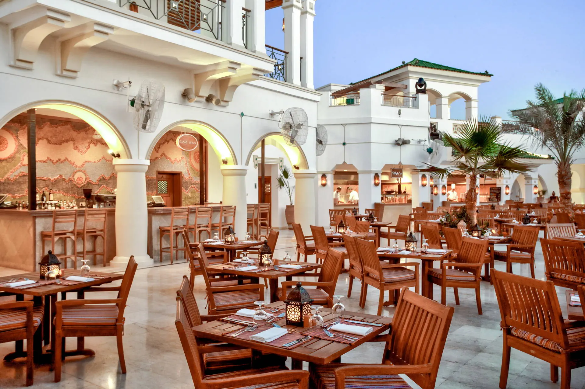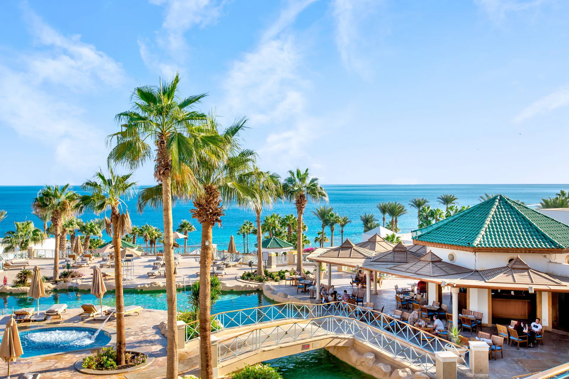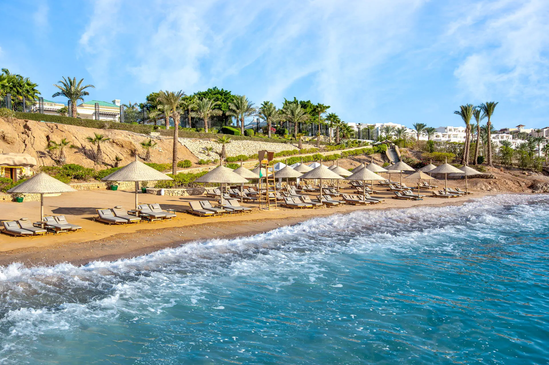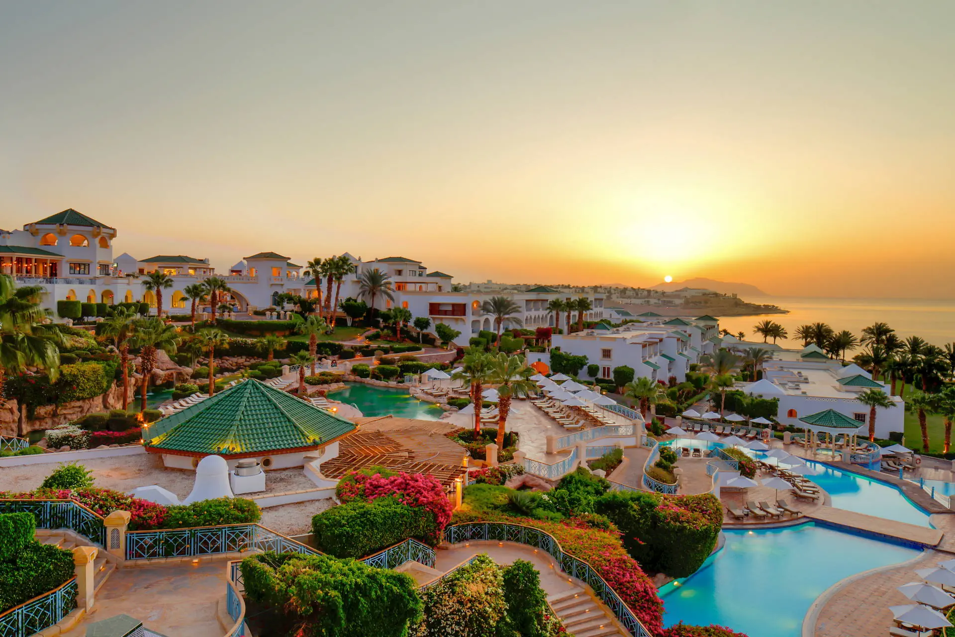 Położenie Do lotniska międzynarodowego w Sharm El Sheikh jest ok. 13 km. Ok. 3 km do centrum słynnej dzielnicy Naama Bay, z bezpłatnym transferem hotelowym dwa razy dziennie. Godziny transferu do potwierdzenia w recepcji. Położony na skraju „wodnej oazy”, nad brzegiem Morza Czerwonego z efektownymi rafami koralowymi. Plaża Odległość od plaży może wynosić ponad 1 km w zależności od lokalizacji pokoju. Dojście do plaży promenadą przez teren hotelu. Szeroka, prywatna, piaszczysta plaża o długości ok. 1 km. Leżaki, parasole i ręczniki w cenie (czynne od 08:00 do zachodu słońca). Pomost dostępny na plaży. Do dyspozycji gości Całodobowa recepcja, eleganckie lobby. Wodny kompleks basenów w kształcie laguny o łącznej powierzchni ok. 2500 m2, z 82 metrową zjeżdżalnią w formie korkociągu (dostępne od 08:00 do zachodu słońca). Atrakcje dla dorosłych: siłownia, spa (płatne). Restauracje: 4 wysokiej klasy restauracje oraz bary na terenie całego hotelu. Pozostałe informacje: punkt wymiany walut, bankomat, sklepy z lokalnymi wyrobami. Pokoje Hotel oferuje 432 luksusowe pokoje i apartamenty urządzone w śródziemnomorskim stylu. Są one zlokalizowane w 19 budynkach na rozległym terenie. Wszystkie pokoje są wyposażone w: łazienkę (wanna lub prysznic, WC, suszarka do włosów, kosmetyki z minerałami z Morza Martwego), klimatyzację, telewizor, telefon, sejf, mini bar płatny), zestaw do parzenia kawy i herbaty oraz balkon lub taras. Wyżywienie Rodzaje wyżywienia i posiłki: All Inclusive obejmuje: Śniadania: 06:30 - 10:30. Obiady: 12:30 - 15:30. Kolacje: 18:30 - 21:30. Przekąski w „Cascades Restaurant & Bar”: 10:00 - 12:00 i 16:30 - 17:30. Restauracje: Cafe Fresco w formie bufetu. „Cascades Restaurant & Bar” - przekąski. „Souk Restaurant” - napoje: 19:00 - 23:00. Bary: „Beach Kiosk”: napoje od 09:00 do zachodu słońca. „Cascades Restaurant & Bar”: napoje od 09:00 do zachodu słońca. „Azure Lounge”: napoje całodobowo, napoje alkoholowe serwowane w godzinach 11:00 - 23:00. Pozostałe informacje: All Inclusive nie obejmuje soków ze świeżych owoców, importowanych napojów alkoholowych, napojów butelkowanych i niektórych rodzajów kawy. Hotel zastrzega sobie prawo do zmian np. godzin serwowania posiłków. Program sportowy i animacyjny Dla każdego: bogaty program animacyjny i sportowy, animacje od 10:00 do 16:00, wieczorne pokazy, siłownia, boisko do gier zespołowych, boisko do siatkówki plażowej, sauna, jacuzzi, zajęcia aerobiku. Dla dzieci: Mini klub „Oasis” czynny codziennie od 09:00 do 18:00, osobny zacieniony brodzik, pokój zabaw, pokój do leżakowania, dostępny dla dzieci od 1 roku życia (do 4 lat z opiekunem). Za dodatkową opłatą: korty tenisowe, boisko do squasha, tenis stołowy, bilard, sporty wodne przy plaży, centrum nurkowe, centrum SPA, możliwość wynajęcia opiekunki. Internet Bezprzewodowy Internet dostępny w lobby, pokojach i większości restauracji (z wyjątkiem Cafe Fresco). Kategoria lokalna ***** Naszym zdaniem Obiekt wyróżnia się zjawiskowym położeniem, wysokim poziomem usług i świetną kuchnią. Atutem jest także malowniczy teren pełen bujnej roślinności. Strona www www.parkregency.net