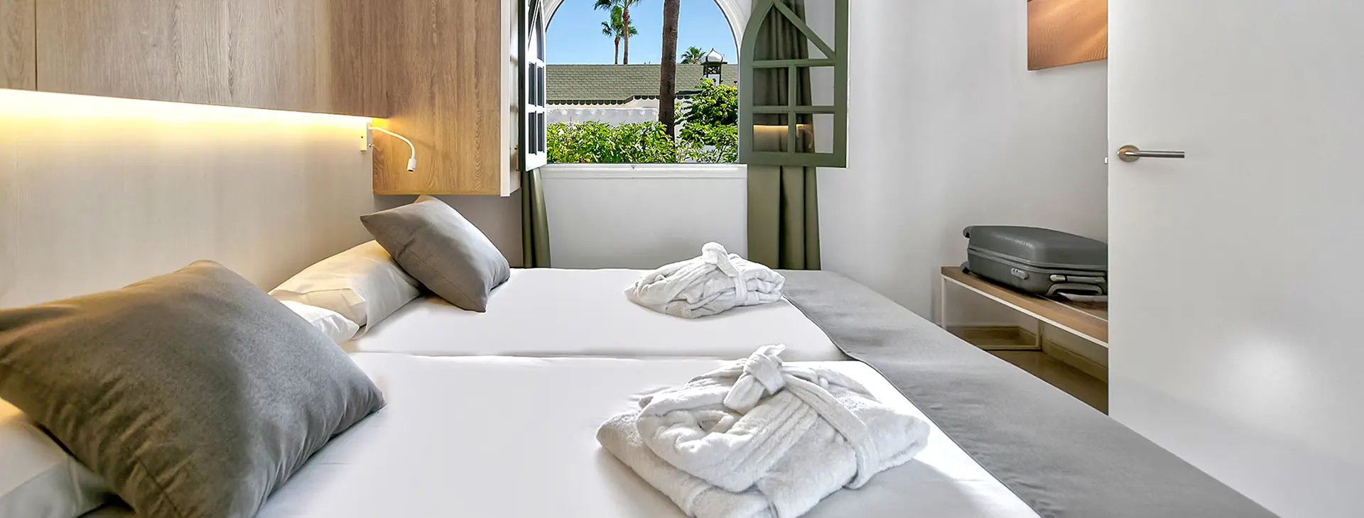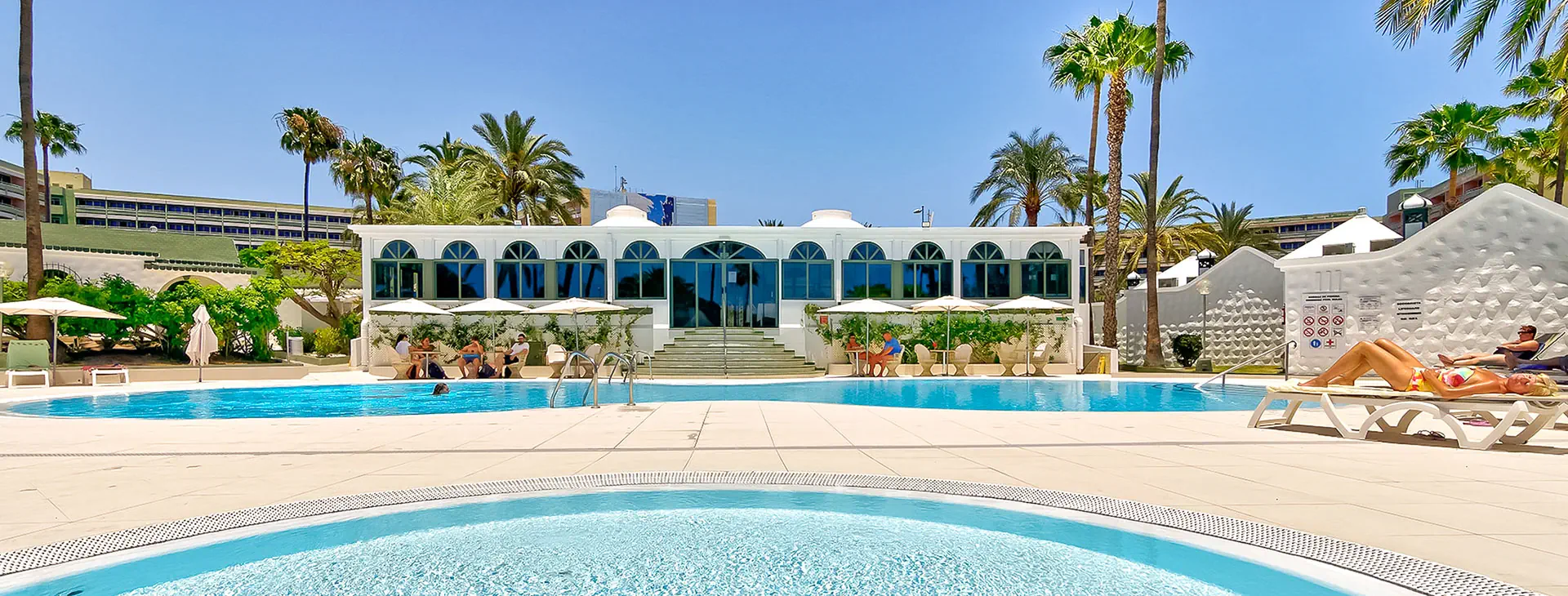 Położenie: Hotel zlokalizowany w odległości ok. 500 m od centrum wakacyjnego kurortu Playa del Ingles (sklepy, bary, restuaracje, dyskoteki). Sklepy ok. 300 m od hotelu. Do lotniska ok. 32 km. Plaża: Do piaszczystej plazy Playa del Ingles ok. 1km. Parasole i leżaki na plaży płatne ok. 10Eur/komplet. Do dyspozycji gości: Recepcja, lobby, restauracja główna, bar, basen, brodzik dla dzieci (słodka woda), taras słoneczny z leżakami i parasolami, łożka balijskie (płatne ok. 20Eur/łóżko-w cenie: butelka owdy, lokalnye wino musujące, kosz świeżych owoców), wypożyczalnia samochodów (płatna). Hotel nie zapewnia ręczników basenowych. Hotel tylko dla osób pełnoletnich. Pokoje: Hotel posiada 122 pokoi różnego typu. Wszystkie przestronne z osobną sypialnią (lub dwiema), pokojem dziennym, łazienką (prysznic lub wanna, suszarka do włosów), telefonem, TV-sat, sejfem (płatny), tarasem (meble ogrodowe). Bungalow z 1 sypialnią(pow. ok. 45m2) - dla max. 3 osób, dostawka w formie sofy. Część z nich posiada aneks kuchenny. Bungalow z 2 sypialniami(pow. ok. 53m2) - dla max. 5 osób, dostawka w formie sofy, aneks kuchenny. Wyżywienie: Śniadania (08:00-10:00) i obiadokolacje (18:00-21:00) w formie bufetu - napoje płatne dodatkowo. Program sportowy i animacyjny: Hotel nie prowadzi animacji. Internet: WiFi w hotelu (płatne). Kategoria lokalna: 2 klucze Strona www: