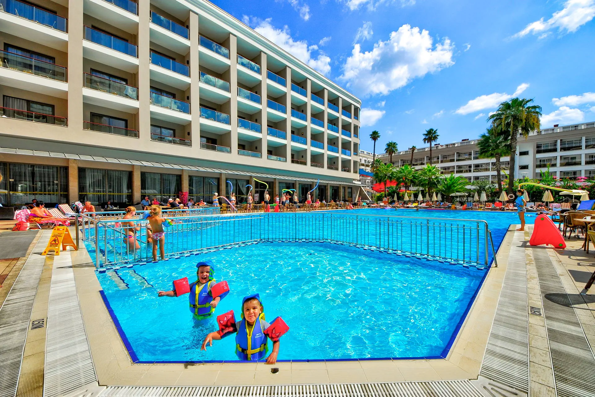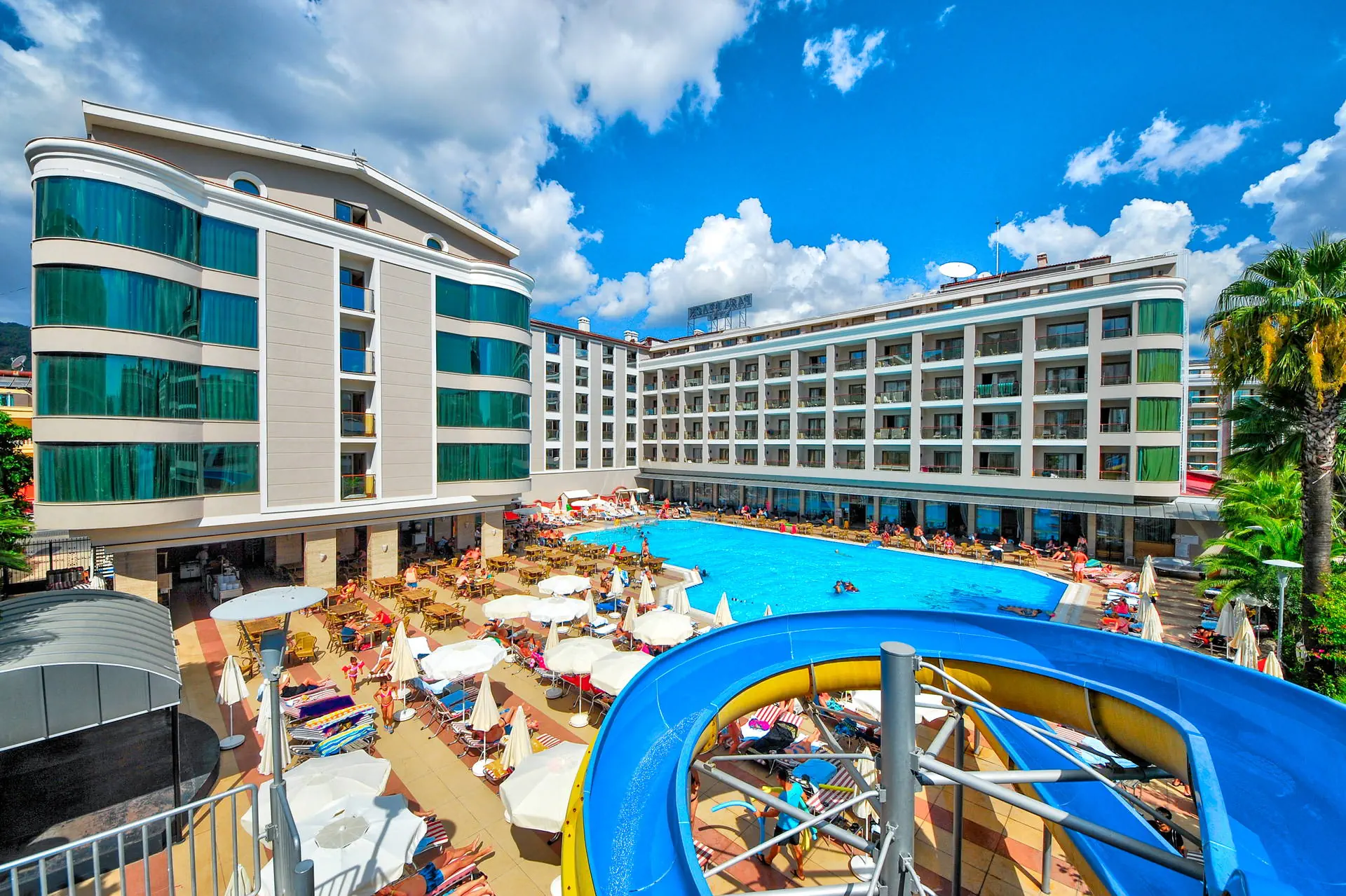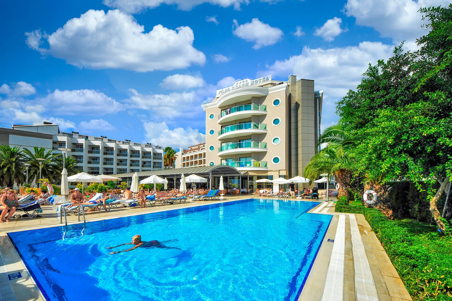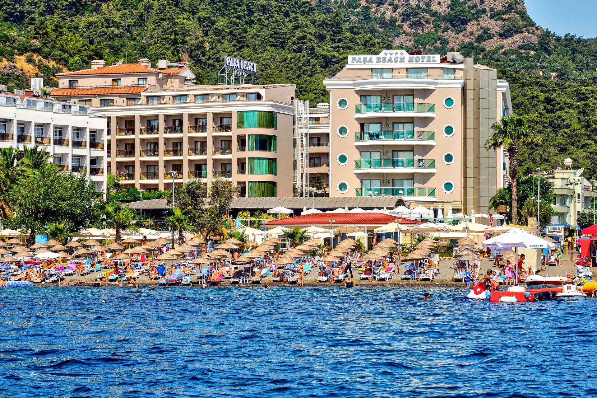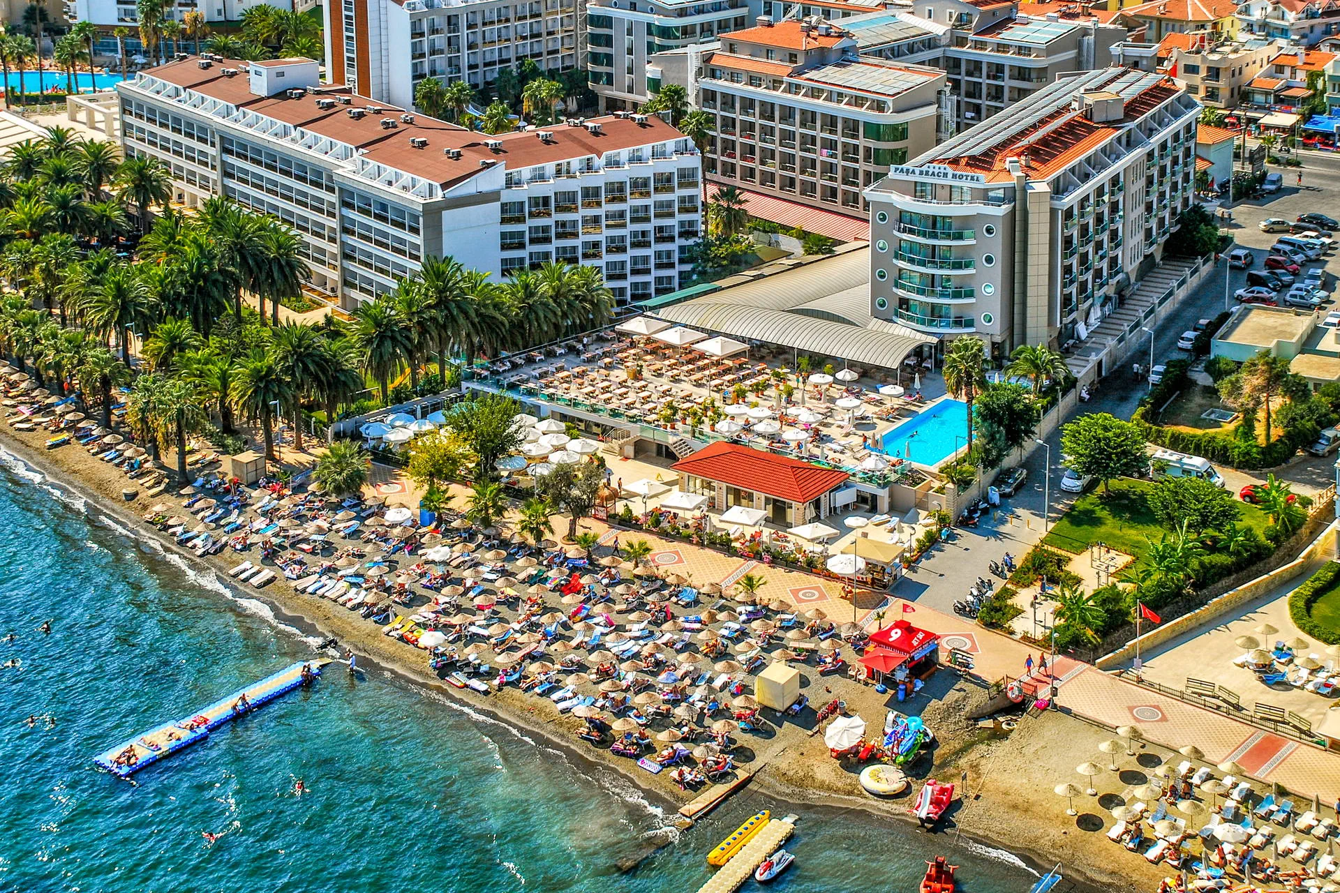 Położenie Hotel znajduje się w doskonałej lokalizacji, oferując wspaniałe widoki na morze i góry. Obiekt położony jest około 3 km od tętniącego życiem centrum kurortu Marmaris. Do lotniska w Dalamanie jest około 95 km. Plaża Plaża bezpośrednio przy hotelu. Wystarczy przejść przez nadmorską promenadę, aby dotrzeć na plażę. Piaszczysto-żwirowa, prywatna. Bezpłatne ręczniki plażowe, leżaki i parasole. Do dyspozycji gości Hotel składa się z 2 budynków, określanych jako części A i B. Recepcja 24h/7. 1 basen ze zjeżdżalnią, 1 basen kryty, 3 brodziki dla dzieci, ręczniki kąpielowe, leżaki i parasole przy basenie bezpłatne. Atrakcje dla dzieci: 3 brodziki dla dzieci. Restauracje: restauracja główna, restauracja a’la carte (płatna wg menu), 3 bary: lobby, snack, pool. Pozostałe informacje: za opłatą: pralnia, lekarz, fryzjer, mini market. Wyżywienie Rodzaje wyżywienia i posiłki: All Inclusive: Śniadanie: 07:30 - 10:00. Późne śniadanie: 10:00 - 11:00. Lunch: 12:30 - 14:00. Obiadokolacja: 19:00 - 21:00; posiłki w formie bufetu. Przekąski w ciągu dnia: 12:00 - 16:00. Kawa/herbata oraz nocna przekąska: 23:00 - 24:00. Pozostałe informacje: Lokalne napoje bezalkoholowe i alkoholowe: wino, piwo, raki, wódka, gin (10:00 - 24:00). Płatne dodatkowo: importowane napoje bezalkoholowe i alkoholowe, napoje butelkowane oraz soki ze świeżych owoców. Wysokie krzesła oraz dania dla dzieci dostępne w restauracji. Program sportowy i animacyjny Dla każdego: aerobik, aqua aerobic, ćwiczenia rozciągające, taniec brzucha, rzutki, bingo, quizy, wieczory z DJ-em, centrum fitness, sauna i łaźnia turecka, tenis stołowy. Tylko dla dorosłych: bilard, raz w tygodniu noc turecka. Dla dzieci: mini klub dla dzieci. Za dodatkową opłatą: zabiegi i masaże w centrum SPA, sporty wodne na plaży (motorówki, skutery wodne, parasailing, ringo, banan). Internet Bezpłatny Internet Wi-Fi w lobby budynku B oraz w pokojach. Kategoria lokalna **** Naszym zdaniem Wygodny hotel, położony w pobliżu centrum popularnego kurortu Marmaris, o wysokim standardzie usług. Polecamy przede wszystkim osobom lubiącym wypoczynek w komfortowych warunkach oraz szukającym miejskich rozrywek i atrakcji oferowanych przez centrum miejscowości turystycznej. Jego dużym atutem jest położenie tuż przy plaży w wakacyjnym kurorcie. Strona www www.pasahotels.com