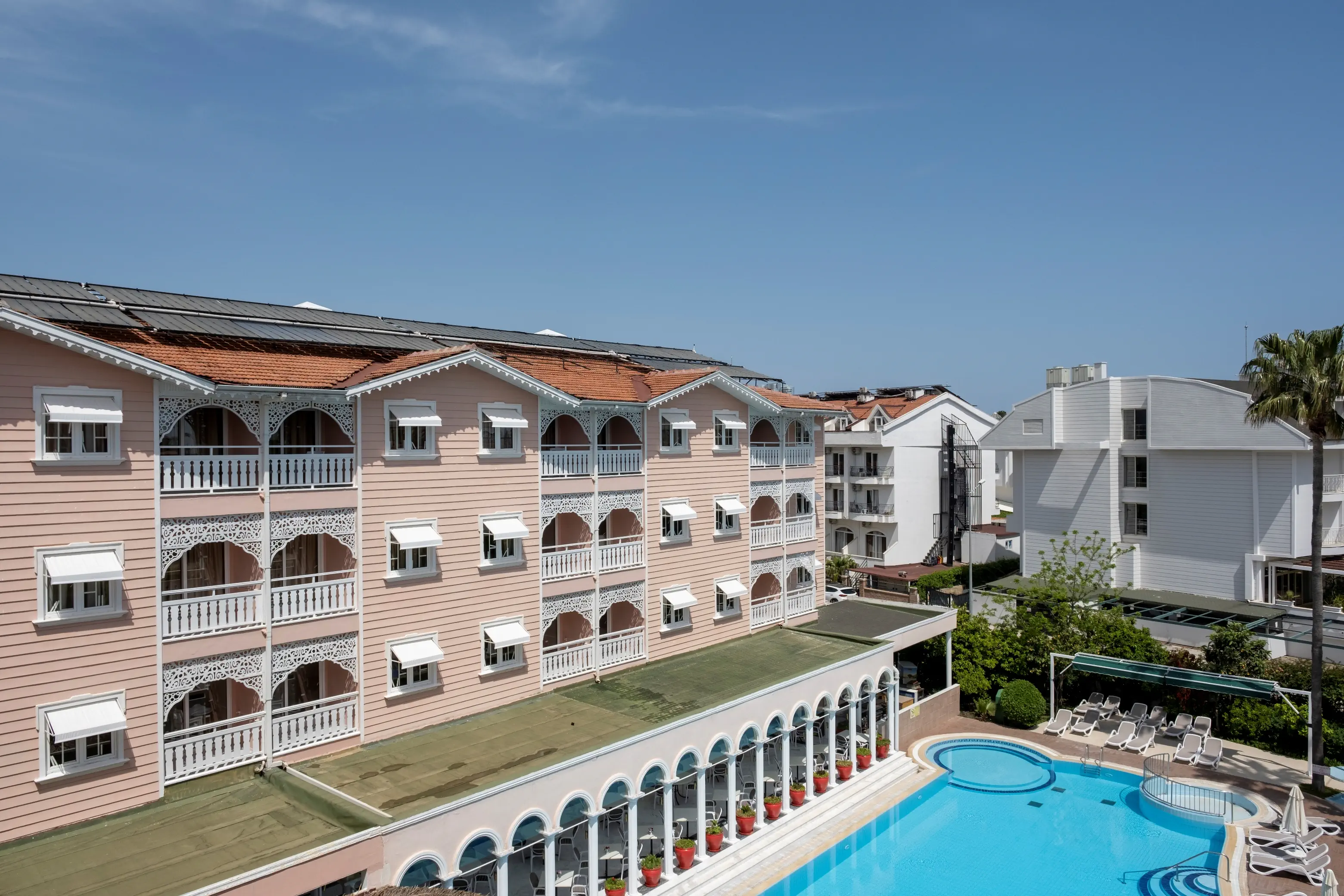 Hotel położony w pobliżu Kemer z basenem i piaszczysto-żwirową plażą będzie idealny na wakacje pełne spokoju i relaksu. Dodatkowo w obiekcie znajdziemy m.in. animacje, centrum SPA i siłownię.