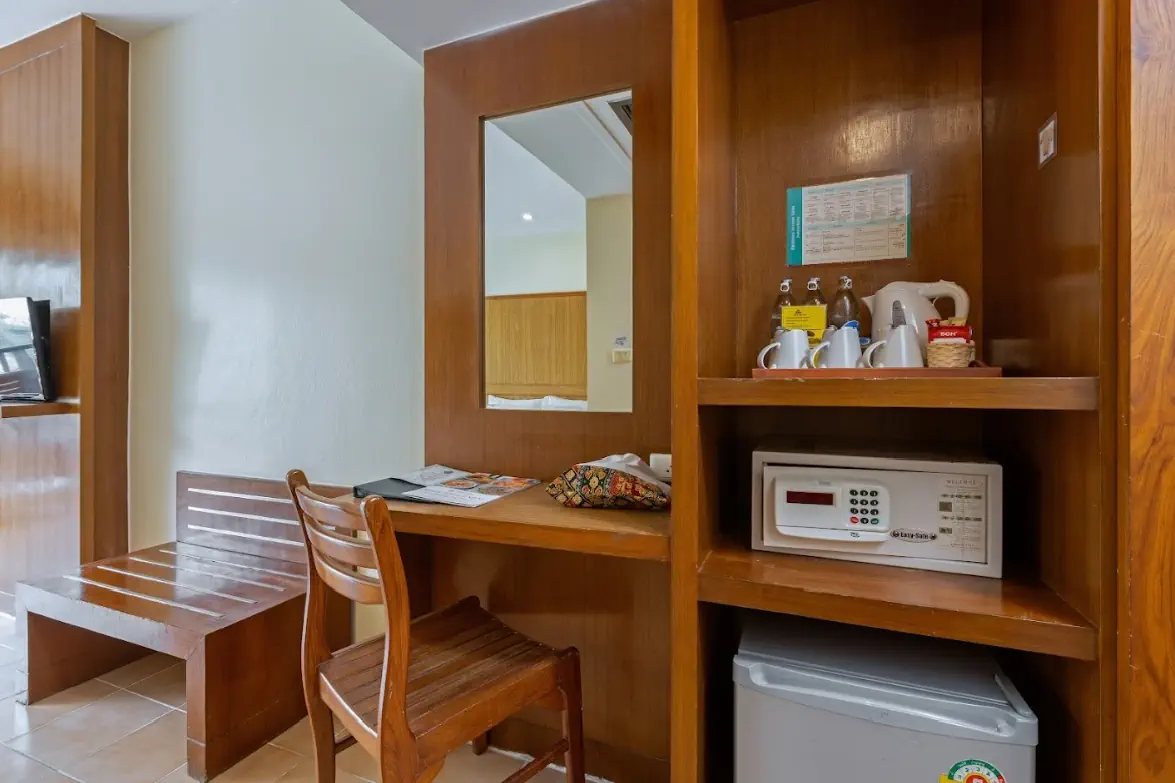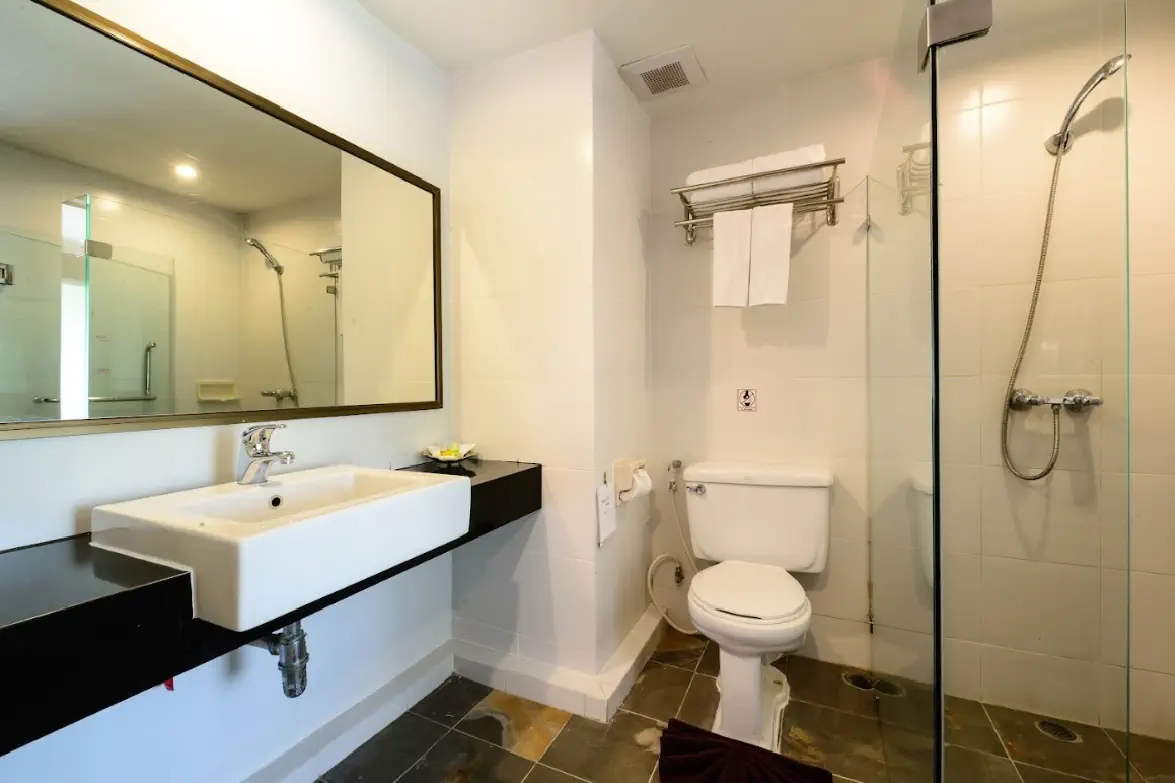 Dla max. 3 osób, Przestrzeń zewnętrzna: Balkon, Kanały telewizji: Angielski, Telefon w pokoju, prysznic, Powierzchnia pokoju: ok. 32 m2, Rodzaj podłogi: płytki, Sprzątanie codziennie, 1 sypialnia, Maksymalna liczba osób dorosłych: 3, Maksymalna liczba dzieci: 1, Widok niesprecyzowany , Liczba łazienek: 1, Liczba toalet: 1, Zestaw do parzenia kawy i herbaty, Klimatyzacja: Klimatyzacja indywidualna