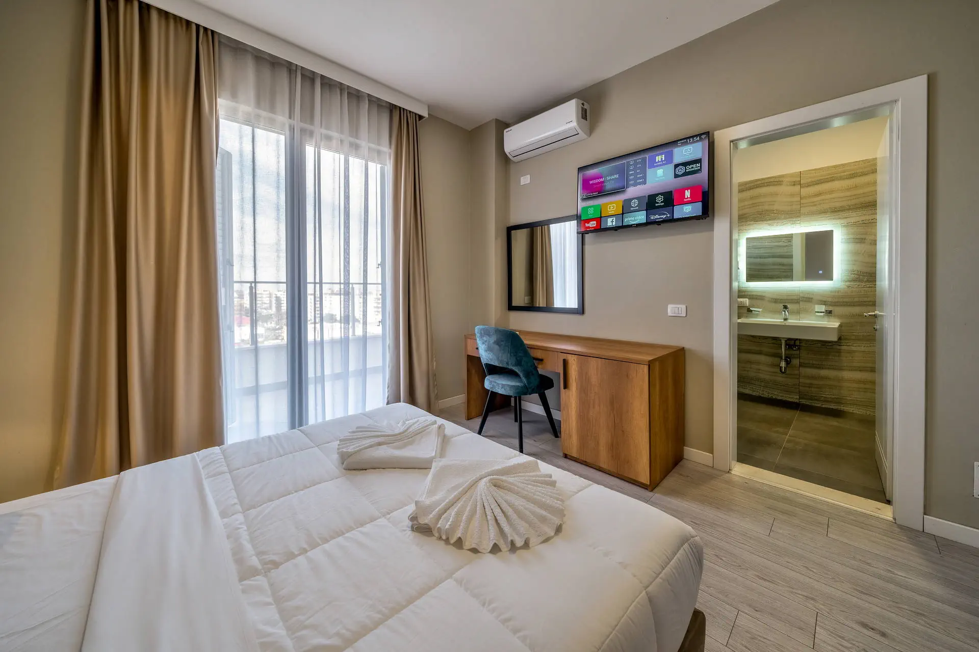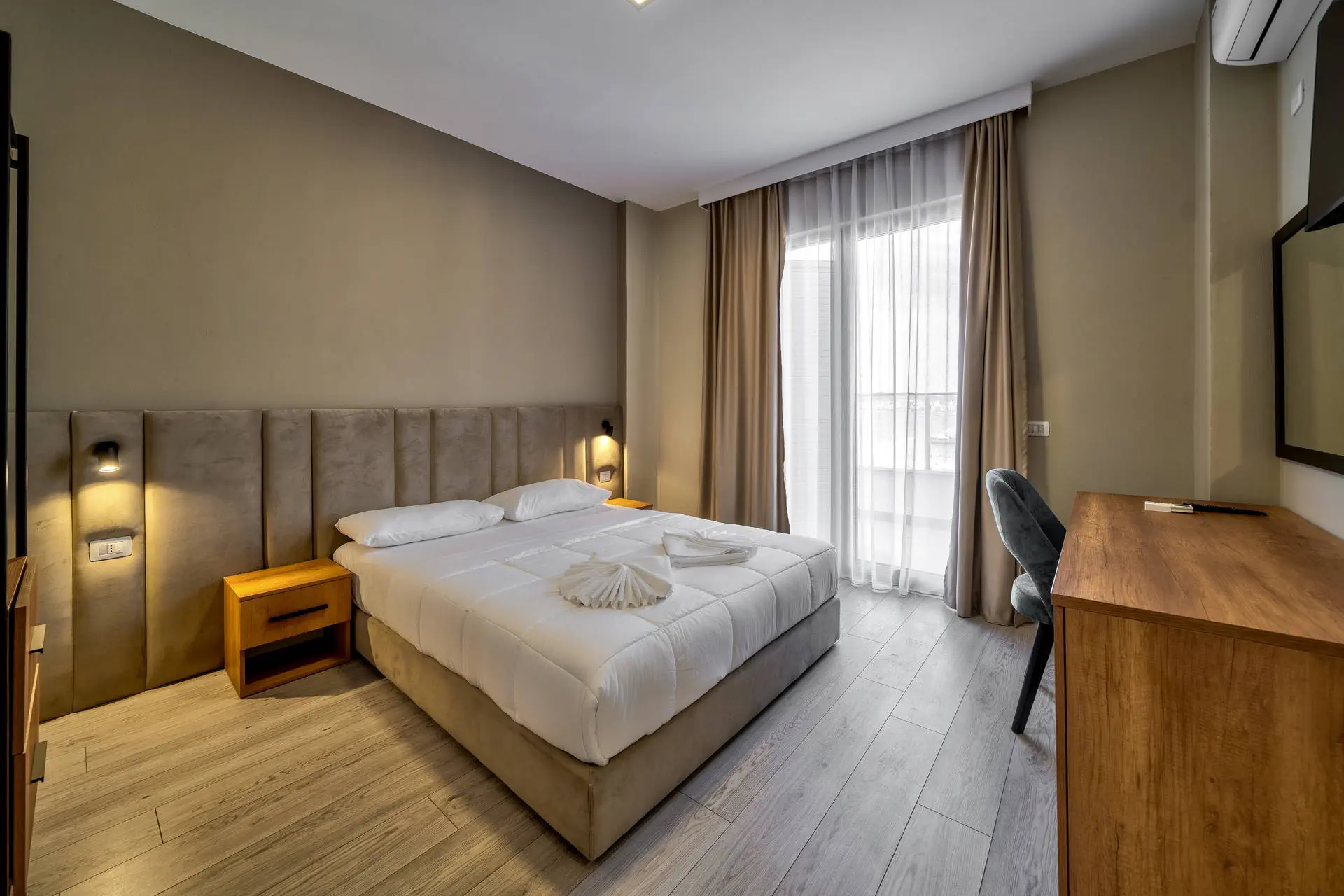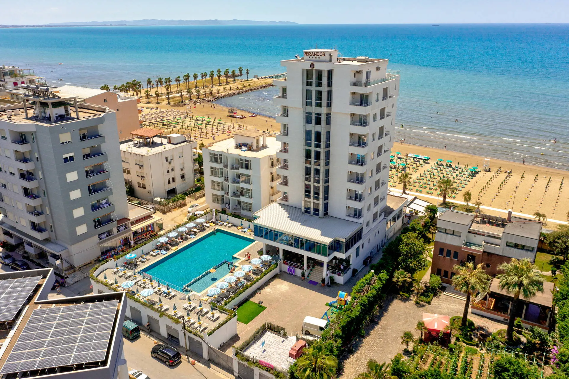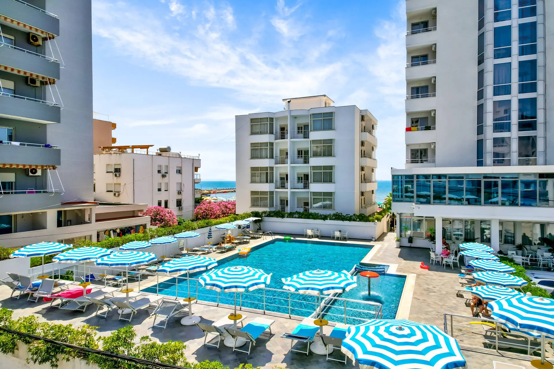 Położenie Hotel położony jest w turystycznej dzielnicy Durrës, gdzie znajdują się liczne restauracje, sklepy, kawiarnie i puby.Odległość do najbliższego lotniska w Tiranie wynosi ok. 34 km. Hotel znajduje się ok. 3,5 km od pobliskiego portu oraz ok. 4,5 km od starego miasta i amfiteatru. Obiekt zlokalizowany jest tuż przy plaży i promenadzie. Plaża Plaża bezpośrednio przy hotelu. Długa i szeroka, z łagodnym zejściem do morza, wydzielona prywatna część. Bezpłatny serwis plażowy dla Gości hotelu (leżaki i parasole). Do dyspozycji gości Całodobowa recepcja z lobby.Sejf w recepcji. Winda.Basen zewnętrzny, basen dla dzieci, leżaki i parasole przy basenie. Restauracje: restauracja główna, bar w restauracji głównej, bar przy basenie, beach bar (płatne). Pozostałe informacje: przechowalnia bagażu, taras słoneczny. Pokoje Hotel oferuje 64 komfortowych, wyremontowanych w 2024 roku pokoi 2-osobowych (ok. 17 m2) wyposażonych w łóżko podwójne lub 2 pojedyncze, łazienkę (prysznic lub wanna, wc, bidet), klimatyzację, TV, lodówkę. Wszystkie pokoje dysponują balkonem z meblami ogrodowymi. Wyżywienie Rodzaje wyżywienia i posiłki: All Inclusive: dania kuchni lokalnej i międzynarodowej serwowane w formie bufetu w restauracji głównej. Śniadania: 08:00 - 10:00. Obiad: 13:00 - 15:00. Kolacja: 19:00 - 21:00. Wybrane napoje bezalkoholowe, wybrane lokalne napoje alkoholowe, kawa i herbata: 10:00 - 23:00 (z wyłączeniem godzin posiłków). Program sportowy i animacyjny Dla każdego: basen z wydzieloną częścią dla dzieci. Za dodatkową opłatą: sporty wodne na plaży. Internet Bezpłatny dostęp do Wi-Fi na terenie całego obiektu. Kategoria lokalna **** Naszym zdaniem Idealne miejsce na rodzinne wakacje! Istnieje przynajmiej kilka powodów dla których warto wybrać ten hotel: najlepsza lokalizacja, przy najładniejszej plaży i promenadzie, pokoje po remoncie w bardzo atrakcyjnej cenie, dobry serwis all inclusive i bezpłatne leżaki oraz parasole na plaży.