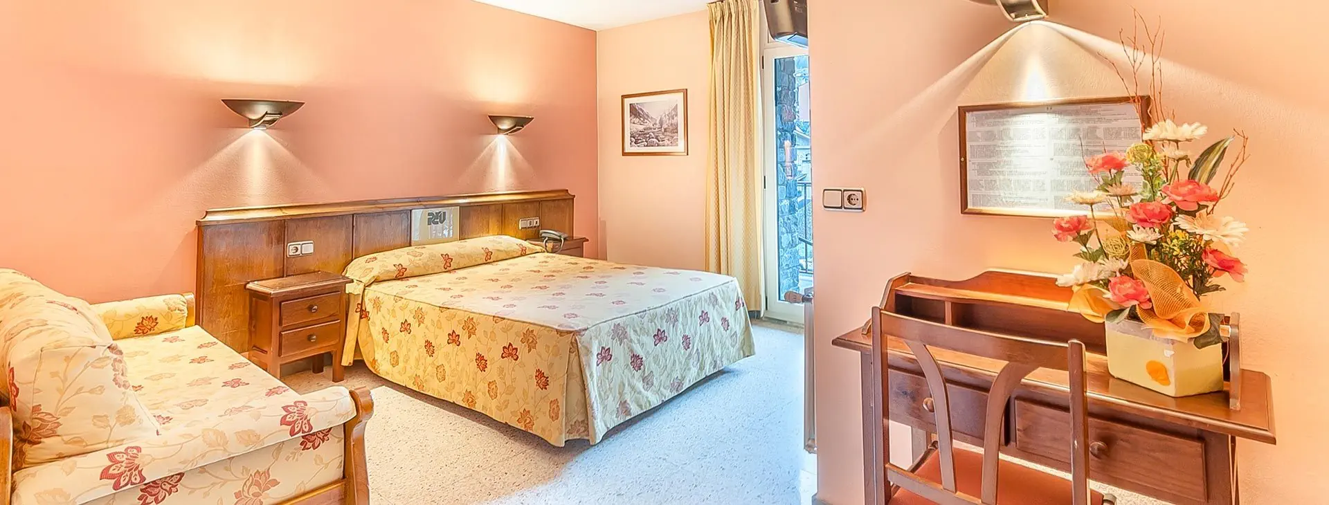 Położenie: Trzygwiazdkowy, kameralny hotel położony jest nad rzeką Valira ( na wysokości ok. 1300 m n.p.m.) sąsiaduje z główną ulicą w Encamp, gdzie można znaleźć liczne puby, restauracje i sklepiki. Hotel z doskonałą lokalizacją dla miłośników sportów zimowych. Około 200 m od obiektu znajduje się przystanek busa (kursuje w godzinach 08:30 - 18:00), z którego Goście mogą łatwo dostać się do kolejki - Funicamp, która połączona jest gondolą (6 km) ze stokami regionu Grandvalira. Pozwala to w pełni wykorzystać możliwości regionu. Do najbliższego lotniska Barcelona-El Prat ok. 230km (transfer trwa ok. 3,5 h). Do dyspozycji gości: Całodobowa recepcja, winda, resturacja oferująca dania kuchni lokalnej jak i międzynarodowej i bar (czynny w godzinach 08:00-24:00, płatny dodatkowo). Dostępna również przechowalnia nart (bezpłatna). Pokoje: Ponad 68 komfortowych pokoi 2 osobowych (z możliwością dostawki dla jednej osoby dorosłej lub dziecka) lub pokoje rodzinne (2+2 - na zapytanie). W każdym pokoju znajduje się łóżko małżeńskie lub 2 osobne łóżka, telewizor, telefon, sejf (za opłatą ok. 1 EUR/dzień) oraz wyposażona łazienka (wanna/prysznic, WC i suszarka do włosów), bezpłatne Wi Fi. Część pokoi posiada balkon z widokiem na dolinę. Wyżywienie: Śniadania w godz. 07:45-09:45 w formie bufetu oraz serwowane obiadokolacje w godz. 20:00- 21:30 (wybór spośród kilku dań z menu). Napoje do obiadokolacji są dodatkowo płatne. Program sportowy i animacyjny: Hotel znajduje się blisko centrum sportowego (basen, sauna, squash, fitness - wstęp dodatkowo płatny). Internet: Wi- Fi dostępne bezpłatnie na terenie całego hotelu (również w pokojach). Kategoria lokalna: *** Strona www: Naszym zdaniem: Hotel w bardzo dobrej lokalizacji zarówno dla wytrawnych narciarzy jak i osób lubiących bliskość miasta.