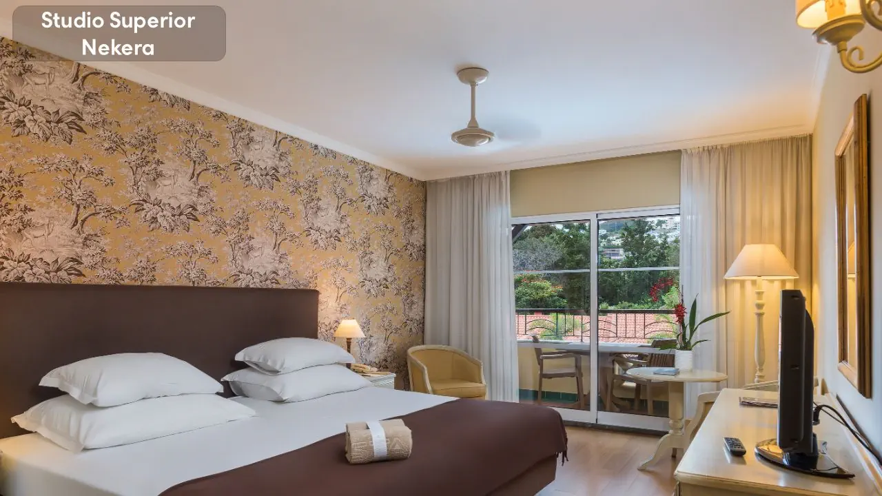 Pestana Village Garden Resort to czterogwiazdkowy aparthotel położony w spokojnej dzielnicy Sao Martinho w Funchal, stolicy Madery. Obiekt wyróżnia się tradycyjną maderską architekturą, z niskimi, kolorowymi budynkami otoczonymi bujnymi ogrodami tropikalnymi o powierzchni 5000 m². Jest to idealne miejsce na relaksujący wypoczynek, zaledwie 15 minut spacerem od centrum miasta. POŁOŻENIE - w dzielnicy Sao Marthino - ok. 1km od promenady - 1,5 km od centrum miasta, - w pobliżu restauracje, bary, sklepy i miejsca rozrywki, -ok. 23km od lotniska HOTEL - 4-gwiazdkowy, - 92 pokoje, - całodobowa recepcja, - lobby, - winda - ogród - tworzy kompleks wraz z hotelem Pestana Miramar, - hotel przyjazny zwierzętom, - hotel jest nieprzystosowany dla osób niepełnosprawnych, PLAŻA - ok. 4km do Praia Formosa, SPORT I ROZRYWKA - basen ze słodką wodą - leżaki i parasole, - siłownia, - pokój gier, - bilard (płatny), - sauna, - łaźnia turecka, - jacuzzi, - strefa spa (płatnie), - masaże(płatnie) - muzyka na żywo USŁUGI - bezpłatne WIFi - kantor wymiany walut, - salon fryzjerski, - pralnia, - paking (płatny), - sklep - sejf, - sala konferencyjna DOSTĘPNE POKOJE STUDIO CLASSIC - ok. 30m2, - 2 łóżka pojedyncze, - z częścią wypoczynkową, - balkon, - widok na ogród, - 1 rozkładana sofa, - telewizor, - bezpłatne Wi-Fi, - aneks kuchenny. - wyposażona łazienka (wanna i suszarka do włosów), - łóżeczko dla niemowląt na zapytanie SUPERIOR STUDIO - ok. 31m2, - pokój położony na wyższych piętrach - z podwójnym łóżkiem lub 2 pojedynczymi łóżkami, - z częścią wypoczynkową i balkonem - balkon z widokiem na morze, góry, basen lub ogród. - aneks kuchenny - telewizor, - bezpłatne Wi-Fi - łazienka (wanna i suszarka do włosów). FAMILY SUPERIOR - ok. 50m2, - z podwójnym łóżkiem lub 2 łóżkami pojedynczymi, - oddzielny salon - balkonem z widokiem na basen, - 1 rozkładana sofa, - telewizor, - bezpłatne Wi-Fi - aneks kuchenny, - wyposażona łazienka (wanna i suszarka do włosów), WYŻYWIENIE HB - śniadanie i obiadokolacja w formie bufetu, napoje do obiadokolacji płatne. FB - śniadanie, obiad i kolacja w formie bufetu, napoje do obiadu i kolacji płatne. - restauracja, - restauracja