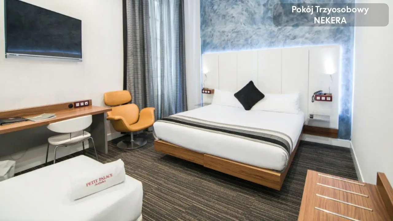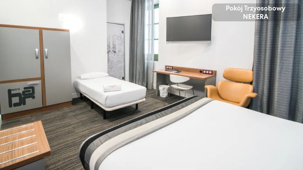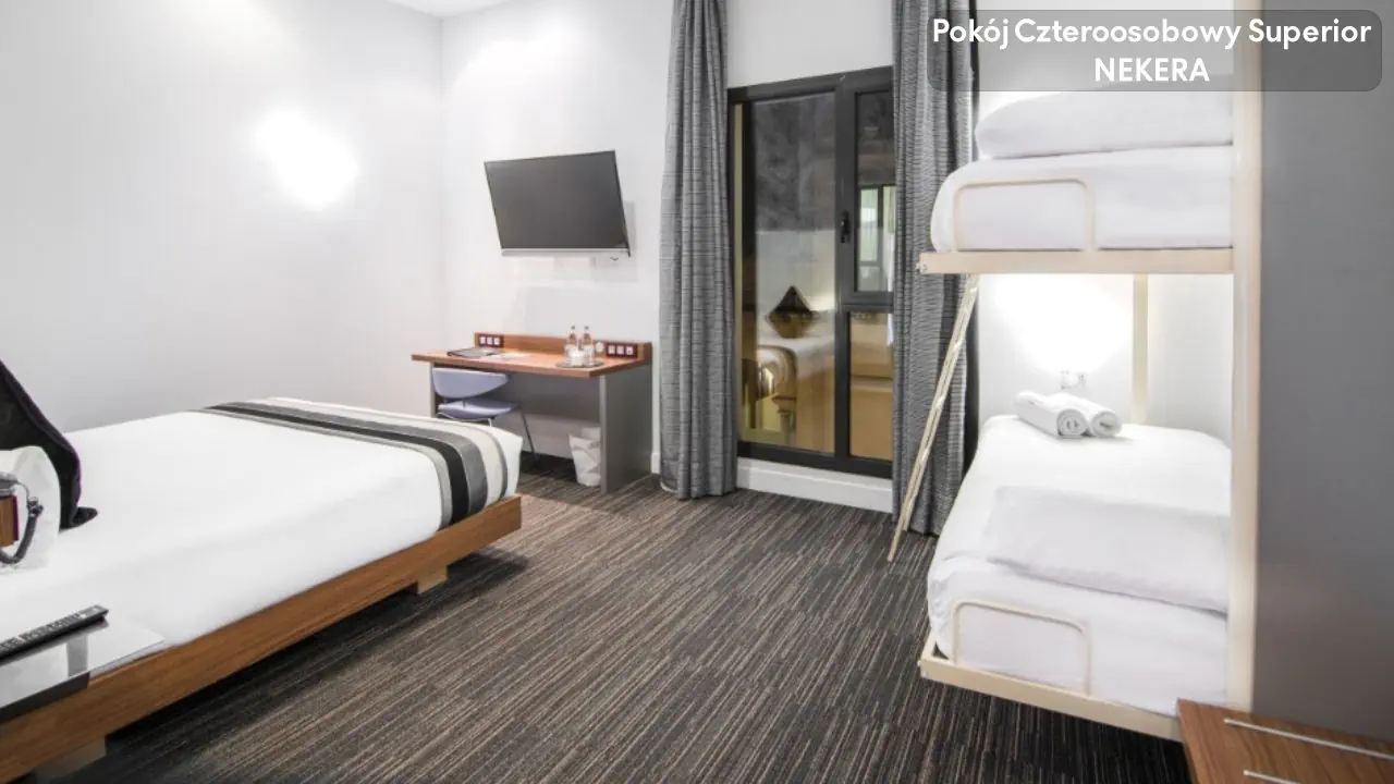 Pokój Jednoosobowy - powierzchnia ok. 14m2, jedno łóżko podwójne, maksymalnie dla 1 osoby, prywatna łazienka z prysznicem, zestawem kosmetyków i suszarką do włosów, poza tym standardowe wyposażenie takie jak klimatyzacja i ogrzewanie, TV, sejf bezpłatny, minibar za dodatkową opłatą, żelazko na życzenie. Pokój Dwuosobowy - powierzchnia ok. 18m2, jedno łóżko podwójne, lub dwa łóżka pojedyncze, maksymalnie dla 2 osób, prywatna łazienka z prysznicem, zestawem kosmetyków i suszarką do włosów, poza tym standardowe wyposażenie takie jak klimatyzacja i ogrzewanie, TV, sejf bezpłatny, minibar za dodatkową opłatą, żelazko na życzenie. Pokój Dwuosobowy Superior - powierzchnia ok. 20m2, jedno łóżko podwójne, maksymalnie dla 2 osób, lub jednej osoby dorosłej z dzieckiem, lub dla jednej osoby dorosłej, poza tym wyposażony tak, jak pokój dwuosobowy. Pokój Trzyosobowy - ok. 18m2, jedno łóżko podwójne i łóżko pojedyncze, lub trzy łóżka pojedyncze, maksymalnie dla 3 osób, poza tym wyposażony tak, jak pokój dwuosobowy. Pokój Czteroosobowy - ok. 24m2, z dużym łóżkiem podwójnym i dwoma łóżkami pojedynczymi, lub czterema łóżkami pojedynczymi, maksymalnie dla 4 osób, poza tym wyposażony tak, jak pokój dwuosobowy. Pokój Czteroosobowy Superior - ok. 25 m2, konfiguracja łóżek i obłożenie takie jak w pokoju czteroosobowym, poza tym wyposażony tak, jak pokój dwuosobowy.