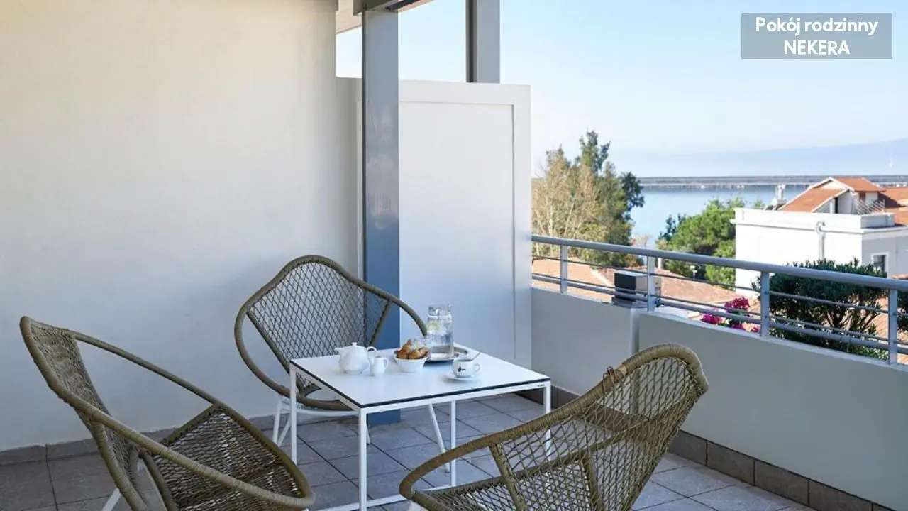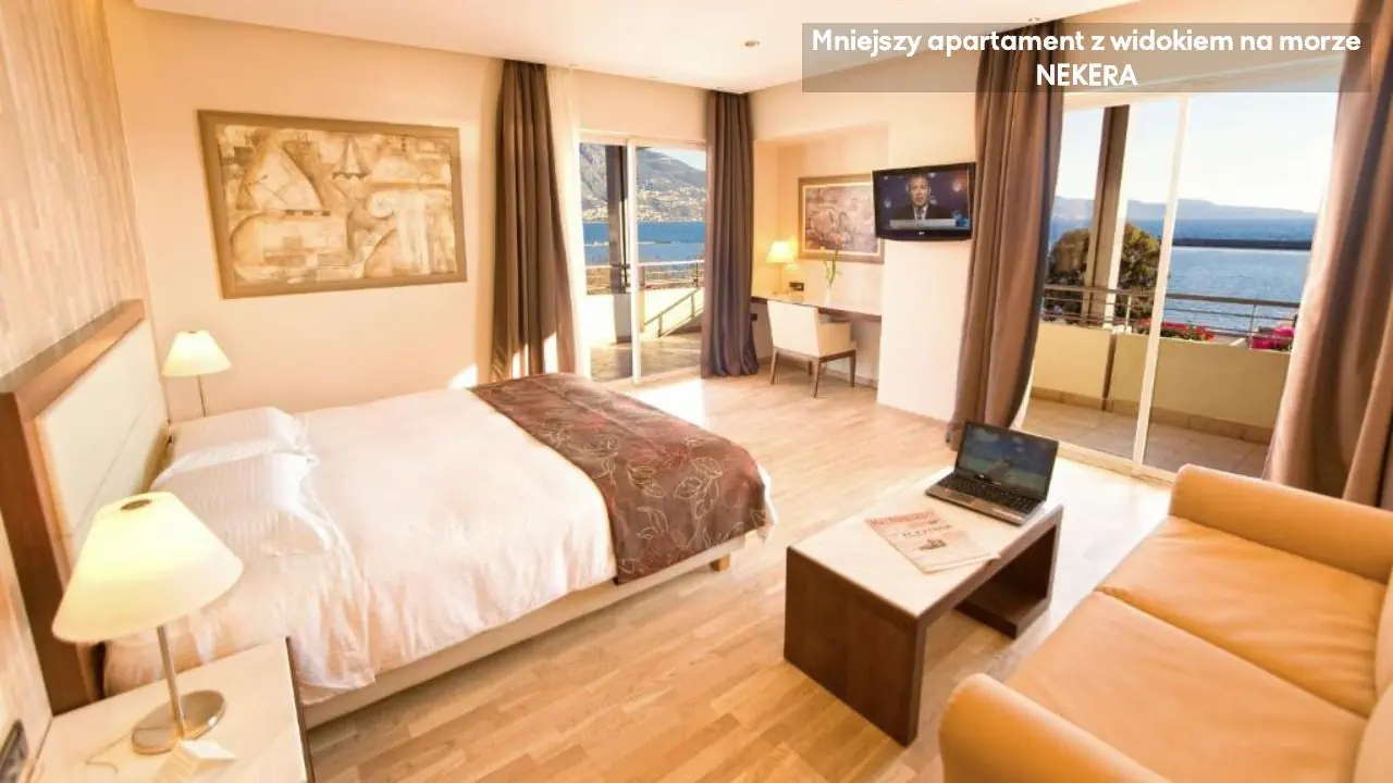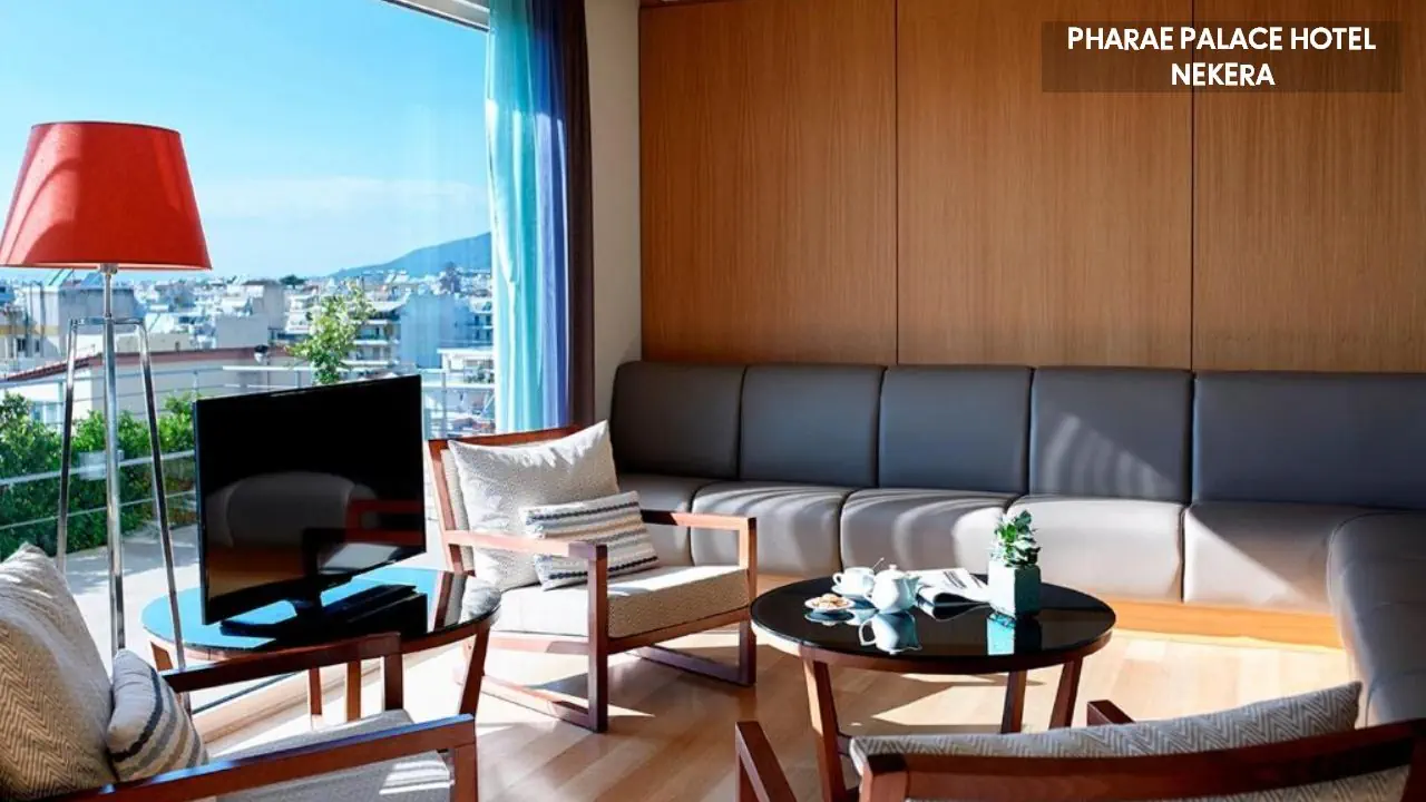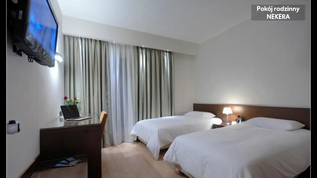 Pokój standard STANDARD ROOM: mogący zakwaterować do trzech osób; dwa łóżka pojedyncze lub jedno łóżko podwójne; TV, indywidulanie sterowana klimatyzacja (darmowa), Wi-Fi (darmowe), zestaw do parzenia kawy i herbaty, minibar, sejf, żelazko (na zapytanie), prywatna łazienka (wanna/prysznic, toaleta, suszarka do włosów, kosmetyki do kąpieli); balkon z widokiem na miasto lub z bocznym widokiem na morze. Pokój rodzinny FAMILY ROOM: mogący zakwaterować do pięciu osób; pokój składa się z dwóch oddzielnych sypialni; w jednej sypialni jedno łóżko podwójne, w drugiej dwa łóżka pojedyncze z możliwością dostawki; duży balkon 25 m2, z widokiem na miasto; pozostałe tak jak pokój standard STANDARD ROOM. Pokój superior SUPERIOR ROOM: mogący zakwaterować do trzech osób; dwa łóżka pojedyncze lub jedno łóżko podwójne; balkon z widokiem na zatokę Meseńską; pozostałe tak jak pokój standard STANDARD ROOM. Pokój executive EXECUTIVE ROOM: jedno łóżko podwójne i sofa; duży, 35 m2, balkon narożny z wiokiem na Zatokę Mesyńską i górę Taygetos; pozostałe tak jak pokój standard STANDARD ROOM.