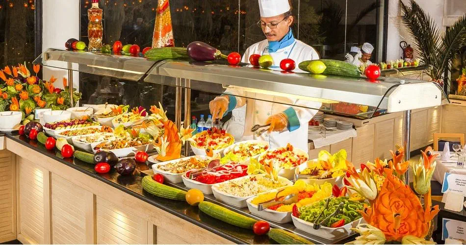 All Inclusive: Śniadanie, obiad oraz kolacja w formie bufetu w restauracji głównej Przekąski w barze na plaży i przy basenie Napoje bezalkoholowe i alkohole lokalnej produkcji w barach wskazanych przez hotel w godzinach ich otwarcia od 09:00 do 23:30 Jedna kolacja w restauracji a'la carte (wymagana wcześniejsza rezerwacja) Alkohole importowane są dodatkowo płatne
