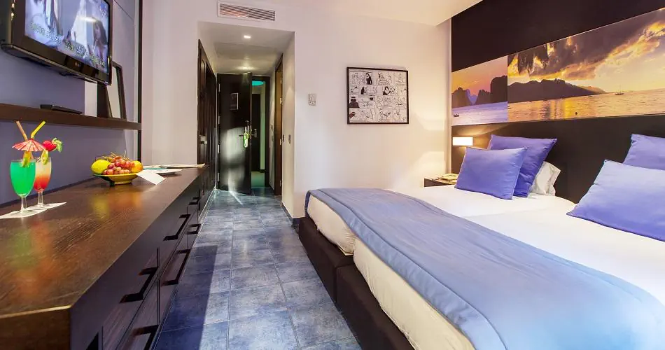 Pokój Standard ok. 27 m² Klimatyzacja (15.06 -15.09 ) Łazienka z wanną lub prysznicem, suszarką do włosów, toaleta TV-Sat, telefon Sejf - płatny Minilodówka - płatna Zestaw do parzenia herbaty Balkon lub taras Pokój Promo Wyposażenie jak w pokoju Standard Maksymalne obłożenie 2 osoby