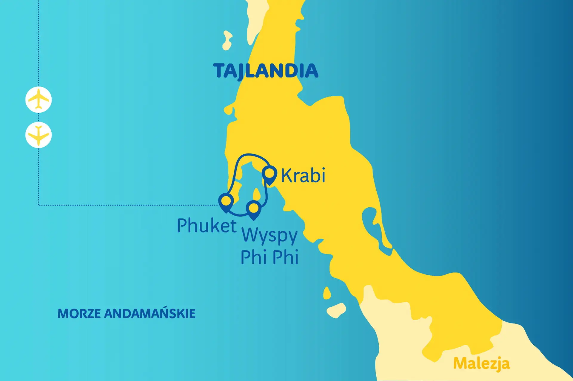 Zakwaterowanie: Część objezdowa Hotele dobrej klasy, odpowiadające standardowi ***/**** w ocenie organizatora. Pokoje: we wszystkich hotelach są wyposażone w TV, klimatyzację, łazienki z WC i często mini bar (dodatkowo płatny). Pokój 3 - osobowy to z reguły pokój 2 - osobowy z dostawką (dostawka na ogół w formie łóżka polowego lub rozkładanej kanapy). Część pobytowa Zakwaterowanie w wybranym hotelu na Phuket. Opisy poszczególnych hoteli w katalogu. Do dyspozycji gości: w hotelach restauracja, bar i w większości hoteli basen