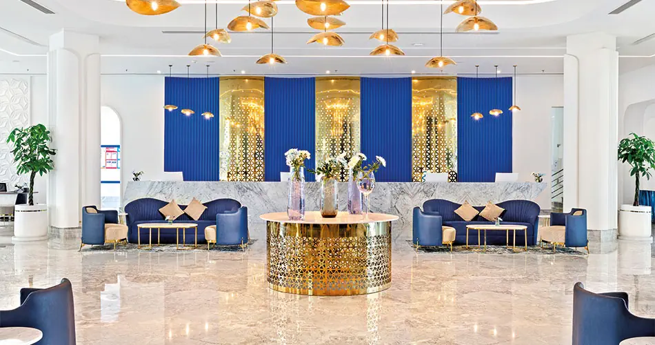 Recepcja Restauracja główna - Alfredo Restauracja Blue lounge - kuchnia azjatycka Restauracja Culina - kuchnia orientalna, owoce morza Golden Lounge - kuchnia międzynarodowa (otwarta tylko w czasie kolacji) 3 bary: Lobby bar, Beach bar, Healthy bar "inside the spa" (płatny) Kawiarnia Alfredo - otwarta w godzinach porannych 4 baseny zewnętrzne i 1 basen wewnętrzny Siłownia - bezpłatnie Pralnia - płatna Spa - płatne Salon piękności - płatny Sklepy z pamiątkami Oficjalna kategoria 5*