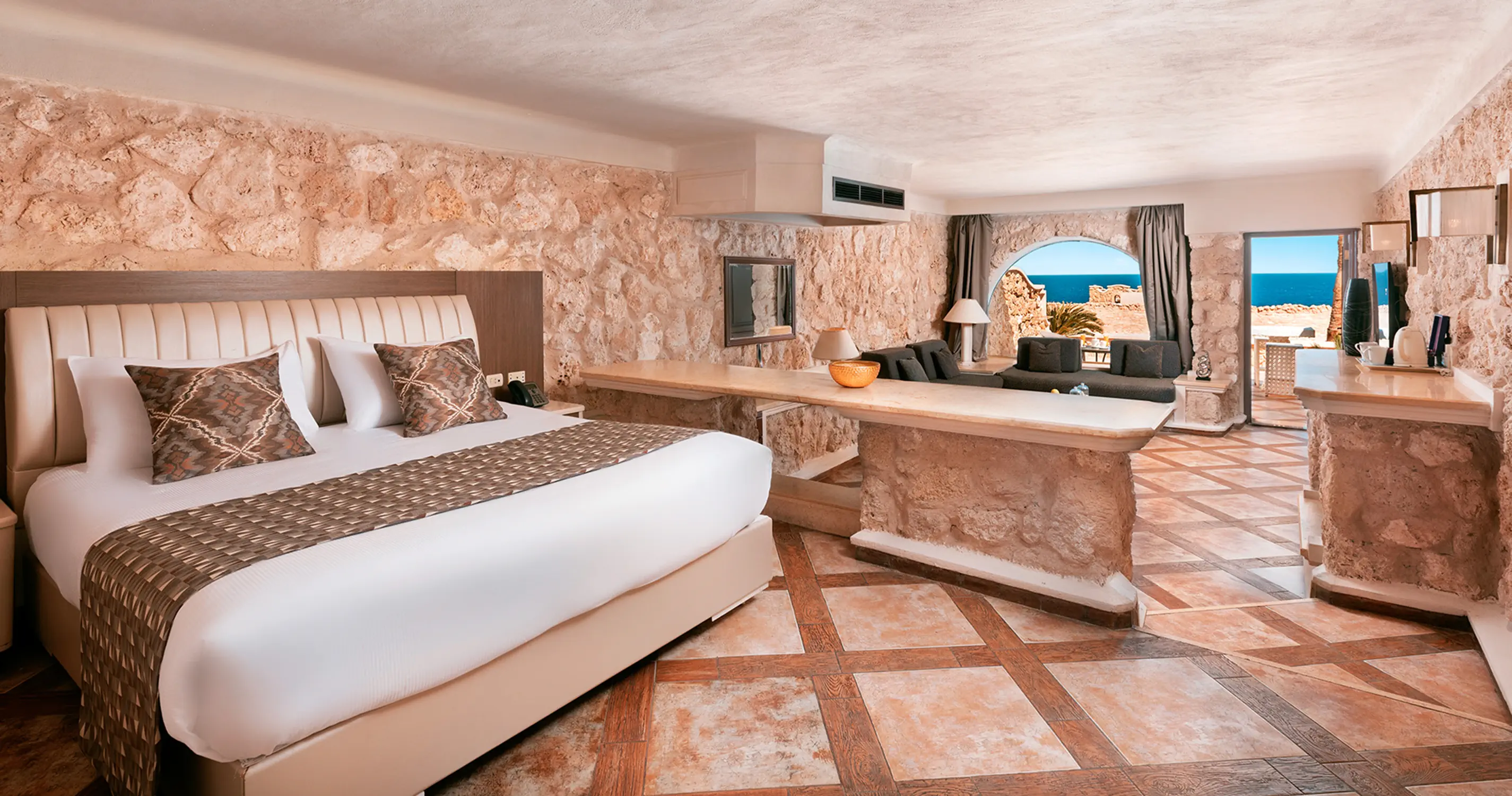 Pokój Standard sea view ok. 57-64 m² Klimatyzacja Łazienka z prysznicem, suszarka do włosów TV-Sat, telefon Czajnik Minibar - uzupełniany codziennie w wodę Sejf - bezpłatny Balkon lub taras Widok na morze Pokój Deluxe SV ok. 70 m² Wyposażenie jak w pokoju Standard Skład się z jednej sypialni z częścią dzienną i łazienki Widok na morze Pokój Family ok. 70 m² Wyposażenie jak w pokoju Standard Składa się z 2 sypialni, łazienki oraz garderoby Pokój Superior Swim Up Sea View ok. 70 m² Pokój z bezpośrednim wejsciem do basenu Dostępny tylko dla osób dorosłych Widok na morze