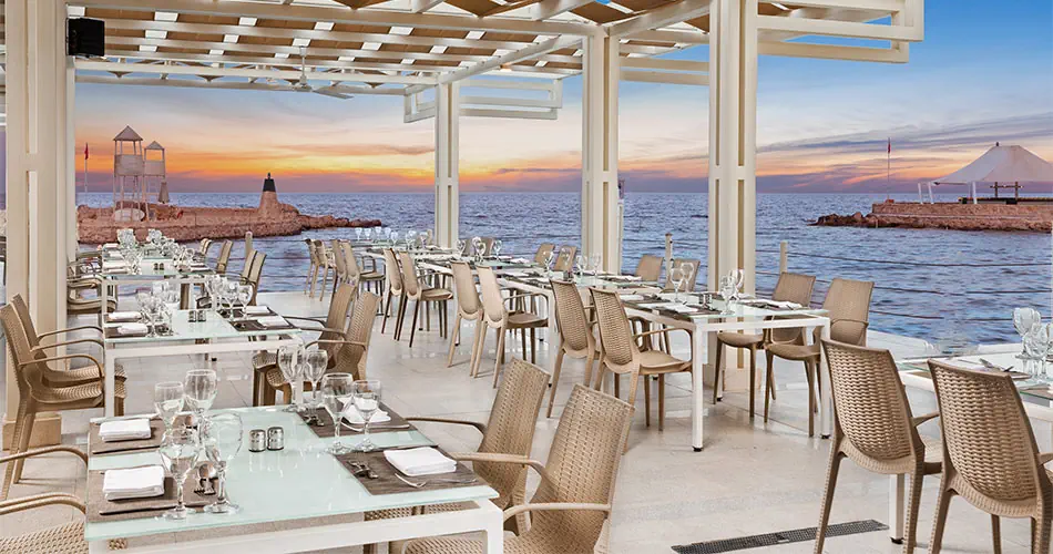 All Inclusive: Śniadanie, obiad i kolacja w formie bufetu w jednej z dwóch restauracji głównych Wczesne śniadanie kontynentalne, późne śniadanie, późna kolacja Przekąski, lody i ciasta w ciągu dnia w barach wskazanych przez hotel Napoje bezalkoholowe i alkohole lokalnej produkcji w barach wskazanych przez hotel w godzinach ich otwarcia między 10:00–00:00 Możliwość korzystania z restauracji a'la carte orientalnej, azjatyckiej - wymagana wcześniejsza rezerwacja Możliwość jedzenia posiłków kuchni włoskiej w food court