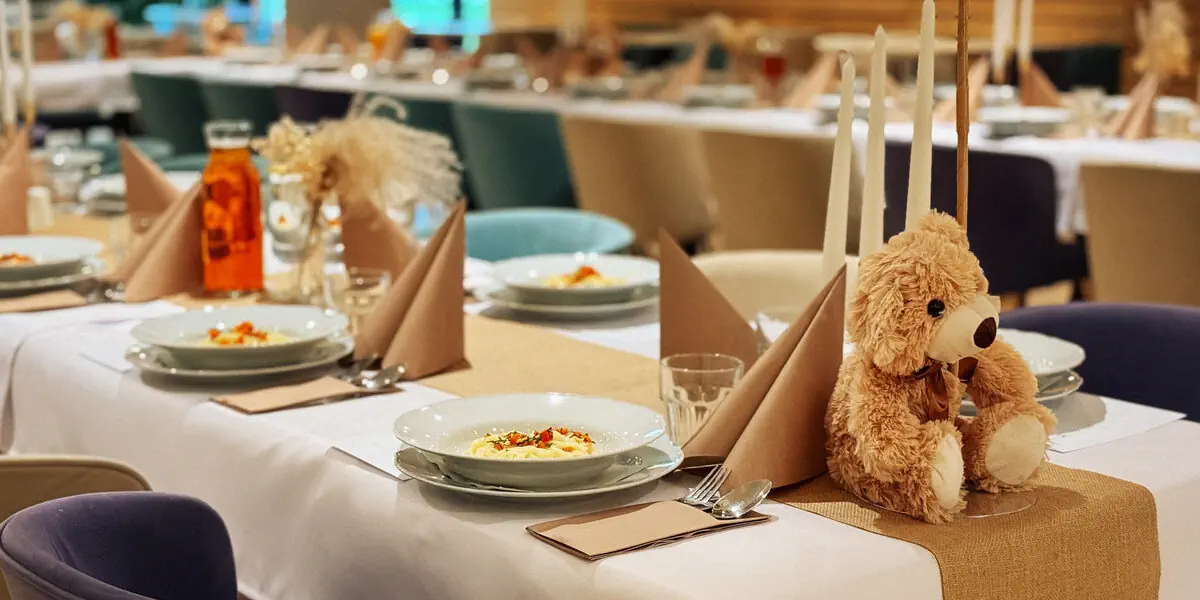 - Codzienne śniadanie w formie bufetu - Codzienna obiadokolacja w formie bufetu - Dla pobytów w terminie 24-27.12.2025: Uroczysta Kolacja Wigilijna (24.12), słodki bufet z domowymi wypiekami i gorącą czekoladą, wizyta Św.Mikołaja, 1x Voucher na grzane wino (dla każdej osoby dorosłej), ognisko z pieczeniem kiełbasek i muzyką, animacje dla najmłodszych (wg harmonogramu hotelu) - Dostęp do strefy basenowej z 3 basenami (w godzinach otwarcia) - Możliwość korzystania ze strefy saun (zgodnie z dostępnością) - Sala zabaw dla dzieci - Internet Wi-Fi - Podatek VAT