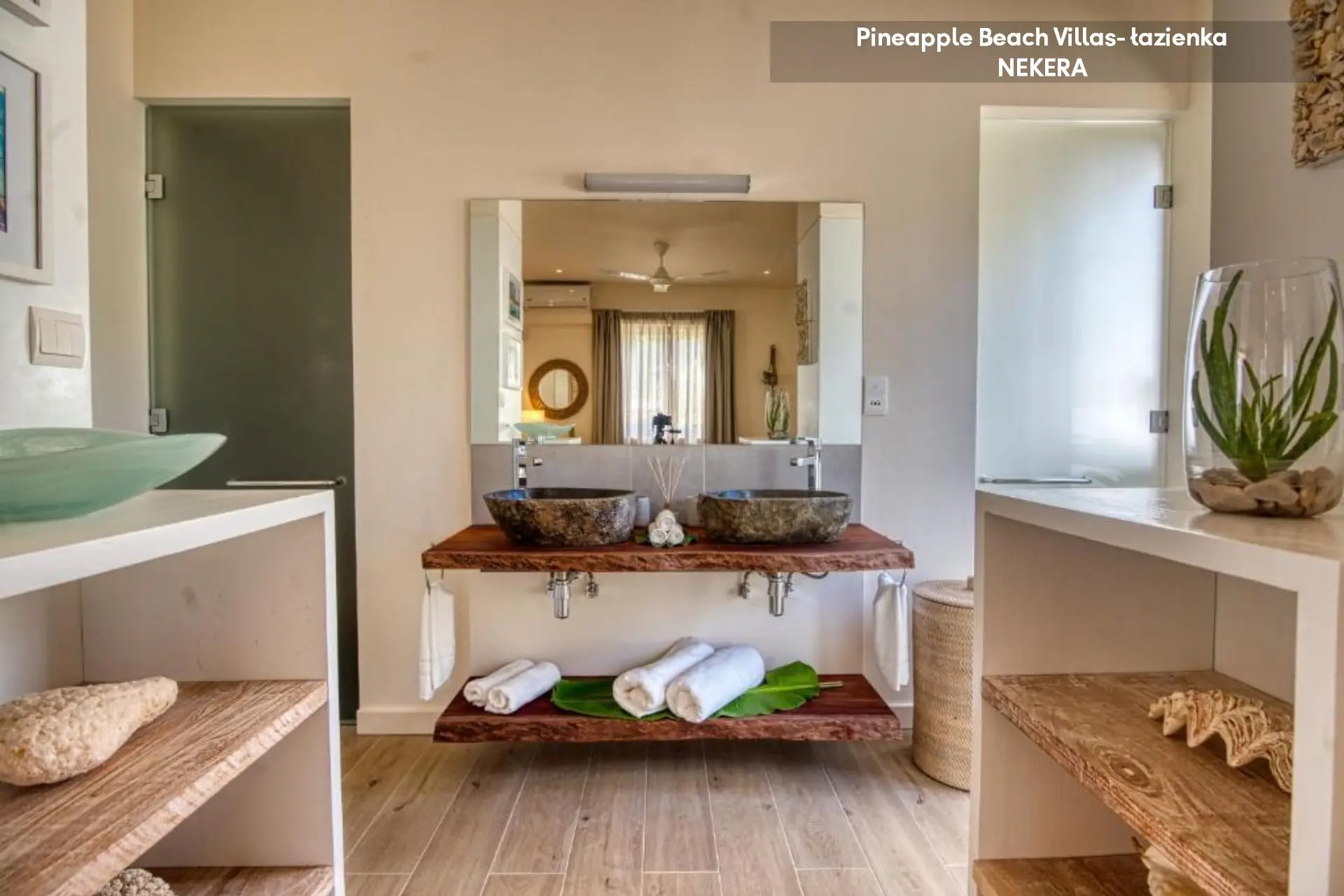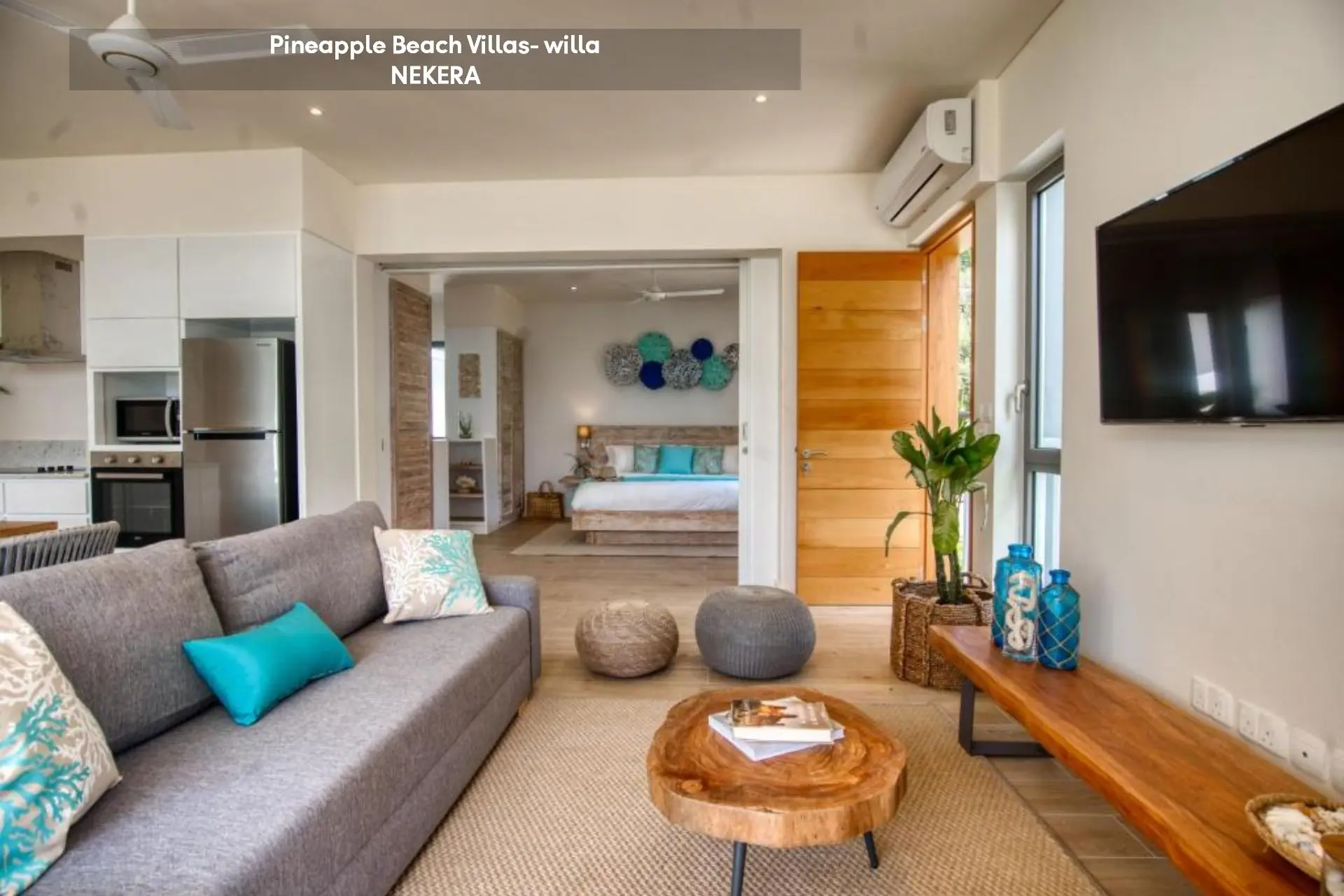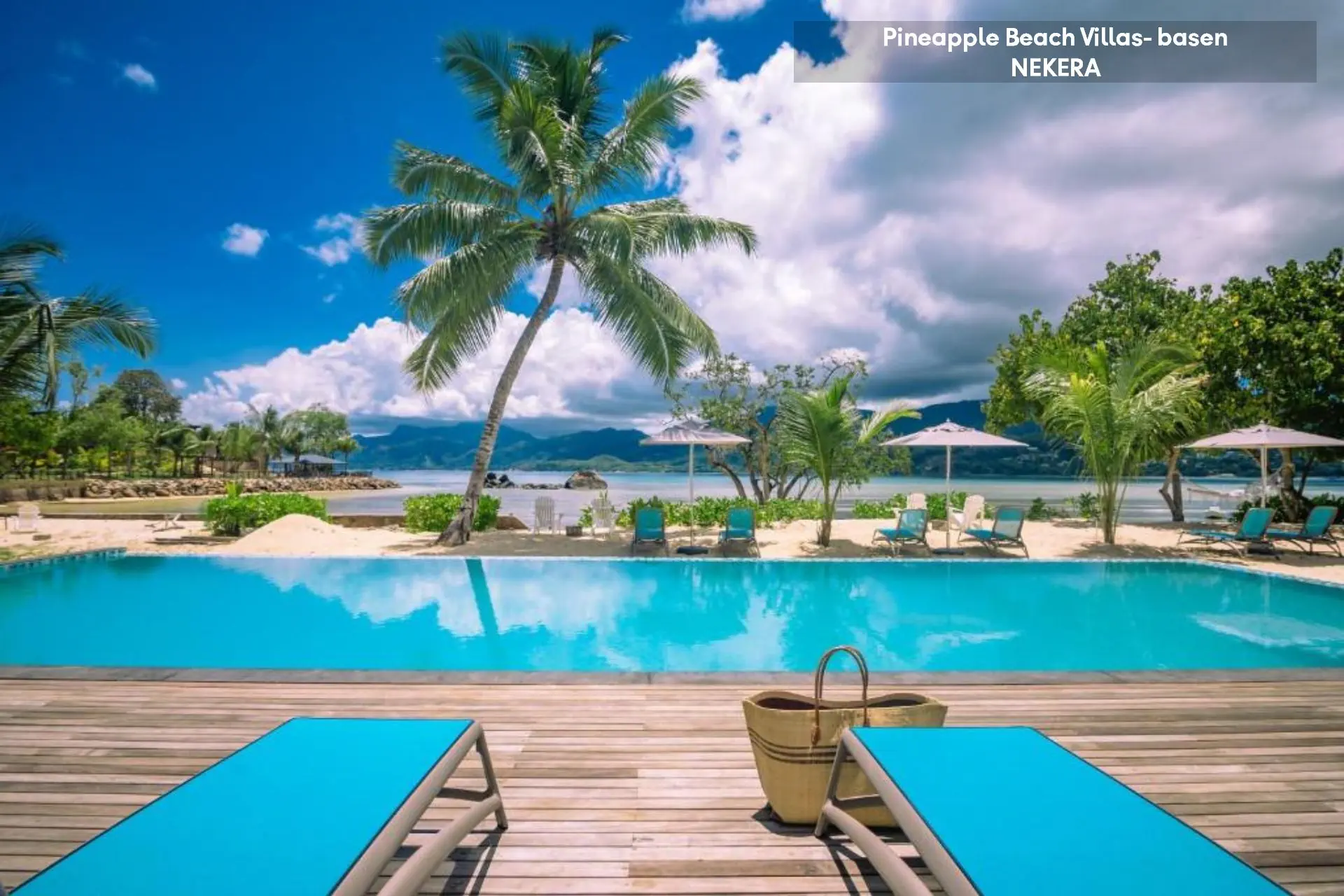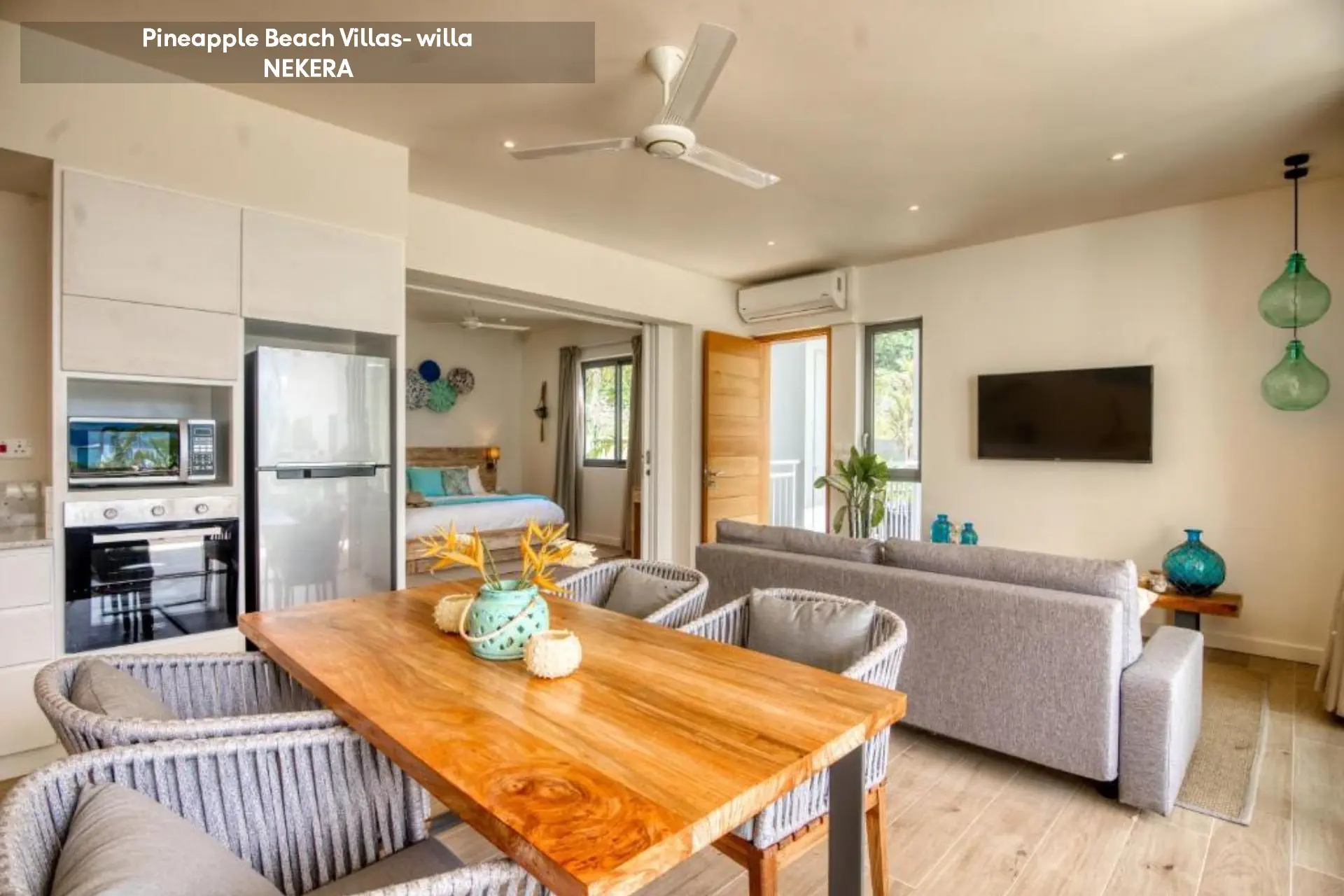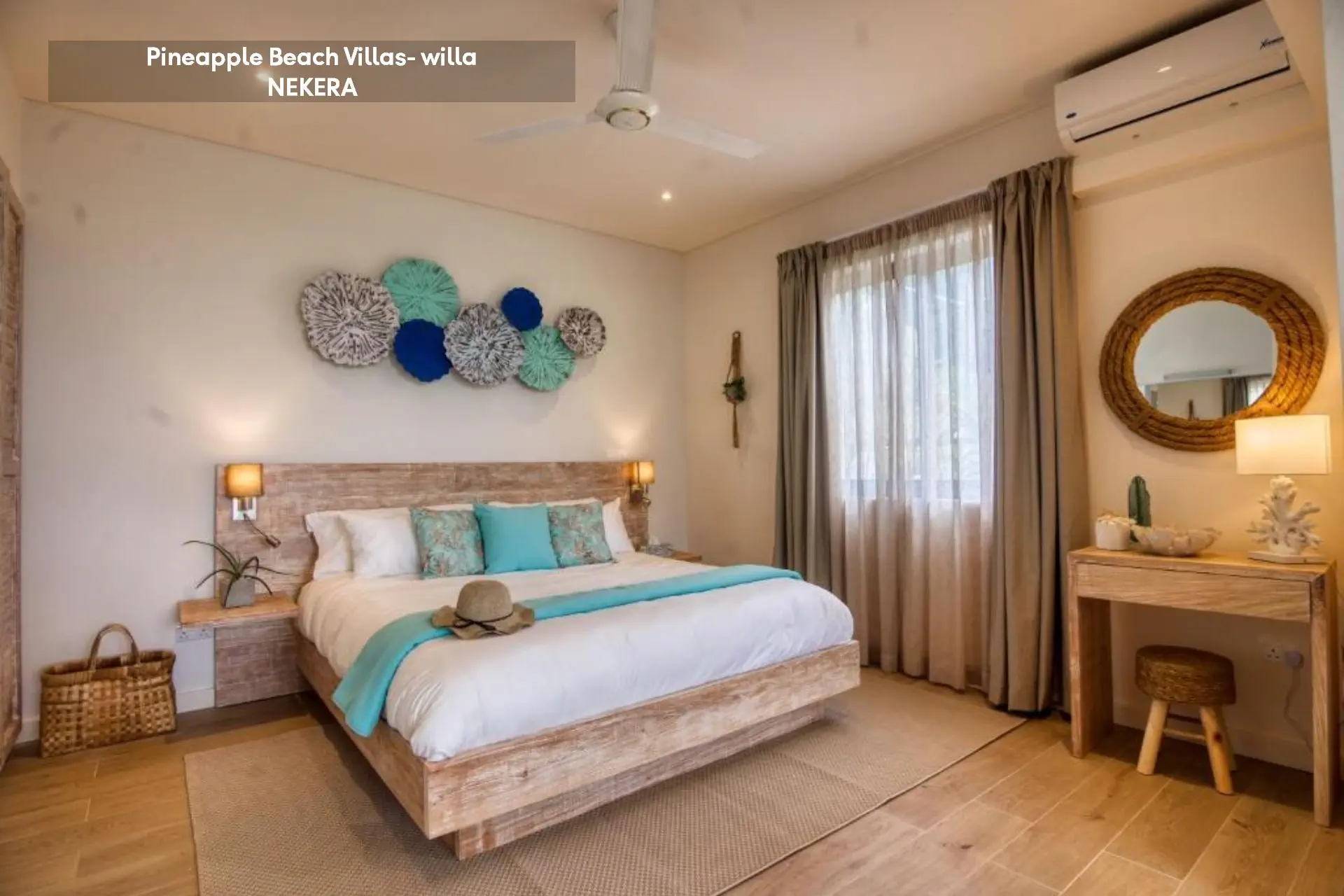 Pineapple Beach Villas składa się z 8 willi z własnym wyżywieniem, w doskonałej lokalizacji na południu Mahe. Wille położone są na białej, piaszczystej plaży, przed wyjątkową rafą koralową. Wokół willi znajduje się duży tropikalny ogród i główny taras z basenem, leżakami, grillami. Same wille są zaprojektowane tak, aby czuć się jak w domu, będąc z dala z dala od domu. Wszystkie wille posiadają jedną sypialnię z łóżkiem King Size XL oraz łazienkę z prysznicem. Do dyspozycji Gości jest w pełni wyposażona kuchnia na otwartym planie oraz salon z rozkładaną sofą, a także weranda