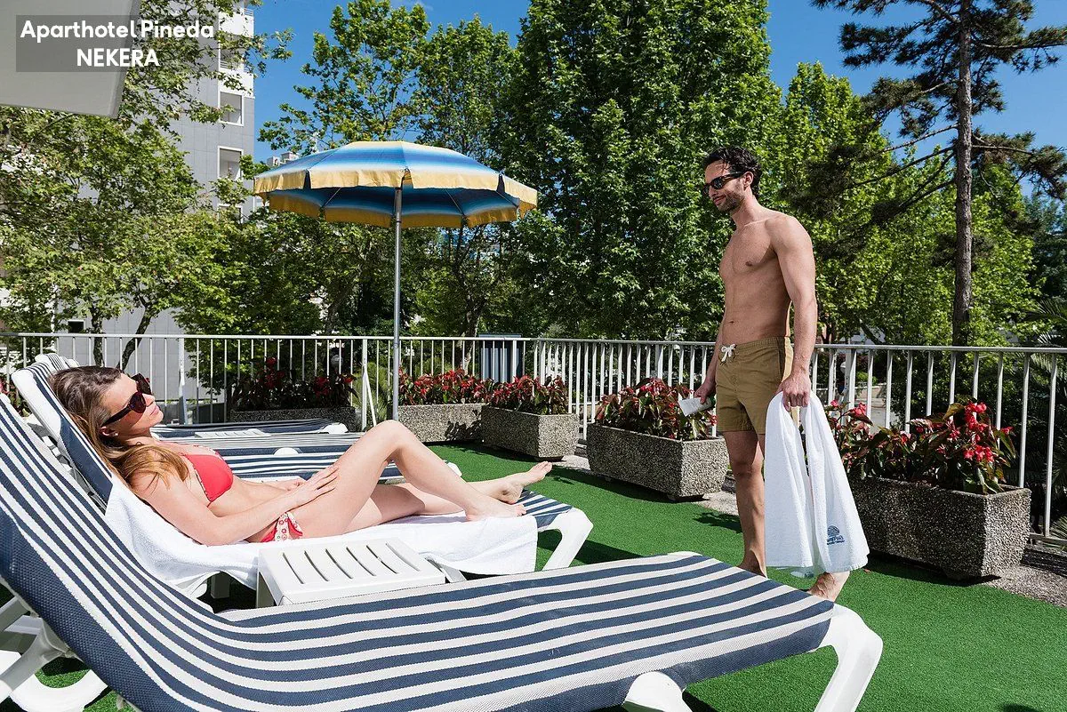 ok. 150 m od plaży (leżaki i parasole w cenie), do centrum Bibione ok. 100 m.