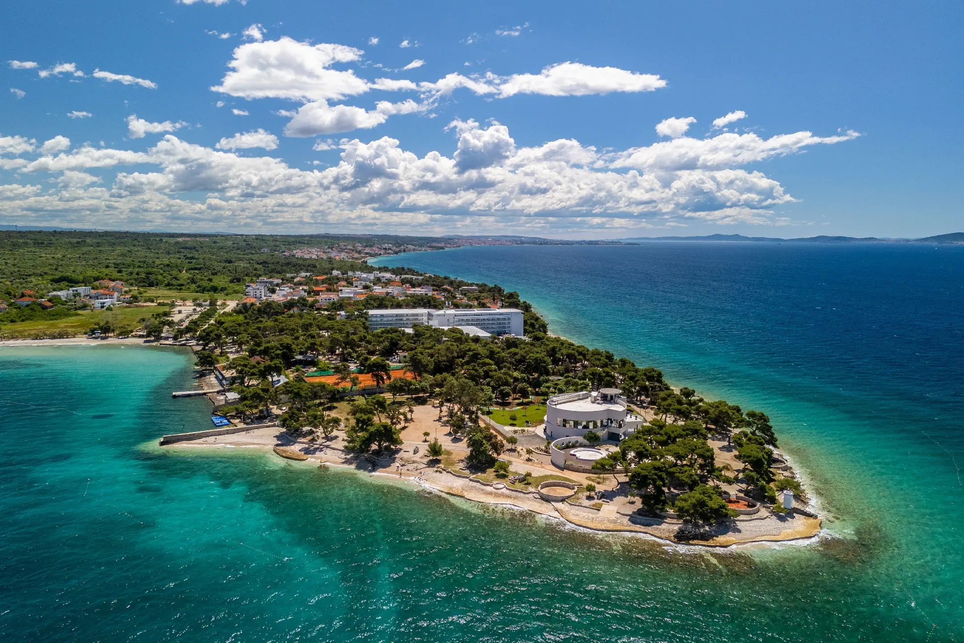 ok. 5 min. pieszo od centrum miejscowości Petrcane, w otoczeniu drzew sosnowych, ok. 5 km od Ninu, ok. 12 km od Zadaru, ok. 24 km od najbliższego lotniska.