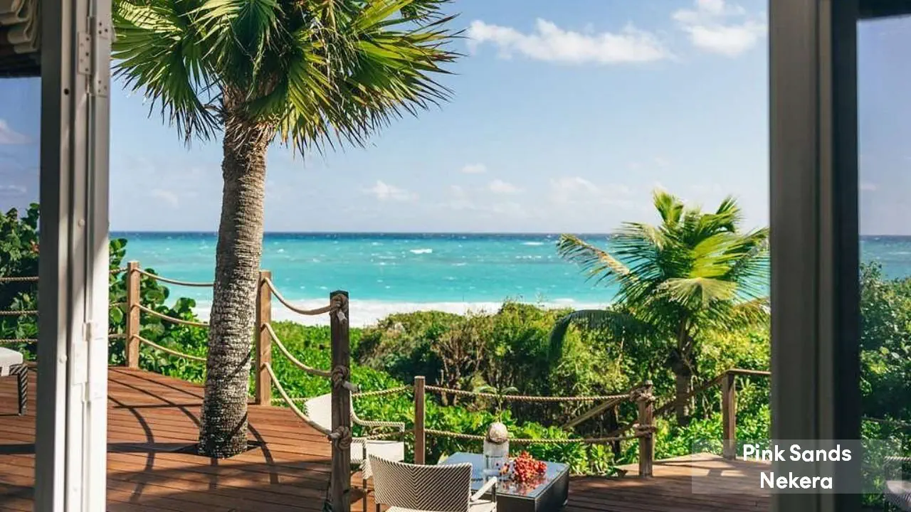 Bezpośrednio przy obiekcie, plaża z różowym piaskiem, o długości ok. 5 km