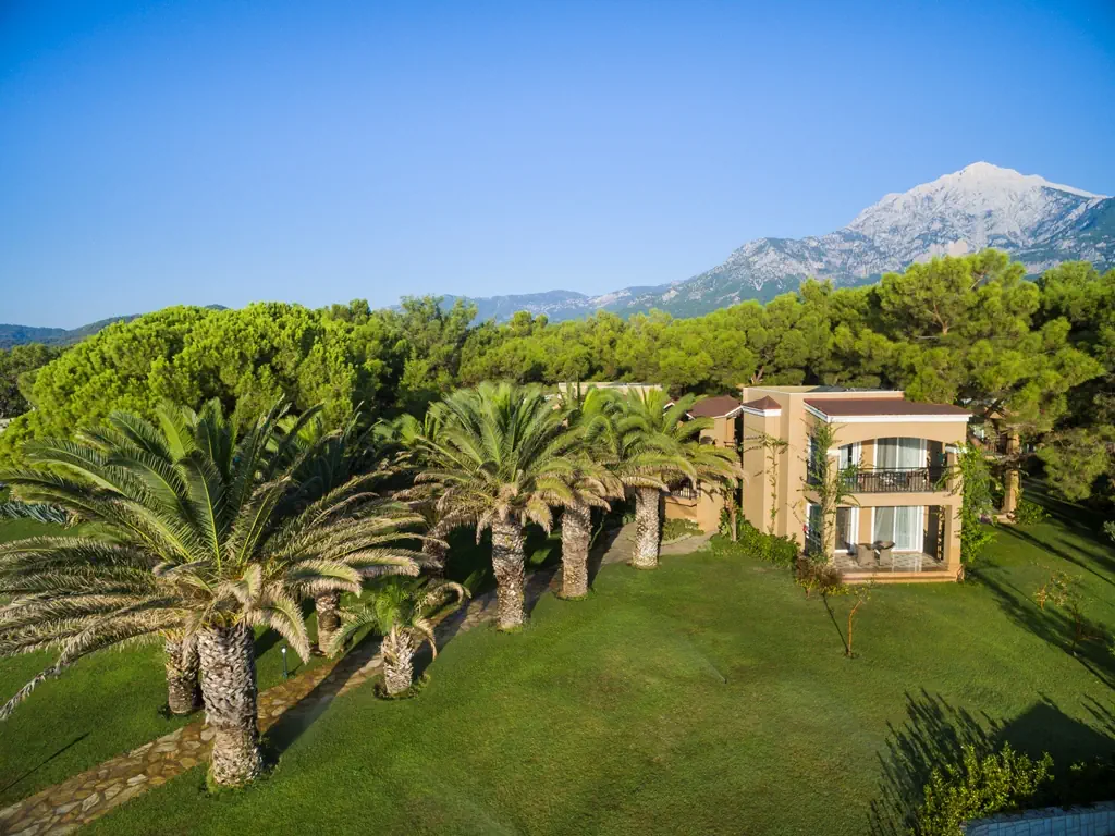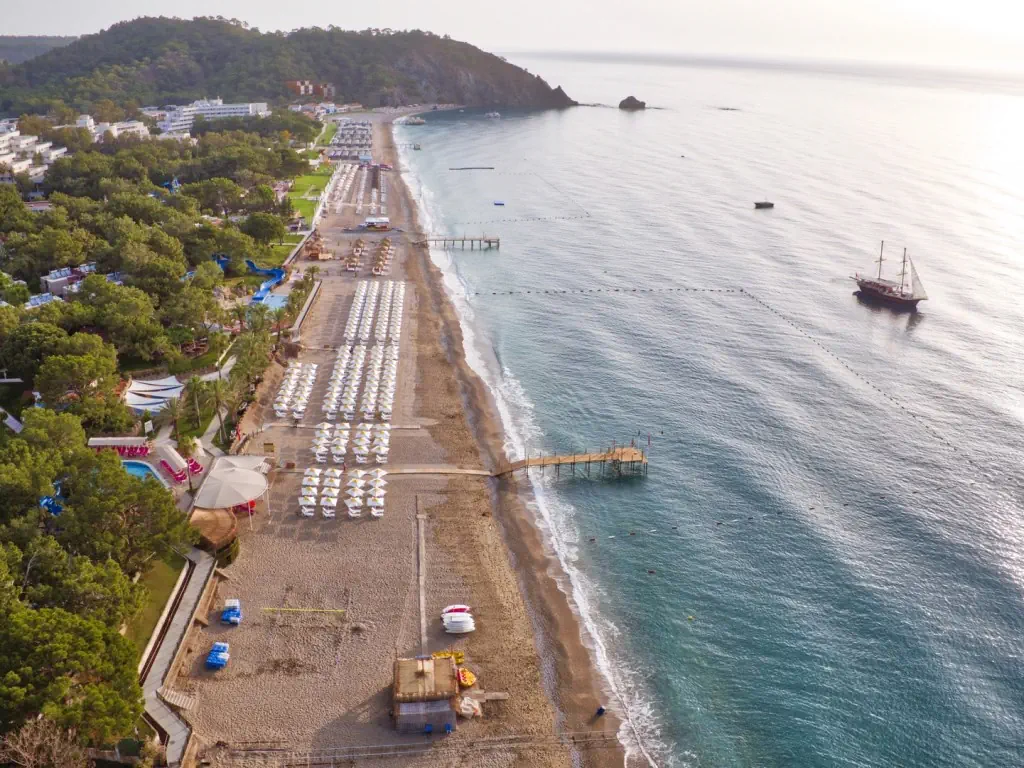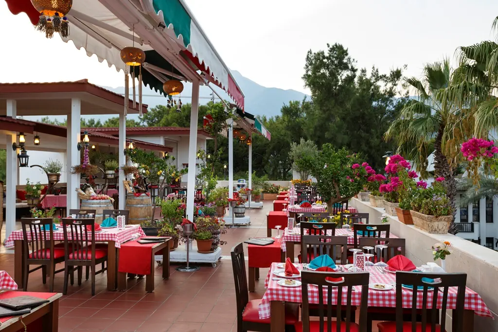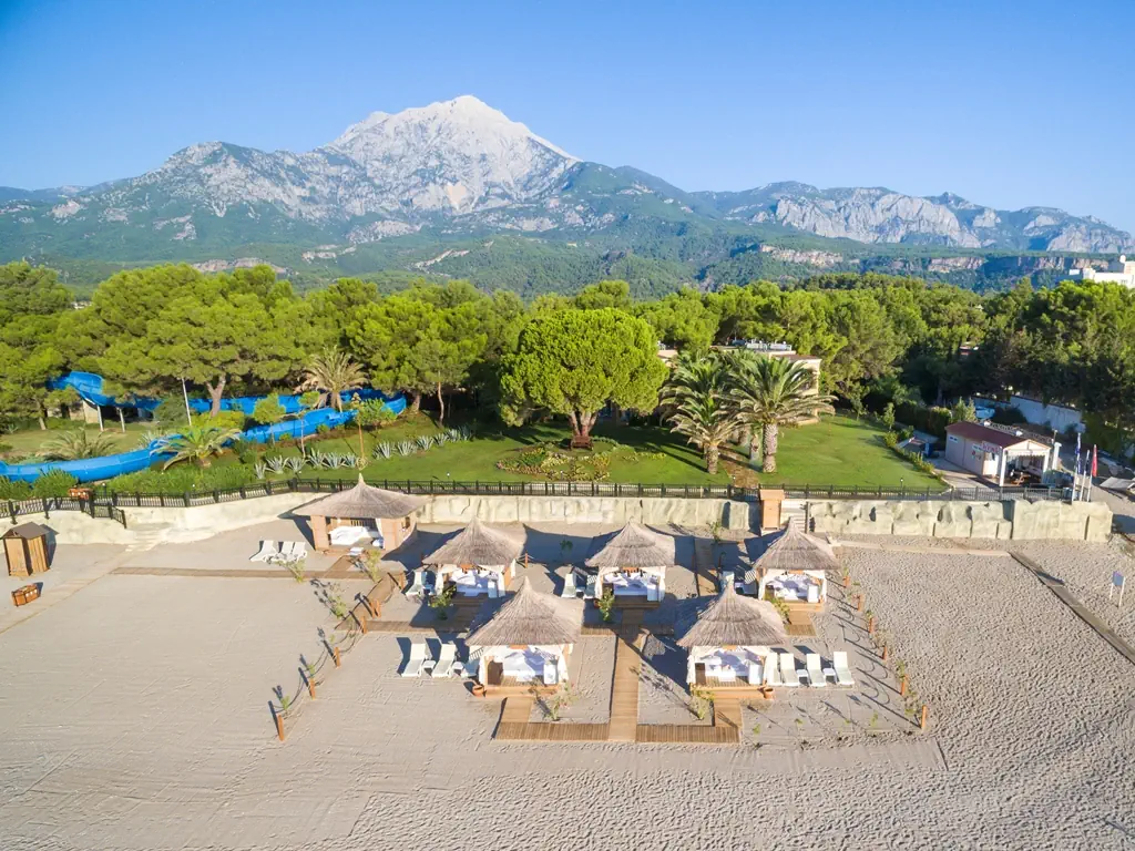 Hotel usytuowany w spokojnej okolicy wśród lasu piniowego w otoczeniu gór Taurus i tuż przy plaży, jest idealnym wyborem na spokojny wypoczynek. Dla osób aktywnych na miejscu dostępne są różne formy rozrywek sportowych i rekreacyjnych oraz zjeżdżalnie wodne dla dzieci i dorosłych.
