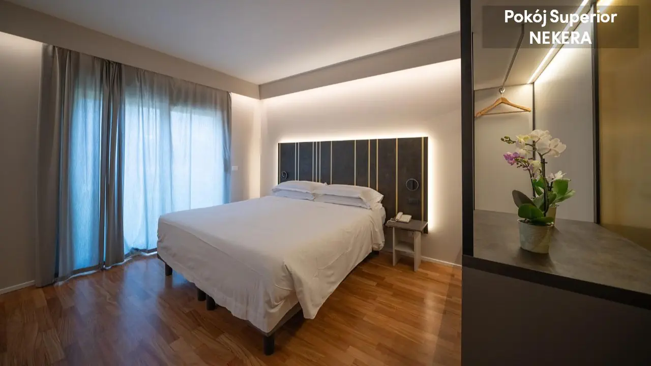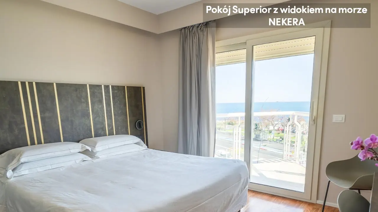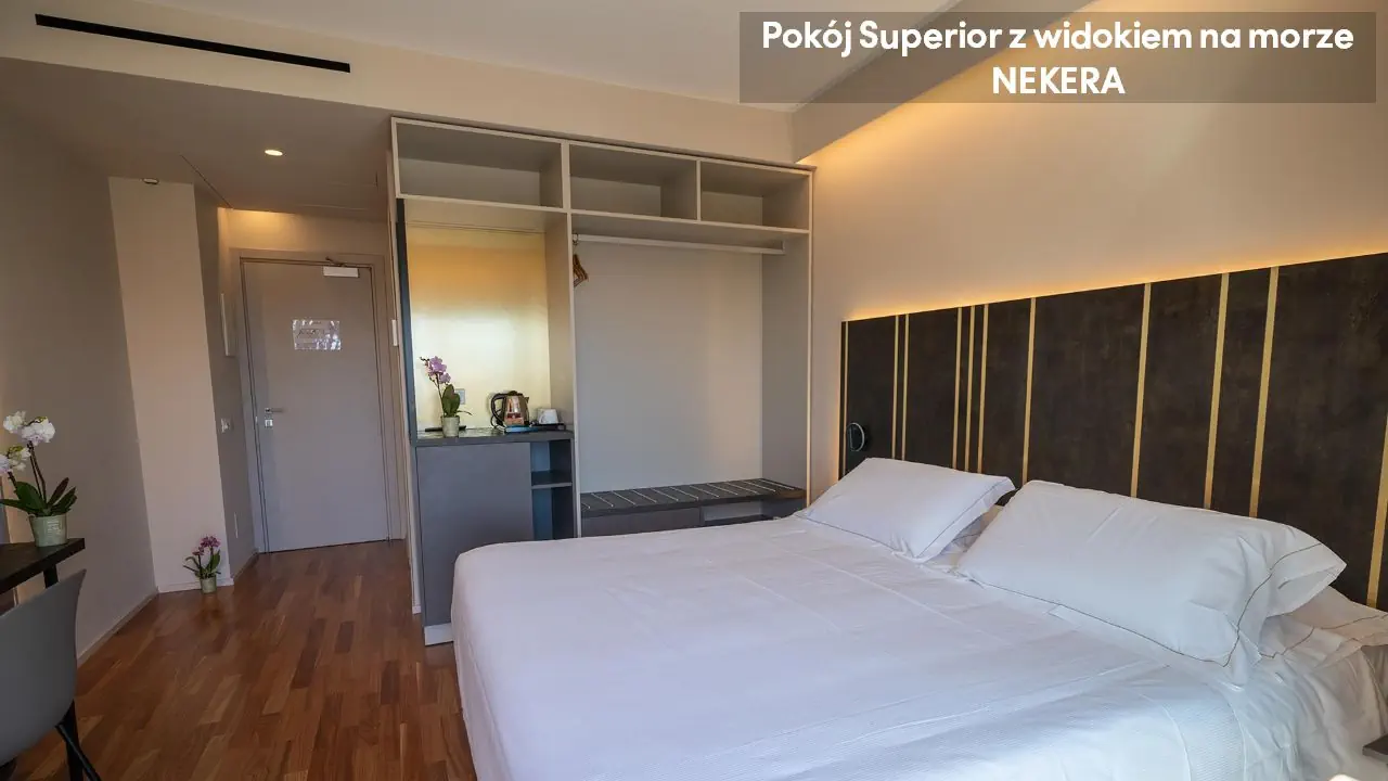 Pokój Superior, ok. 18 m², dla max 2 osób dorosłych, łóżko podwójne lub 2 pojedyncze, klimatyzacja, sejf, TV-Sat., telefon, minibar (płatny), prywatna łazienka (prysznic, toaleta, suszarka do włosów, zestaw kosmetyków). Możliwość rezerwacji pokoi z widokiem na morze za dodatkową opłatą