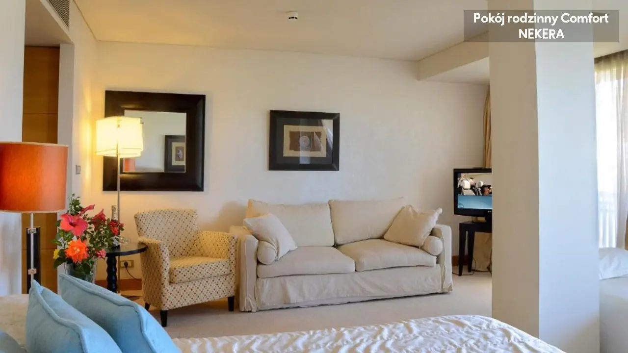 Noclegi, wyżywienie zgodnie z rezerwacją. Dodatkowo w przypadku imprez pakietowych z przelotem, oprócz ww. świadczeń w cenie zawarty jest: ubezpieczenie podstawowe (8000 EUR KL i 2000 EUR NNW) przelot, opłata lotniskowa, opłata za wylot z lotniska lokalnego, transfer lotnisko-hotel-lotnisko (chyba, że dana oferta stanowi inaczej jak np. zakup hotelu z dojazdem własnym). Podczas pobytu zapewniamy opiekę lokalnego przedstawiciela, a także kontakt telefoniczny lub poprzez czat (na portalu moja.nekera.pl) z polskojęzycznym rezydentem. Podane godziny serwowania posiłków oraz funkcjonowanie poszczególnych elementów infrastruktury hotelowej mogą ulec nieznacznym zmianom, ze względu na sezonowość, siły wyższe i inne okoliczności.
