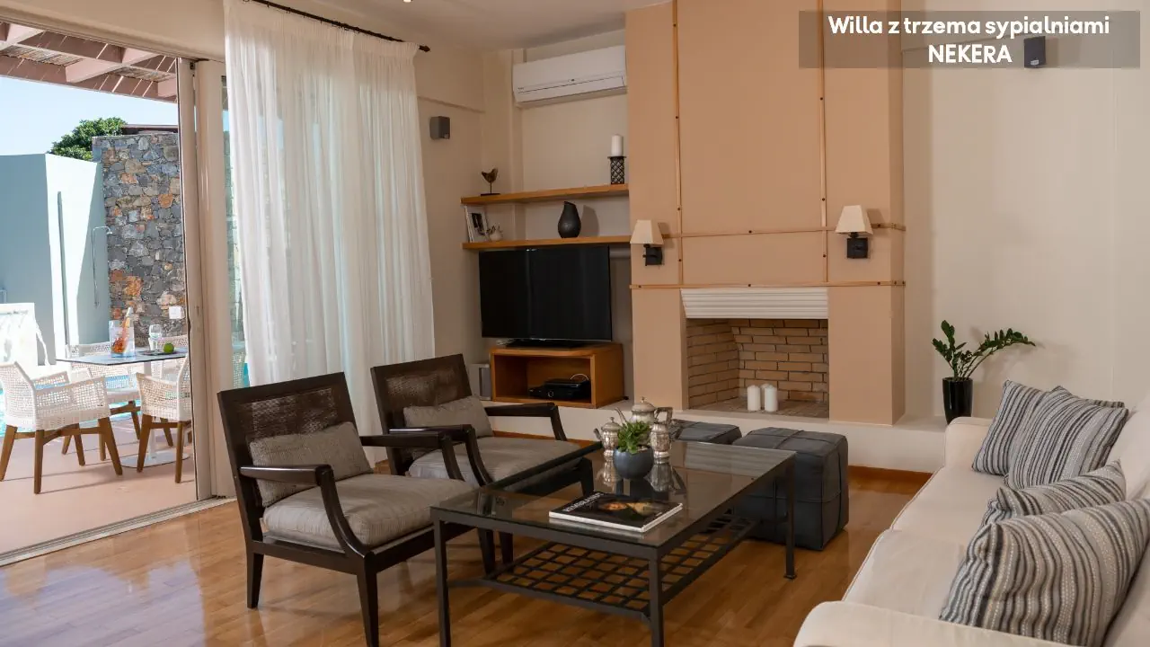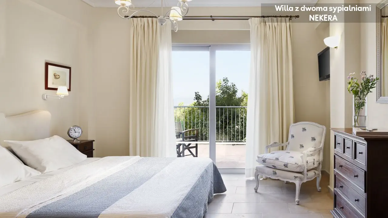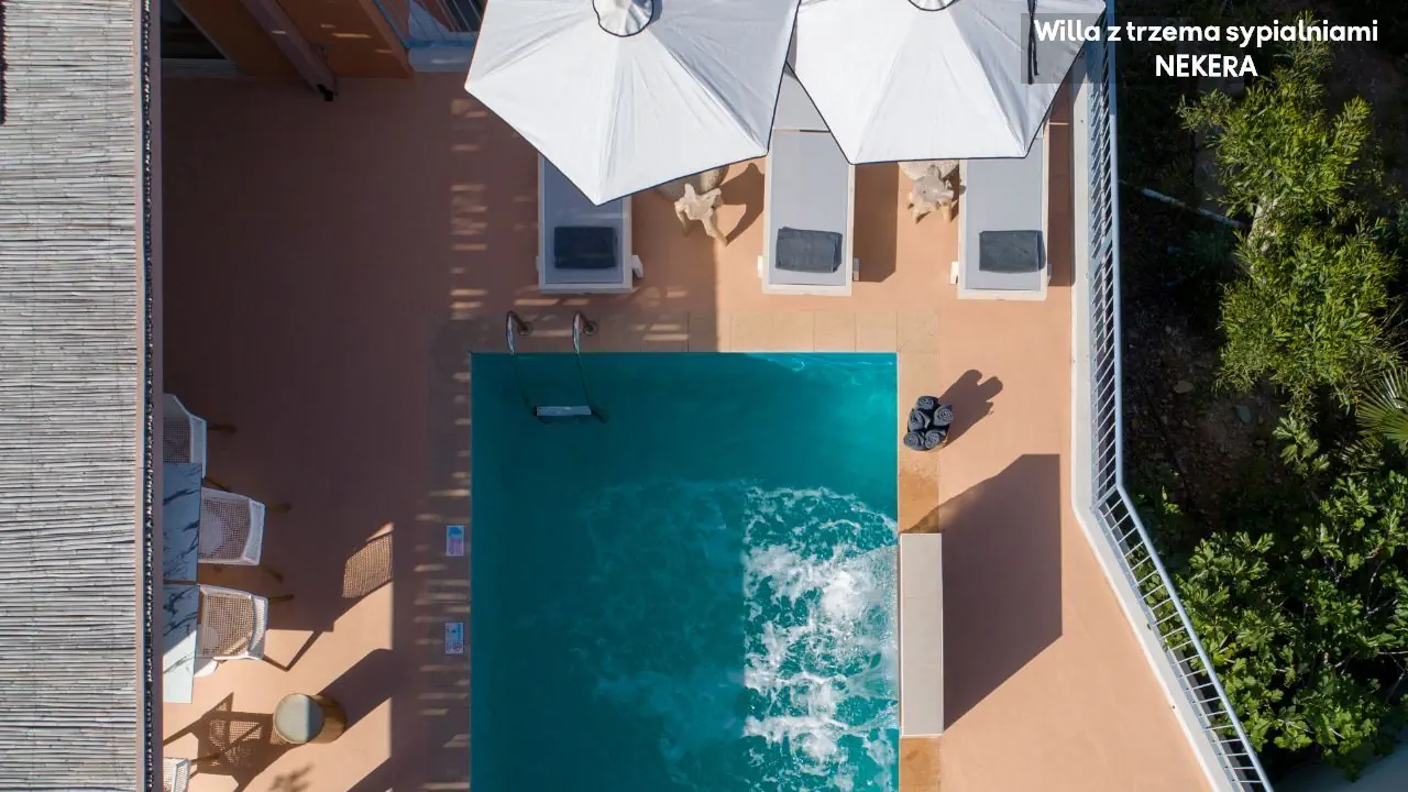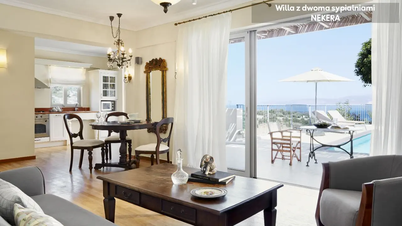 Willa z dwoma sypialniami TWO BEDROOM VILLA: ok. 110 m²; mogący zakwaterować maksymalnie 5 osób (maks. 4 osoby dorosłe i 1 dziecko; maks. 2 osoby dorosłe i 3 dzieci); jedno łóżko podwójne typu king-size lub dwa łóżka pojedyncze; indywidualnie sterowana klimatyzacja, doskonale wyposażony aneks kuchenny (czteropalnikowa kuchenka, piekarnik, zmywarka, zamrażarka, lodówka, niezbędne sztućce, naczynia, drobny sprzęt AGD tj. kuchenka mikrofalowa, ekspres do kawy i herbaty, czajnik, wyciskarka do owoców, toster); dwa telewizory (28-calowy w salonie i 14-calowy w sypialni), odtwarzacz DVD/CD, Wi-Fi, telefon, sejf, zestaw do prasowania; dwie prywatne łazienki z wanną i toaletą (umywalka, ręcznik, suszarka do włosów, zestaw do parzenia kawy i herbaty, lustro, lusterko do makijażu, kapcie, szlafrok); pralka, suszarka; balkon lub taras, prywatny zewnętrzny basen, miejsce parkingowe. Willa z trzema sypialniami THREE BEDROOM VILLA: ok. 143-155 m²; mogący zakwaterować maksymalnie 6 osób (maks. 6 osoby dorosłe; maks. 2 osoby dorosłe i 4 dzieci); jedno łóżko podwójne typu king-size i dwa łóżka pojedyncze; trzy prywatne łazienki (2 z wanną i toaletą; 1 z prysznicem i toaletą); wyposażone tak, jak: Willa z dwoma sypialniami TWO BEDROOM VILLA. Dostawka/dodatkowe łóżko płatne 50 €/dzień, możliwa tylko w willi z dwoma sypialniami.