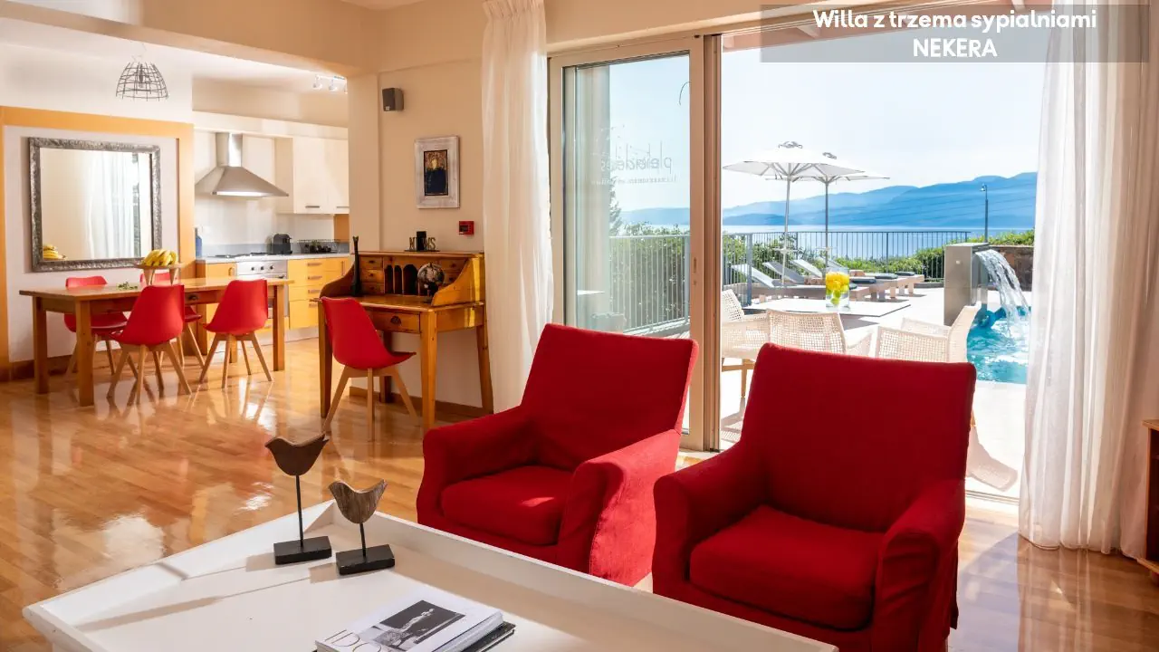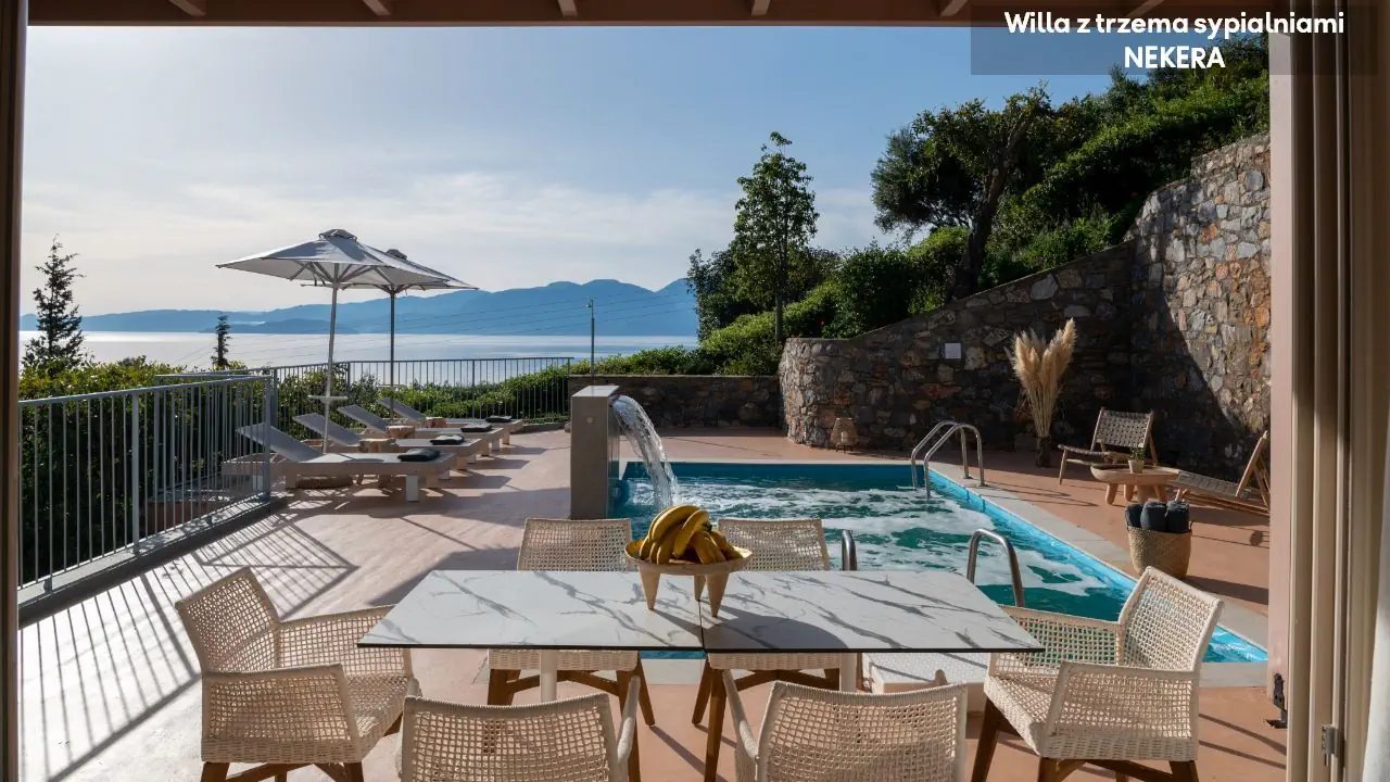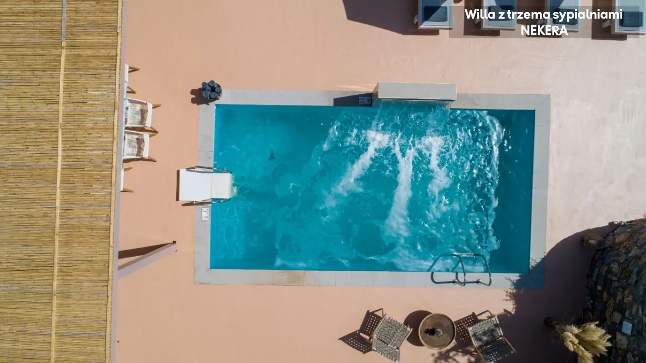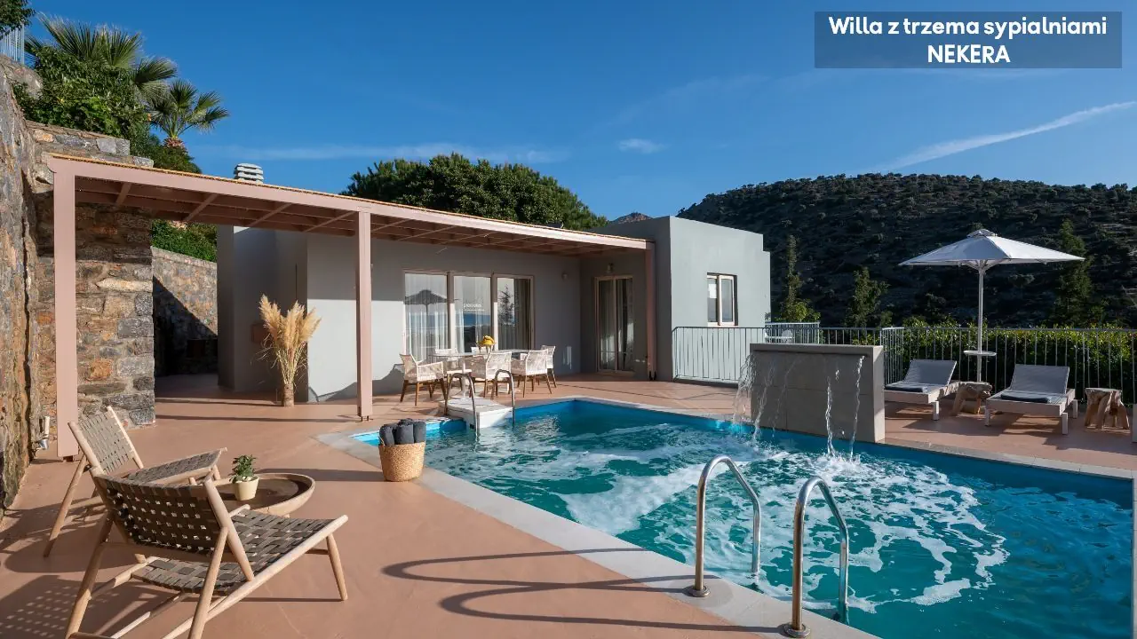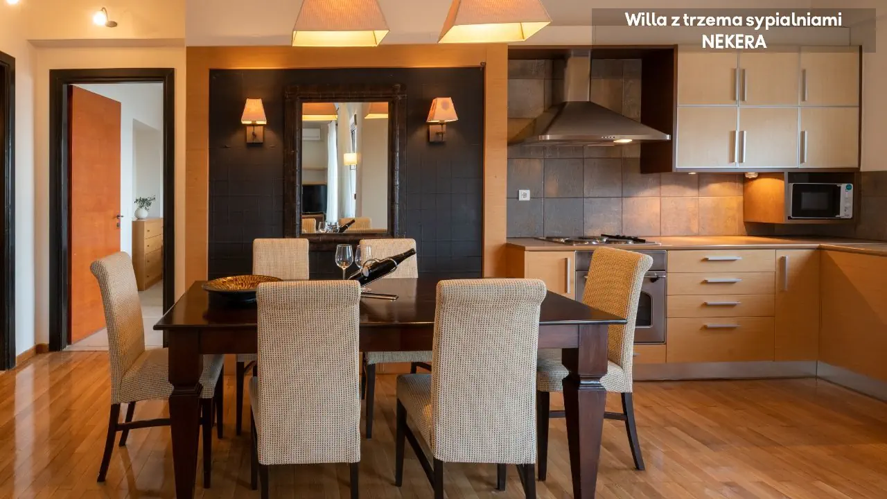 Willa z dwoma sypialniami TWO BEDROOM VILLA: ok. 110 m²; mogący zakwaterować maksymalnie 5 osób (maks. 4 osoby dorosłe i 1 dziecko; maks. 2 osoby dorosłe i 3 dzieci); jedno łóżko podwójne typu king-size lub dwa łóżka pojedyncze; indywidualnie sterowana klimatyzacja, doskonale wyposażony aneks kuchenny (czteropalnikowa kuchenka, piekarnik, zmywarka, zamrażarka, lodówka, niezbędne sztućce, naczynia, drobny sprzęt AGD tj. kuchenka mikrofalowa, ekspres do kawy i herbaty, czajnik, wyciskarka do owoców, toster); dwa telewizory (28-calowy w salonie i 14-calowy w sypialni), odtwarzacz DVD/CD, Wi-Fi, telefon, sejf, zestaw do prasowania; dwie prywatne łazienki z wanną i toaletą (umywalka, ręcznik, suszarka do włosów, zestaw do parzenia kawy i herbaty, lustro, lusterko do makijażu, kapcie, szlafrok); pralka, suszarka; balkon lub taras, prywatny zewnętrzny basen, miejsce parkingowe. Willa z trzema sypialniami THREE BEDROOM VILLA: ok. 143-155 m²; mogący zakwaterować maksymalnie 6 osób (maks. 6 osoby dorosłe; maks. 2 osoby dorosłe i 4 dzieci); jedno łóżko podwójne typu king-size i dwa łóżka pojedyncze; trzy prywatne łazienki (2 z wanną i toaletą; 1 z prysznicem i toaletą); wyposażone tak, jak: Willa z dwoma sypialniami TWO BEDROOM VILLA. Dostawka/dodatkowe łóżko płatne 50 €/dzień, możliwa tylko w willi z dwoma sypialniami.