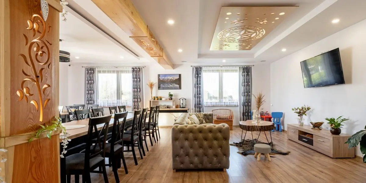 Pod Złotym Kasztanem jest ośrodkiem wypoczynkowym na Spiszu, górskim regionie między Pieninami i Tatrami. To kameralne miejsce w spokojnej wiosce oferuje wygodne noclegi ze śniadaniami, relaks w saunie i jacuzzi oraz dogodny dostęp do okolicznych górskich atrakcji i stoków narciarskich, a zaciszna, zielona okolica pozwala na odpoczynek od codziennego pośpiechu i miejskiego zgiełku. Udogodnienia: Jacuzzi, Sauna, Kącik zabaw dla dzieci, Ogród / Park, Plac zabaw dla dzieci, Parking