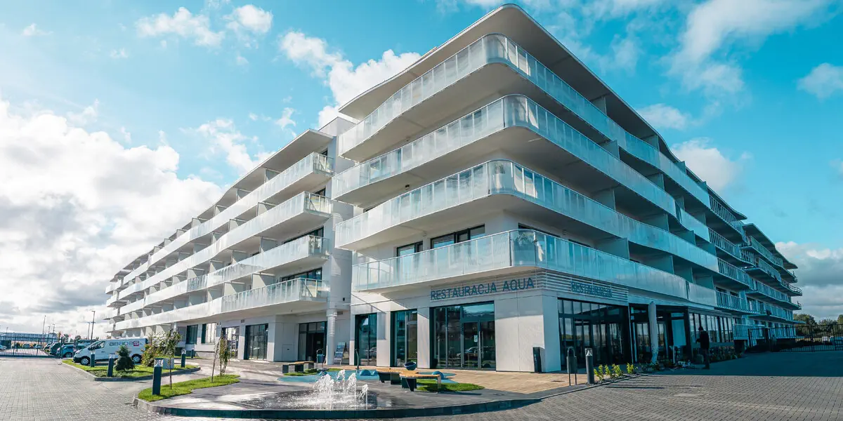 Polanki Aqua to unikatowy kompleks apartamentowy na polskim wybrzeżu. Został zaprojektowany głównie z myślą o rodzinach z dziećmi, którym dedykuje całoroczną strefę rekreacyjną. Oferuje komfortowe warunki do zamieszkania i wypoczynki o każdej porze roku. Przygotowane atrakcje mają związek z wodą i naturą, prowokując do aktywnego spędzania czasu. Wielość wodnych atrakcji pozwala poczuć się tutaj jak w aquaparku. W nowoczesnym apartamentowcu oddano w pełni wyposażone i estetycznie wykończone apartamenty. Mieszczą się tutaj komfortowe wnętrza deluxe o powierzchni 58 m2, mogące pomieścić 6 gości oraz 4-osobowe apartamenty zaaranżowane w stylach classic, nature i industrial (38-48 m2). Każdy apartament składa się z pokoju dziennego z aneksem kuchennym, kącikiem jadalnym, oddzielnej sypialni oraz łazienki i balkonu. W sypialni stoi łóżko małżeńskie 160x200 cm, a w pokoju dziennym rozkładana 2-osobowa sofa. W 3-pokojowych apartamentach deluxe mieszczą się 2 sypialnie – jedna z łóżkiem małżeńskim, druga z dwoma pojedynczymi łóżkami. W aneksie kuchennym do dyspozycji zmywarka, kuchenka indukcyjna, piekarnik, lodówka, pełne wyposażenie naczyń i akcesoriów. W łazience kabina prysznicowa, pralka, suszarka do włosów, ręczniki. Balkony wychodzą na park, zewnętrzny basen, łąkę lub dziedziniec obiektu. W apartamencie jest także odkurzacz oraz zestaw do prasowania. Udogodnienia: Basen kryty, Bar / restauracja, Plac zabaw dla dzieci, Siłownia, Pobyt z pupilem, Winda, Dla niepełnosprawnych, Parking, Płatność kartą