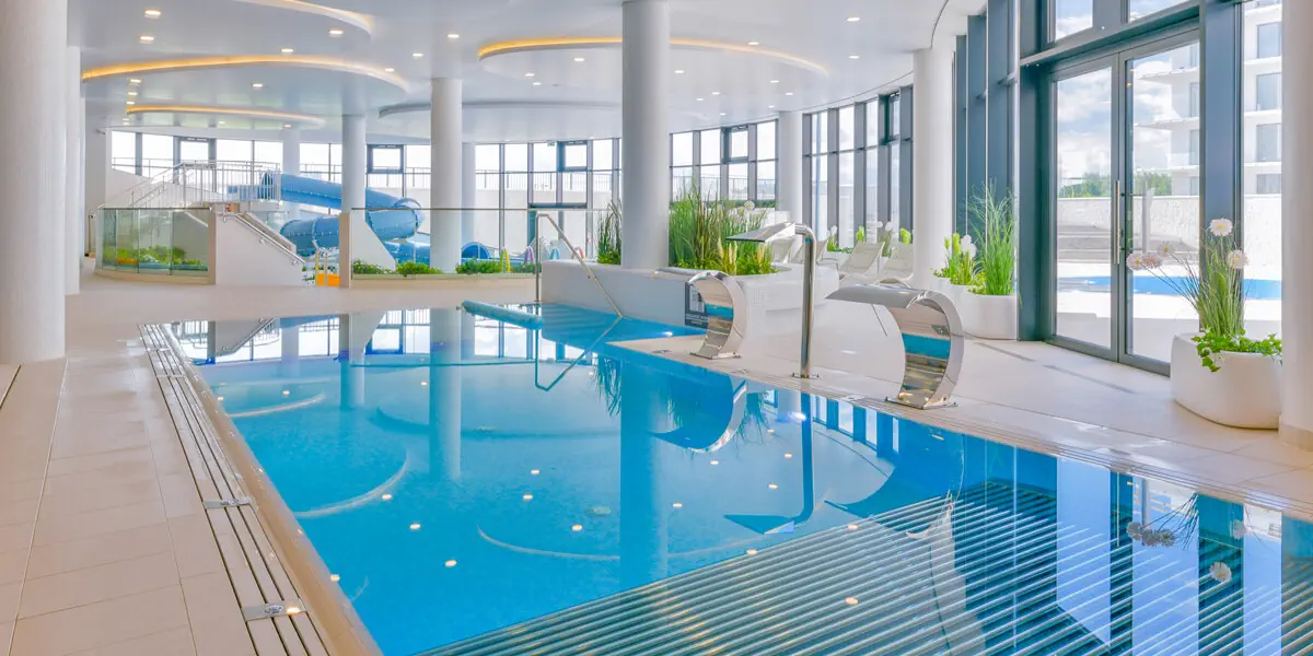- Pobyt w wybranym apartamencie - Możliwość korzystania z kompleksu basenowego (zgodnie z dostępnością) - Dostęp do strefy Wellness - Korzystanie z sali fitness - Pokój zabaw dla dzieci - Bezpłatny parking - Internet Wi-Fi - Podatek VAT