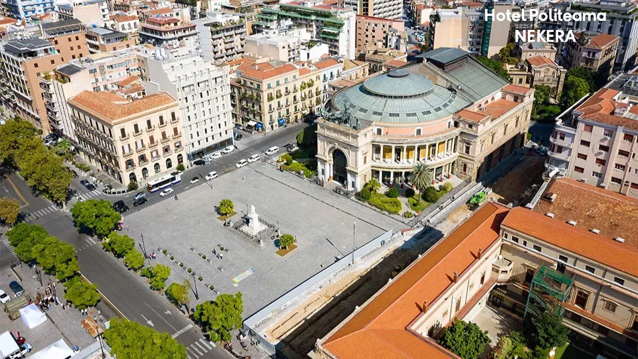 zlokalizowany jest w samym sercu Palermo, przy Piazza Ruggero Settimo, naprzeciwko Teatro Politeama Garibaldi. W pobliżu główne ulice handlowe Via della Liberta i Via Ruggero Settimo, liczne restauracje, bary i kawiarnie. Teatr Massimo oddalony o ok. 800 m, Katedra w Palermo o ok. 1,7 km, przystanek autobusowy o ok. 50 m, stacja kolejowa Palermo Centrale ok. 2,5 km. Lotnisko Palermo oddalone o ok. 30 km.