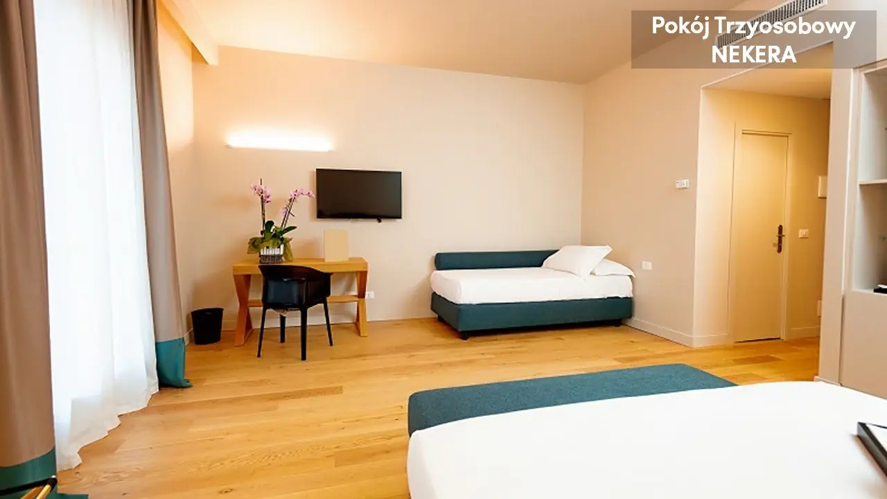 Pokój Standard dla max 3 osób dorosłych, łóżko podwójne lub 2 łóżka pojedyncze, łóżko pojedyncze, klimatyzacja, sejf, TV-Sat., telefon, minibar (płatny), prywatna łazienka (wanna lub prysznic, umywalka, lustro, toaleta, mini kosmetyki, suszarka do włosów).