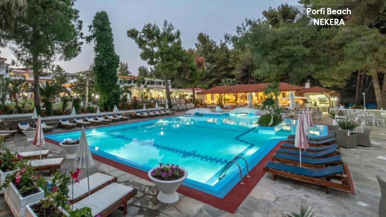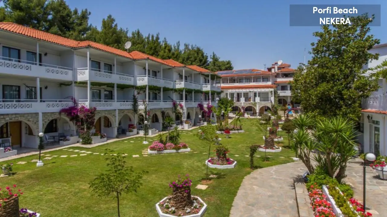 Porfi Beach Hotel to idealne miejsce na wakacyjny wypoczynek w sercu malowniczej Chalkidiki. Położony tuż przy piaszczystej plaży, oferuje swoim gościom harmonijne połączenie komfortu, relaksu i greckiej gościnności. Otoczony bujną zielenią i lazurowym morzem, stanowi doskonałą bazę do odkrywania uroków półwyspu Sithonia. To miejsce, gdzie każda chwila zamienia się w niezapomniane wspomnienie.
