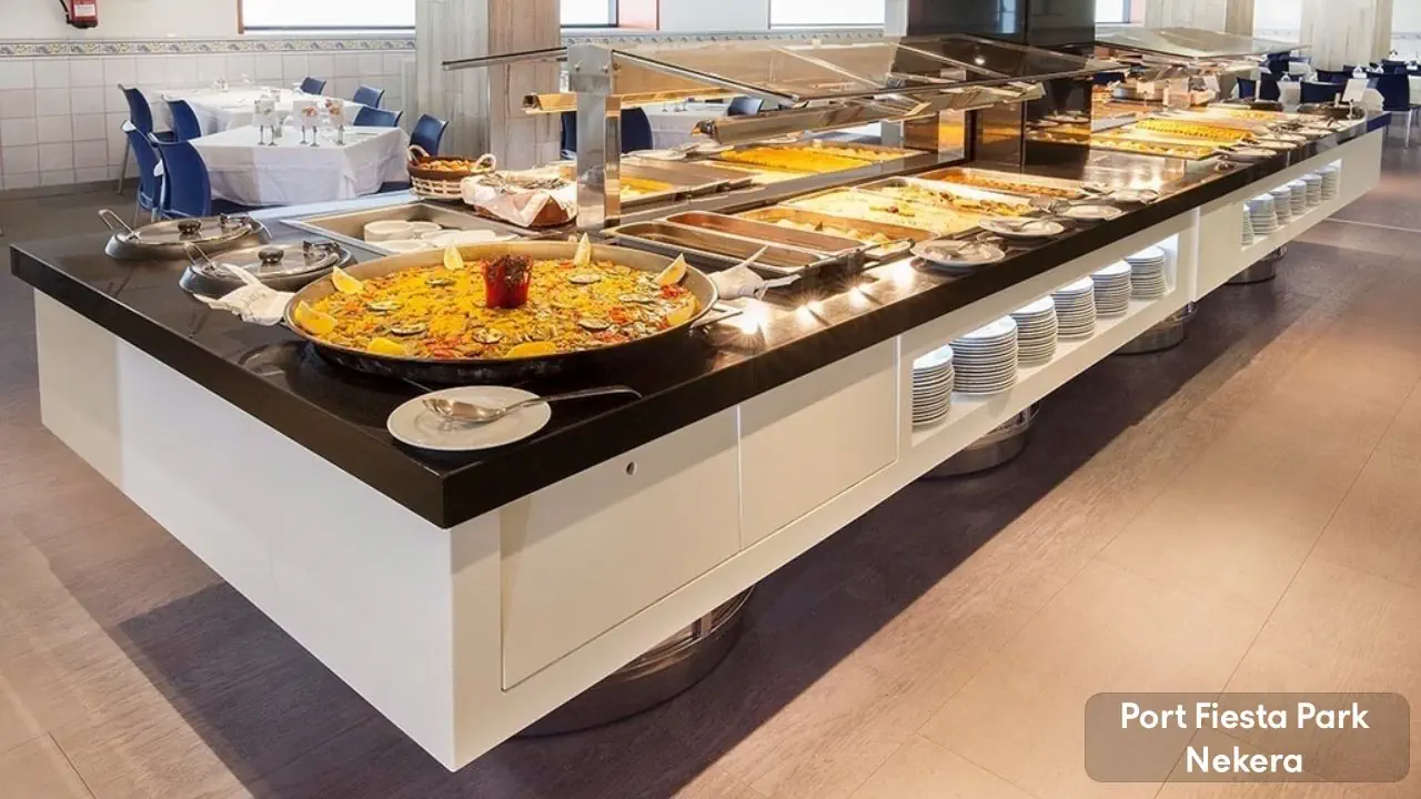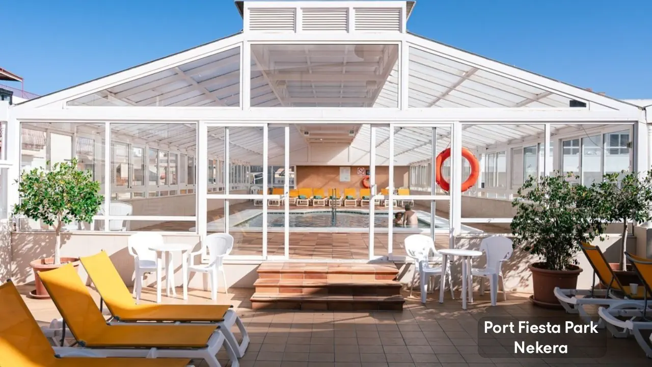 Hotel Port Fiesta Park położony jest w Benidormie, około 700m od szerokiej plaży Poniente i niespełna 15 minut spacerem od tętniącego życiem Starego Miasta. Na terenie obiektu czeka odkryty basen otoczony tarasem słonecznym i barem oraz unikalny kryty basen na dachu budynku. Goście mogą dbać o formę w nowoczesnym centrum fitness, a także zrelaksować się w saunie, korzystając nawet z hotelowego salonu fryzjerskiego dla dodatkowej wygody. Wieczorami hotel tętni życiem, organizowane są pokazy i muzyka na żywo zapewniając doskonałą rozrywkę. Port Fiesta Park oferuje też wiele udogodnień dla rodzin z dziećmi, m.in. plac zabaw i pokój gier, a dorośli docenią zarówno opcję All Inclusive z urozmaiconym bufetem, jak i serdeczną obsługę hotelu.
