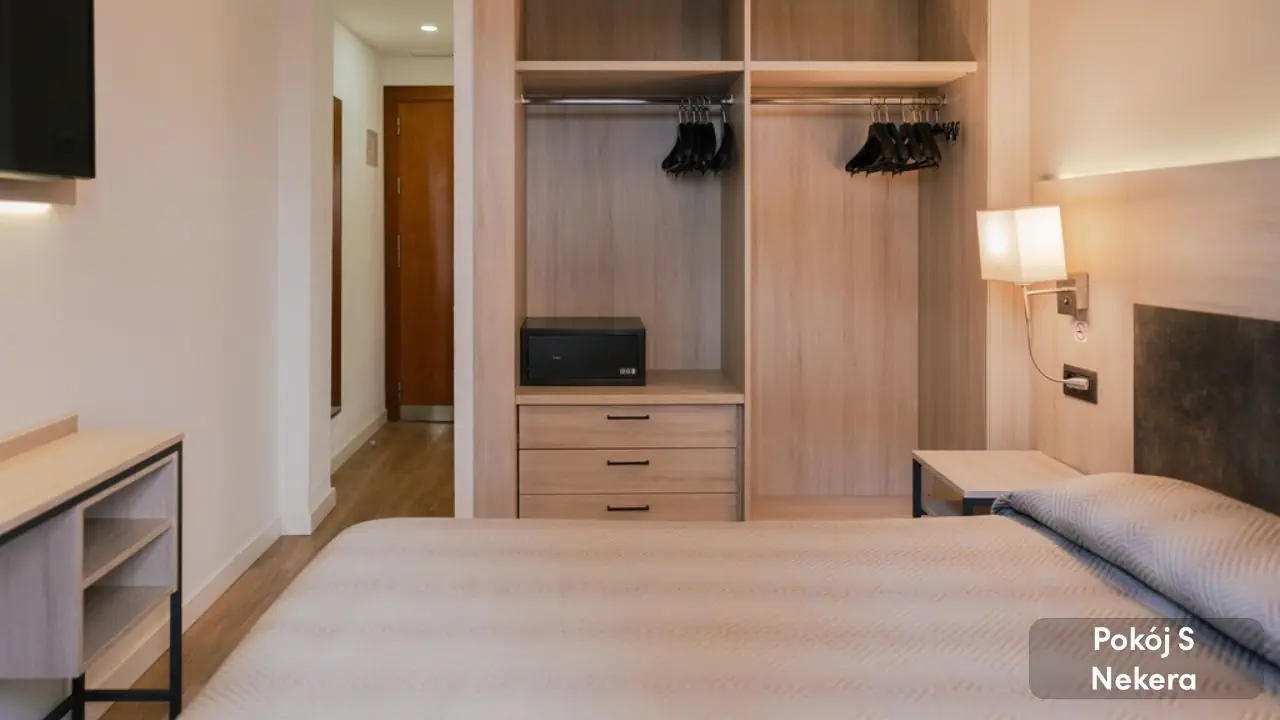 Pokój S - ok. 12 m² - przeznaczony dla 1 osoby - jedno łóżko pojedyncze - łazienka - balkon - klimatyzacja - telewizor - sejf Pokój M - ok. 16 m² - możliwość zakwaterowania 2 osób - dwa pojedyncze łóżka lub łóżko pojedyncze - reszta wyposażenia jak w pokoju S Pokój L - ok. 18 m² - dla 3 osób - 2 łóżka pojedyncze (plus dodatkowe łóżko lub rozkładana sofa) lub 3 łóżka pojedyncze, - reszta wyposażenia jak w pokoju S Pokój XL - ok. 22 m² - możliwość zakwaterowania 4 osób - dwa pojedyncze łóżka plus dwuosobowa rozkładana sofa lub cztery pojedyncze łóżka, w zależności od dostępnościc -reszta jak w pokowyposażenia jak w pokoju S