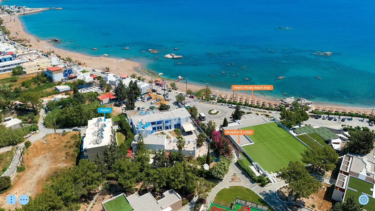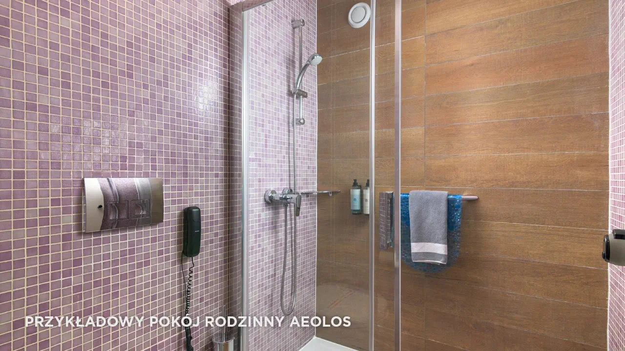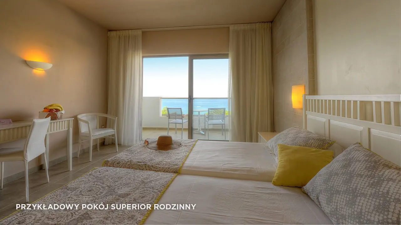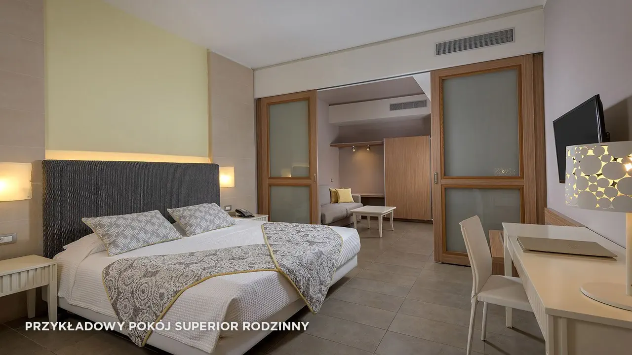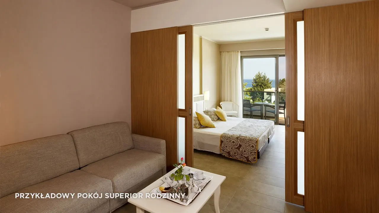 Standard• 2-3 os. (ok. 21-24 m2)• dostawka dla 3. osoby (rozkładana sofa)• klimatyzacja indywidualna (bezpłatna)• Wi-Fi (bezpłatne)• sejf (bezpłatny)• TV-SAT, telefon• mini-lodówka• zestaw do kawy/herbaty• łazienka - wanna/prysznic, suszarka• balkon lub taras• widok na morze za dopłatąRodzinny Aeolos• 2-4 os. (ok. 23 m2)• dostawka dla 1. i 2. dziecka (łóżko piętrowe lub sofa)• dwa pomieszczenia oddzielone drzwiami• wyposażony jak pokój standard• balkon lub taras• widok na morze za dopłatą• zlokalizowany w budynku bocznym AeolosSuperior rodzinny• 3-4 os. (ok. 32-38 m2)• dostawka dla 3. i 4. osoby (rozkładana sofa)• sypialnia i pokój dzienny oddzielone przesuwnymi drzwiami• wyposażony jak pokój standard• widok na ogród lub góry• balkon lub taras