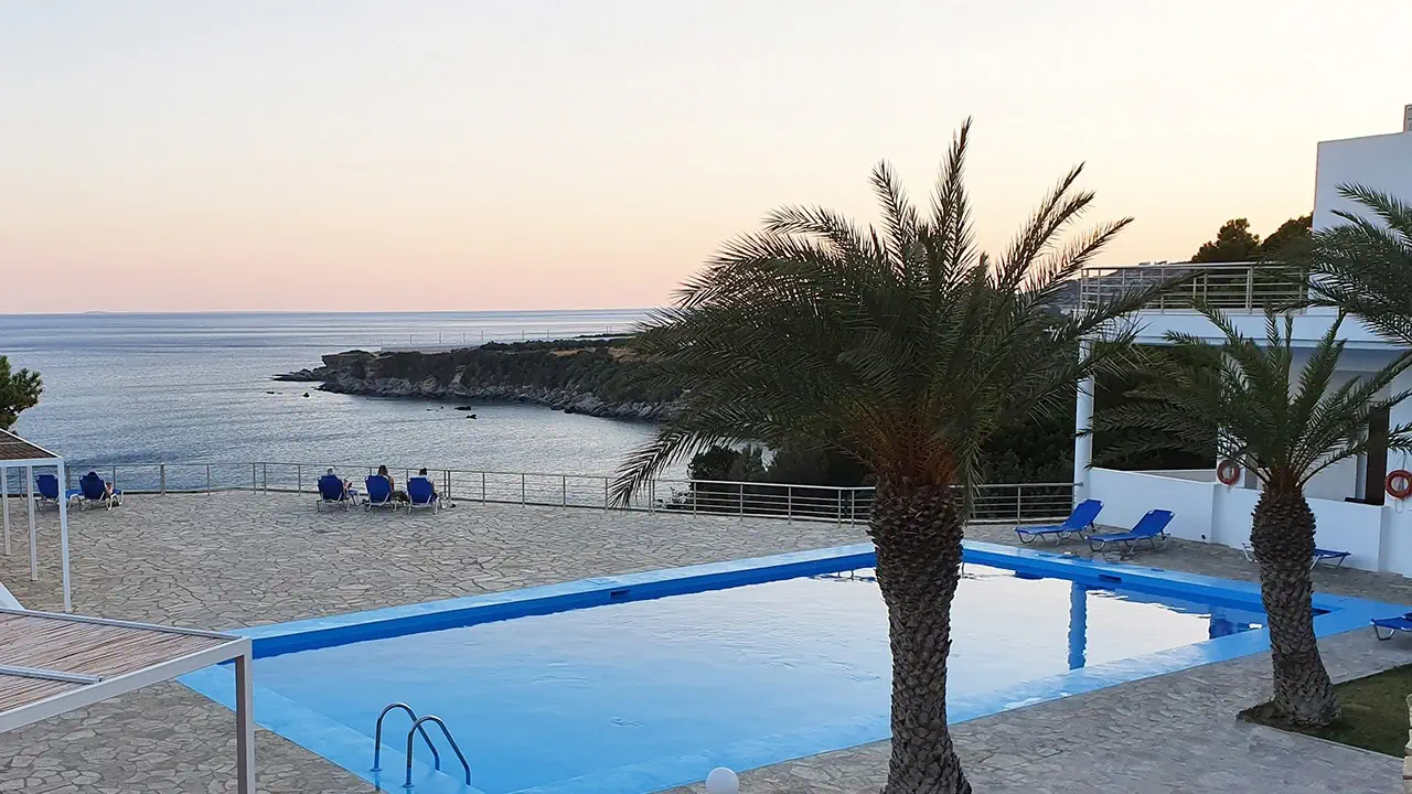 Kameralny hotel na wzgórzu, kilka kroków od plaży - idealne miejsce na wypoczynek w greckim rytmie siga-siga. Cisza i leniwie płynący czas zapewniają błogi wypoczynek. Ponadto dobra baza wypadowa do zwiedzania uroków południowej Krety