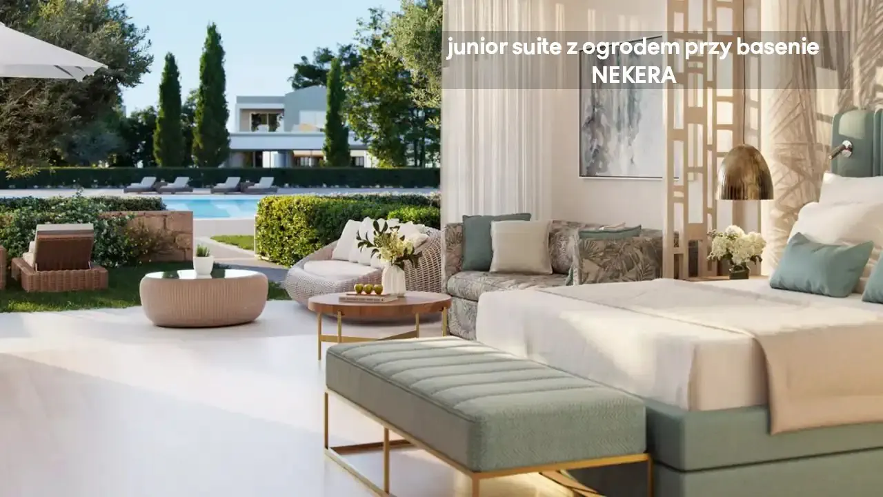Junior suita z prywatnym ogrodem JUNIOR SUITE PRIVATE GARDEN: ok. 48 m2, mogący zakwaterować dwie osoby dorosłe i dwójkę dzieci; Wi-Fi, TV, klimatyzacja, minibar, sejf, prywatna łazienka (prysznic/wanna, toaleta, suszarka do włosów, klapki, szlafrok), prywatny ogród. Suita rodzinna z prywatnym ogrodem FAMILY SUITE PRIVATE GARDEN. Suita z jedną sypialnią i balkonem ONE BEDROOM SUITE GRAND BALCONY. Suita z jedną sypialnią i prywatnym ogrodem ONE BEDROOM SUITE PRIVATE GARDEN. Suita deluxe z jedną sypialnią i balkonem DELUXE ONE BEDROOM SUITE GRAND BALCONY. Suita rodzinna z dwoma sypialniami i prywatnym ogrodem TWO BEDROOM FAMILY SUITE PRIVATE GARDEN. Suita rodzinna z trzema sypialniami i balkonem THREE BEDROOM FAMILY SUITE GRAND BALCONY. Suita rodzinna z trzema sypialniami i prywatnym basenem THREE BEDROOM FAMILY SUITE PRIVATE POOL.