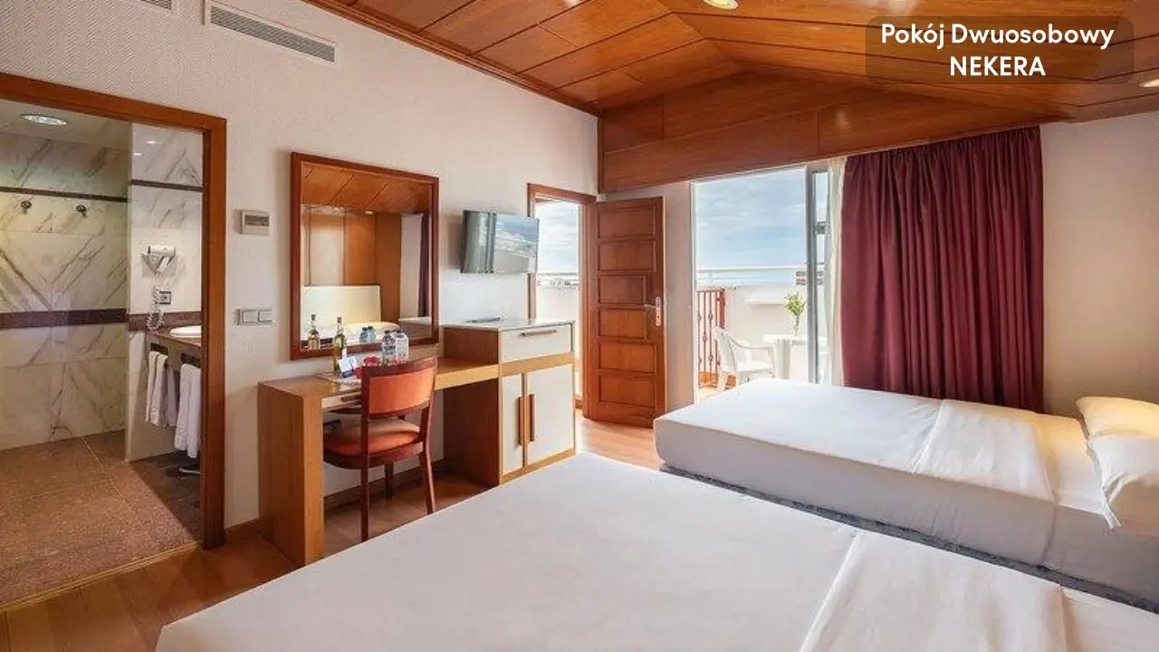 Noclegi, wyżywienie zgodnie z rezerwacją, telefoniczną opiekę rezydenta. Dodatkowo w przypadku imprez pakietowych z przelotem, oprócz ww. świadczeń w cenie zawarty jest: przelot, opłata lotniskowa, opłata za wylot z lotniska lokalnego, transfer lotnisko-hotel-lotnisko (chyba, że dana oferta stanowi inaczej), ubezpieczenie dla imprez turystycznych, bezpośrednia opieka polskojęzycznego rezydenta - w sezonie letnim (wakacyjnym): Kreta, Rodos, Turcja (Riwiera), Majorka, Bułgaria, całorocznie: Malta, na pozostałych kierunkach opieka telefoniczna lub przez czat w serwisie moja.nekera.pl. W przypadku imprez turystycznych opartych o przeloty przewóz bagażu może być nieuwzględniony w cenie. Cena uzależniona jest m.in. od przewoźnika oraz terminu wyjazdu, należy ją zweryfikować podczas zakupu. Linie lotnicze, w których bagaż jest w cenie (20 kg bagaż główny oraz bagaż podręczny) - przeloty czarterowe: Enter Air, LOT (dla wylotów na Rodos), Sky Express, Holiday Europe, European Air Charter, Ryan Sun (dla wylotów na Rodos) oraz przeloty rejsowe: Sun Express, Corendon, Pegasus Airlines, Emirates, Fly Dubai, Quatar Airlines, Air France, Austrian Airlines.Przykładowe linie lotnicze, gdzie bagaż jest dodatkowo płatny to: FR (Ryanair), W6 (WizzAir), Easy Jet. Podane godziny serwowania posiłków oraz funkcjonowania poszczególnych elementów infrastruktury hotelowej mogą ulec nieznacznym zmianom, ze względu na sezonowość, siły wyższe i inne okoliczności.