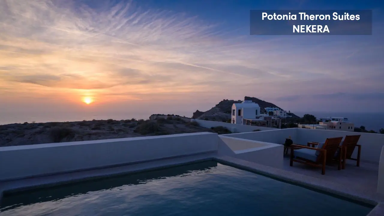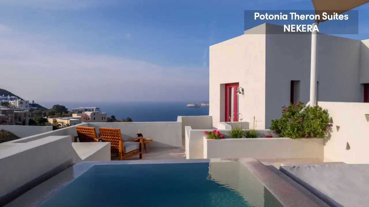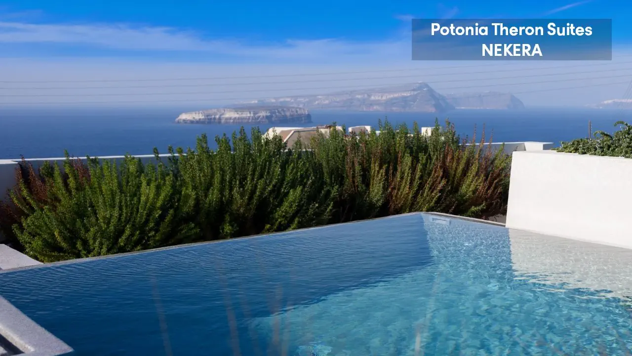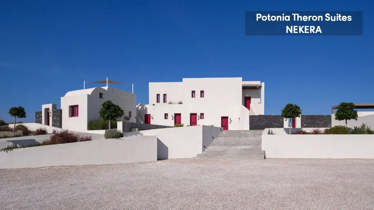 Potnia Theron Suites to luksusowy hotel znajdujący się na wyspie Santorini, w jednej z najbardziej malowniczych wiosek. Hotel oferuje eleganckie, przestronne apartamenty, często z prywatnymi basenami, które zapewniają gościom wyjątkowy komfort oraz zapierające dech w piersiach widoki na Morze Egejskie i wulkan. Charakterystyczne dla hotelu są tradycyjne, cykladzkie elementy architektoniczne, które w połączeniu z nowoczesnym wystrojem tworzą idealne warunki do relaksu.