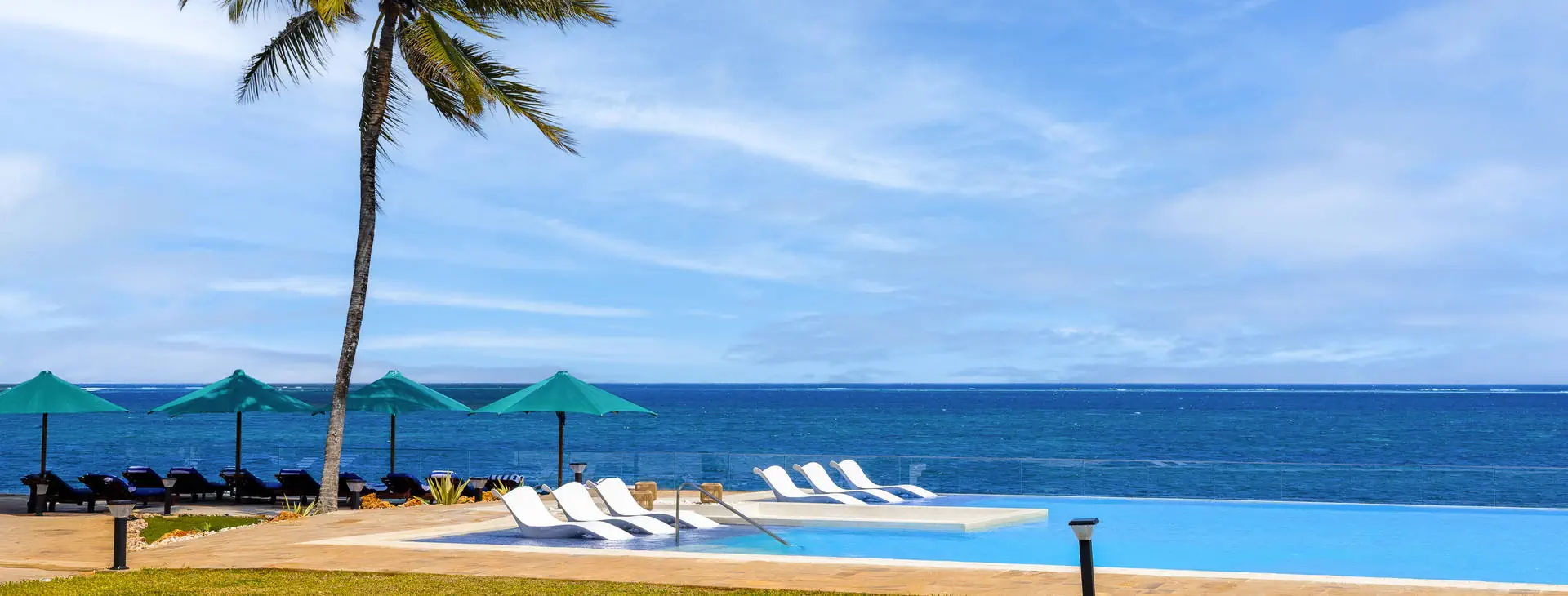 Położenie: Hotel położony na północnym wybrzeżu Mombasy, wybudowany w typowo afrykańskim stylu i otoczony tropikalnym ogrodem. Hotel składa się z trzech 2-piętrowych budynków, w których rozmieszczone są pokoje. Niedaleko centrum handlowe z restauracjami i dyskotekami. Do centrum Mombasy ok. 12 km, ok. 25 km do lotniska w Mombasie. Plaża: Hotel położony bezpośrednio przy szerokiej, piaszczystej plaży. Leżaki, parasole i ręczniki kąpielowe dostępne bezpłatnie na terenie hotelu przy plaży. Do dyspozycji gości: Recepcja 24 h, 2 restauracje: główna Ziwani oferująca dania kuchni międzynarodowej, orientalnej i wegetariańskiej, a’la carte Karibu Grill serwująca grillowane mięsa i ryby. 4 bart: Karibu Snack Bar serwujący przekąski w ciągu dnia, bar główny Dhow otwarty 24 h (po 23:30 za opłatą), Karibu (10:00-23:30) i Ziwani przy basenie (10:00-23:30). Na terenie hotelu znajdują się 2 baseny ze słodką wodą o nieregularnym kształcie, jeden z jacuzzi oraz brodzik dla dzieci. Dodatkowo: sala telewizyjna, kantor, sklepik z pamiątkami, sala konferencyjna, mini SPA. Wyżywienie: All Inclusive: śniadania (07:00-10:00), późne śniadania kontynentalne (10:00-10:30), lunche (12:30-14:30) i obiadokolacje (19:00-22:00) w formie bufetu. Przekąski w barze Karibu (10:00-17:30), podwieczorek w godz. 16:00-17:30. Lokalne napoje bezalkoholowe i alkoholowe w godzinach 10:00-23:30. Trzy razy w tygodniu hotel organizuje kolacje tematyczne, m.in. wieczory afrykańskie. Wyżywienie na objeździe: śniadania, obiady i kolacje zgodnie z opisem w programie wycieczki. Program sportowy i animacyjny: Hotel prowadzi dzienne i wieczorne animacje m.in.: pokazy akrobatyczne, taneczne, wieczory z muzyką na żywo. Ponadto: boisko do squasha (sprzęt dostępny po opłaceniu zwrotnego depozytu), jedna lekcja nurkowania w basenie, siłownia, aqua aerobik, siatkówka i piłka nożna na plaży, tenis stołowy, bilard, rzutki. Dla dzieci: mini klub (10:00-18:00). Za opłatą: sporty wodne na plaży (snorkeling, windsurfing, nurkowanie), rejsy na rafę koralową, wyprawy na połów ryb. Internet: Bezpłatny Internet Wi-Fi w ogólnodostępnych częściach hotelu. Kącik internetowy dodatkowo płatny (ok. 4 USD/30 min.). Kategoria lokalna: Bamburi Beach*** / zakwaterowanie na objeździe*** Strona www: