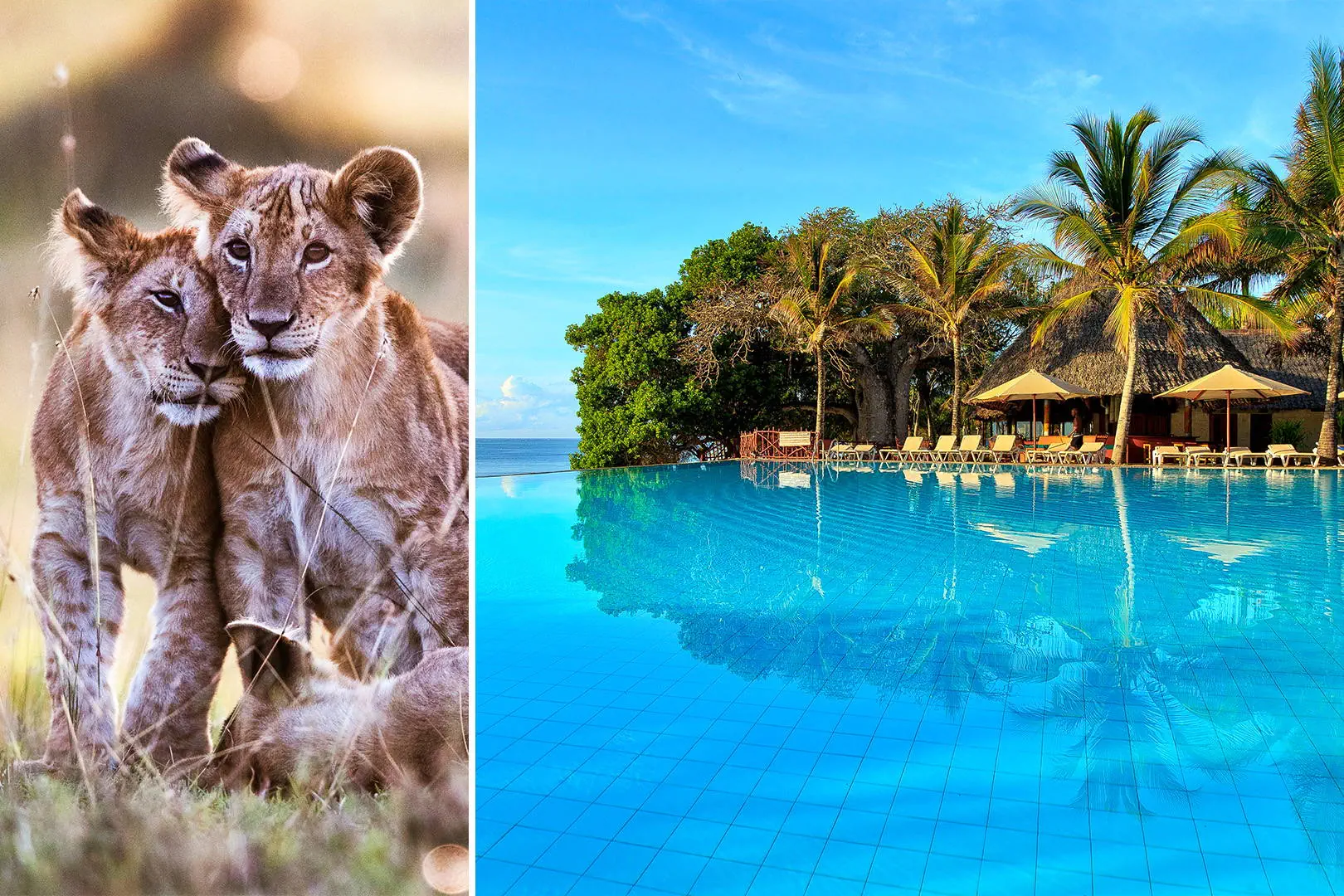 Położenie: Ekskluzywny i elegancki hotel łączy nowoczesne udogodnienia w klasycznym arabskim stylu, otoczony pięknym ogrodem z tropikalną roślinnością, położony na rozległym terenie o pow. ok. 80 ha. Hotel składa się z budynku głównego oraz budynków bocznych. Do lotniska w Mombasie ok. 45 km. Plaża: Tuż przy przepięknej, szerokiej plaży Diani z drobnym, białym piaskiem. Leżaki, parasole i ręczniki kąpielowe dostępne bezpłatnie w hotelowym ogrodzie z widokiem na Ocean Indyjski. Do dyspozycji gości: Recepcja 24 h, 3 restauracji: główna Karibu, Jodari z widokiem na plażę, Maridadi serwująca głównie dania kuchni azjatyckiej ze snack barem (10:00-17:00) oraz 2 restauracje a’la carte płatne dodatkowo: Marhaba - kuchnia orientalna i Tangezi - dania kuchni włoskiej oraz owoce morza (otwarta w szczycie sezonu). 6 barów: Sultan lobby bar, przy basenie, Tapa Tapa, Suli Suli (10:00-24:00), Porini przy amfiteatrze (21:00-24:00) oraz Swahili lobby bar (otwarty w szczycie sezonu). Goście mogą korzystać z 3 basenów (w tym jeden 3-kaskadowy), każdy z tarasem słonecznym z bezpłatnymi leżakami, parasolami i ręcznikami kąpielowymi, brodzik dla dzieci i jacuzzi. Za opłatą: kantor, sklep z pamiątkami, wypożyczalnia samochodów, centrum SPA. Pokoje: Hotel oferuje swoim Gościom 323 pokoje o różnym standardzie zlokalizowane w 3 częściach hotelu: Baobab (pokoje standardowe w budynku głównym z widokiem na ocena, możliwe łączonie dwóch pokoi wewnętrznymi drzwiami lub w bungalowach część z widokiem na ogród), Maridadi (pokoje typu superior, deluxe) oraz Kole Kole (pokoje typu superior, deluxe i suite). Pokoje standardowe o pow. ok. 31 m2 (max. 3 os. dorosłych) wyposażone są w: łazienkę z prysznicem, suszarkę do włosów, indywidualnie sterowaną klimatyzację, mini lodówkę, TV Sat., bezpłatny sejf, telefon, zestaw do przygotowywania kawy i herbaty, nieduży balkon lub taras. Pokoje superior, o pow. ok. 63 m2, (max. 3 os. dorosłych lub rodzina 2+2), dodatkowo posiadają zestaw kosmetyków i szlafroki. Dostępne również pokoje deluxe o pow. ok. 70 m2 max. 3 os. dorosłe, dodatkowo wanna w łazience. Wyżywienie: All Inclusive: śniadanie (07:00-10:00), lunch (12:30-14:00) i obiadokolacja (19:30-21:30) w formie bogatego bufetu. Goście mogą korzystać z dowolnej restauracji na terenie na obiektu. Lokalne napoje bezalkoholowe i alkoholowe oraz przekąski w godzinach otwarcia barów (10:00-24:00). 3 razy w tygodniu kolacje tematyczne m.in. African Jungle Night, La Dolce Vita. Wyżywienie na objeździe: śniadania, obiady i kolacje zgodnie z opisem w programie wycieczki. Program sportowy i animacyjny: Hotel prowadzi bogate animacje w ciągu dnia i wieczorem m.in.: pokazy taneczne, akrobatyczne, spektakle w amfiteatrze,. Ponadto: 3 korty tenisowe (oświetlenie i sprzęt w cenie), siatkówka plażowa, tenis stołowy, bilard, rzutki, łucznictwo, aqua aerobik, fitness, boccia, dyskoteka. Dla dzieci: gry i zabawy w mini klubie. Płatne dodatkowo: centrum SPA, siłownia, sporty wodne na plaży m.in.: windsurfing, kitesurfing, nurkowanie, wyprawy na ryby. Internet: Bezpłatny Internet Wi-Fi na terenie całego hotelu (tylko w zakresie obsługi poczty, przeglądania stron internetowych, socoal media, 2 urządzenia/pokój). Kategoria lokalna: Baobab Beach Resort and Spa **** / zakwaterowanie na objeździe *** Strona www: