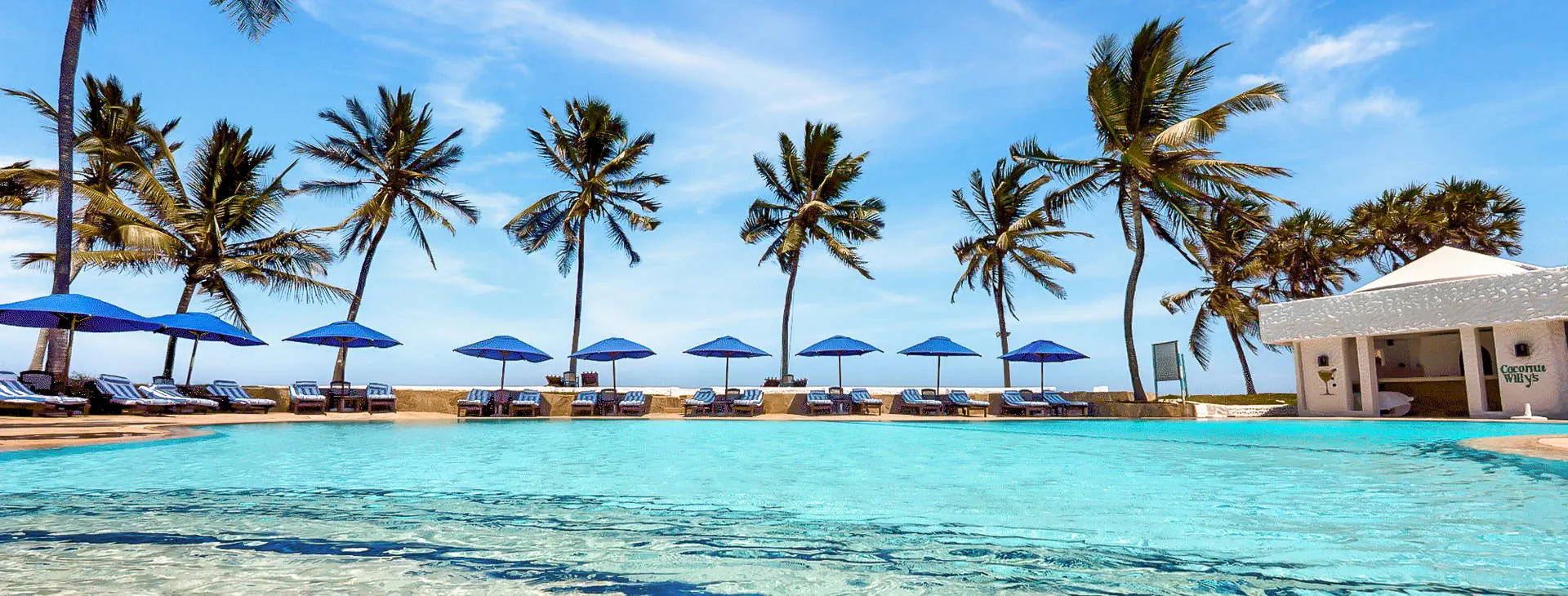 Położenie: Ten stylowy hotel, zbudowany w oryginalnym stylu swahili, położony jest tuż przy urokliwej plaży Diani, w cichym i spokojnym otoczeniu palm i baobabów. Hotel składa się z kilkunastu 1- piętrowych budynków otoczonych zadbanym, tropikalnym ogrodem. Do centrum niewielkiej miejscowości Ukunda ok. 4 km, do centrum Mombasy ok. 45 km. Do lotniska w Mombasie ok. 55 km. Plaża: Hotel położony przy jednej z najpiękniejszych plaż w Kenii – Diani Beach. Szeroka, z drobnym, białym piaskiem oraz łagodnym zejściem do oceanu, otoczona jest palmami dając wytchnienie w upalne, słoneczne dni. Leżaki, parasole i ręczniki przy hotelowej części plaży dostępne bezpłatnie. Do dyspozycji gości: Recepcja 24 h, przestronne lobby, 2 restauracje: główna i a'la carte serwująca owoce morza i ryby położona przy basenie (płatna dodatkowo), bar główny Sultans Lounge, Dhow Bar przy plaży (10:00-18:00) oraz bar przy basenie. Ponadto: basen główny oraz 3 mniejsze baseny na terenie ogrodu (oczka wodne), leżaki, parasole i ręczniki kąpielowe dostępne bezpłatnie przy basenie. Płatne dodatkowo: mini kantor w recepcji, sala konferencyjna, sklep z pamiątkami, mini SPA. Pokoje: Hotel posiada 100 pokoi położonych w dwupoziomowych bungalowach, w których mieści się od 2 do 5 pokoi, każdy z oddzielnym wejściem. Eleganckie pokoje standardowe (typu Club) urządzone w afrykańskim stylu, o pow. ok. 30 m2, dla max 3 os. dorosłych, wyposażone są w: łazienkę z prysznicem, suszarkę do włosów, indywidualnie sterowaną klimatyzację, wiatrak, moskitierę, TV Sat., telefon, sejf, balkon lub taras z widokiem na ogród. Za dopłatą pokoje z częściowym widokiem na ocean. Pokoje z widokiem na ocean na potwierdzenie. Wyżywienie: Śniadania w formie bufetu (06:30-10:00) i obiadokolacje (19:30-22:00) serwowane do stolika (do wyboru z 5 daniowego menu) lub w formie bufetu (w zależności od obłożenia hotelu). W godzinach 16:00-17:00 herbata i przekąski w cenie. Za dopłatą opcja Full Board (dodatkowo lunche w formie bufetu lub serwowany do stolika w zależności od obłożenia hotelu, w godzinach 12:30-14:30) )lub All Inclusive Light (dodatkowo lokalne napoje bezalkoholowe i alkoholowe podczas posiłków: parzona kawa i herbata, koktajle, piwo, wino, mocne alkohole). Pozostałe napoje dodatkowo płatne. Wyżywienie na objeździe: śniadania, obiady i kolacje zgodnie z opisem w programie wycieczki. Program sportowy i animacyjny: Hotel oferuje codzienne animacje w wersji soft. Ponadto: 2 oświetlone korty tenisowe, boisko do siatkówki plażowej, plażowa piłka nożna, bilard, tenis stołowy. Do centrum sportów wodnych ok. 5 km (katamaran, windsurfing, kajaki - za dodatkową opłatą). Internet: Bezpłatny Internet Wi-Fi w lobby, restauracji i w pokojach. Kategoria lokalna: **** Jacaranda Indian Ocean Beach Resort / *** zakwaterowanie na objeździe Strona www: