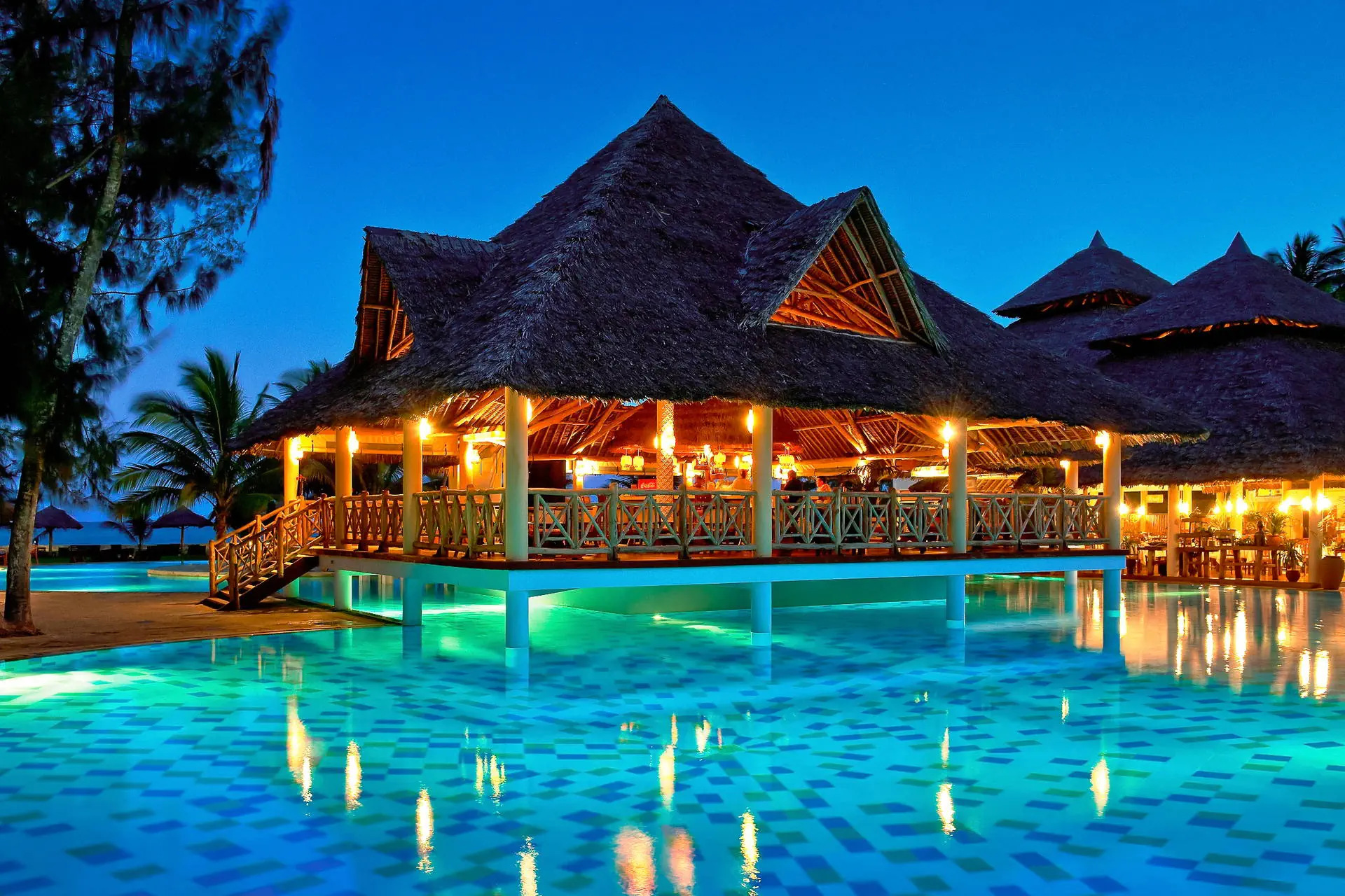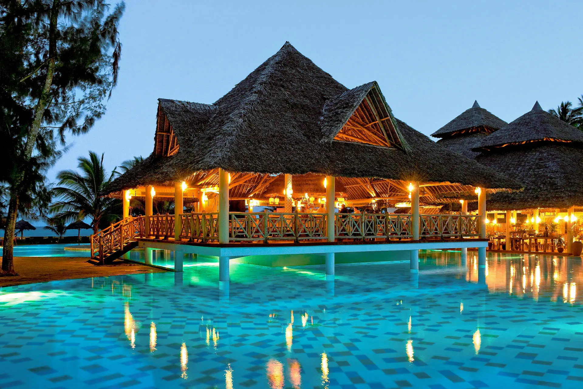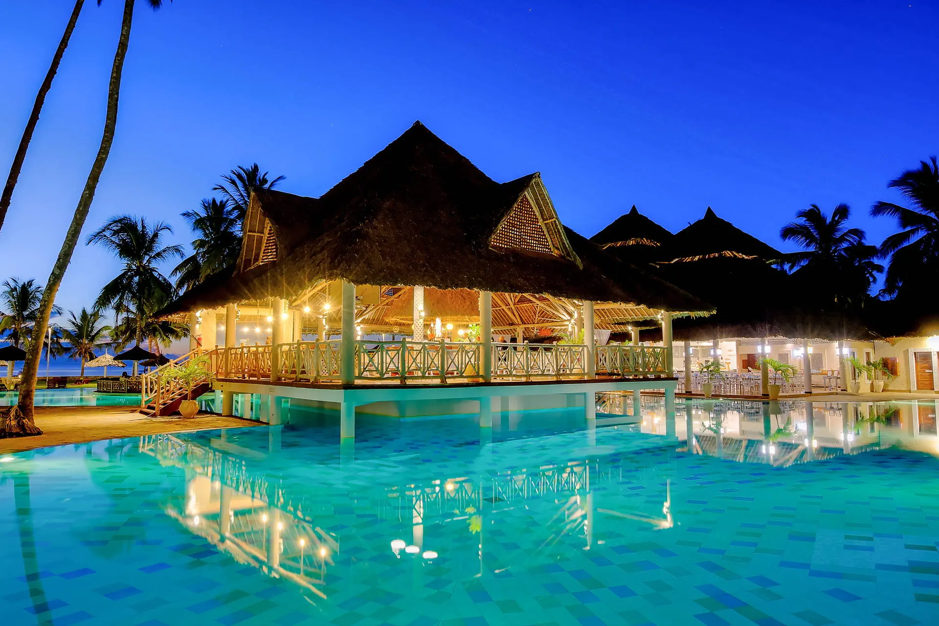 Do dyspozycji gości Recepcja 24 h, 2 restauracje: główna Mnazi oraz The Mawimbi Deck przy basenie z przepięknym widokiem na Ocean Indyjski, w ciągu dnia serwuje kawę, herbatę oraz przekąski, a wieczorami zamienia się w romantyczną restaurację serwującą owoce morza (dodatkowo płatna). 2 bary: główny oraz przy basenie. Duży basen z bezpłatnymi leżakami i parasolami. Ponadto: sala telewizyjna, butik z pamiątkami. Będąc zakwaterowanym w hotelu można korzystać z ogólnodostępnej infrastruktury hotelu Neptune Paradise Resort oraz Neptune Village (animacje). Internet Bezpłatny Internet Wi-Fi w częściach ogólnodostępnych hotelu. Kategoria lokalna ****+ Naszym zdaniem Jeden z najlepszych hoteli w Kenii o bardzo wysokim standardzie świadczonych usług, dobrym serwisie i wyśmienitej kuchni. Piękna plaża i kameralna atmosfera sprawia, że jest to doskonały hotel na romantyczny wyjazd we dwoje oraz dla osób, które szukają ciszy i spokoju. Polecamy również osobom aktywnym, amatorom windsurfingu oraz golfu ze względu na dostępność centrum sportowego w pobliskim hotelu Neptune Paradise. Plaża Hotel usytuowany jest przy pięknej, białej, piaszczystej plaży Galu. Bezpłatne leżaki, parasole oraz ręczniki plażowe dostępne na terenie hotelu przy plaży. Pokoje 60 przytulnie urządzonych pokoi deluxe (pow. ok. 34 m²) usytuowanych przy recepcji w 1-piętrowych domkach ze strzechą, z widokiem na ogród, wyposażonych w: łazienkę (prysznic, suszarka do włosów), indywidualnie sterowaną klimatyzację, moskitierę, TV Sat., sejf, telefon, mini lodówkę, zestaw do przygotowywania kawy i herbaty, duży umeblowany taras. W pokojach znajduje się 1 ogromne łóżko małżeńskie i mniejsze łóżko w ramach dostawki, brak pokoi z dwoma osobnymi łóżkami. Za dopłatą pokoje: deluxe sea side znajdujące się bliżej basenu oraz deluxe ocean front znajdujące się w pierwszym rzędzie od strony basenu, blisko restauracji głównej z częściowym widokiem na ocean. Położenie Luksusowy, kameralny hotel wybudowany w rustykalnym stylu o charakterze małej idyllicznej afrykańskiej wioski. Położony jest na południowym wybrzeżu Kenii. Do lotniska w Mombasie ok. 45 km. Program sportowy i animacyjny Animacje dostępne są w pobliskim hotelu Neptune Village. Ponadto: 2 podświetlane korty tenisowe, tenis stołowy, mini golf, windsurfing, nurkowanie, siatkówka plażowa. Niektóre usługi dodatkowo płatne. Luksusowy salon kosmetyczny oferujący masaże i stylizację włosów oraz paznokci w afrykańskim stylu (za dodatkową opłatą). Niedaleko hotelu znajduje się 18-dołkowe pole golfowe. Strona www www.neptunehotels.com Wyżywienie All Inclusive: śniadania (07:00-09:30), lunche (12:30-15:30) oraz obiadokolacje (19:00-22:00) serwowane w formie bufetu w restauracji głównej. Napoje podczas posiłków: soki, woda, herbata, kawa, lokalne wino i piwo. Napoje bezalkoholowe i lokalne alkohole serwowane w godzinach otwarcia barów (10:00-24:00).