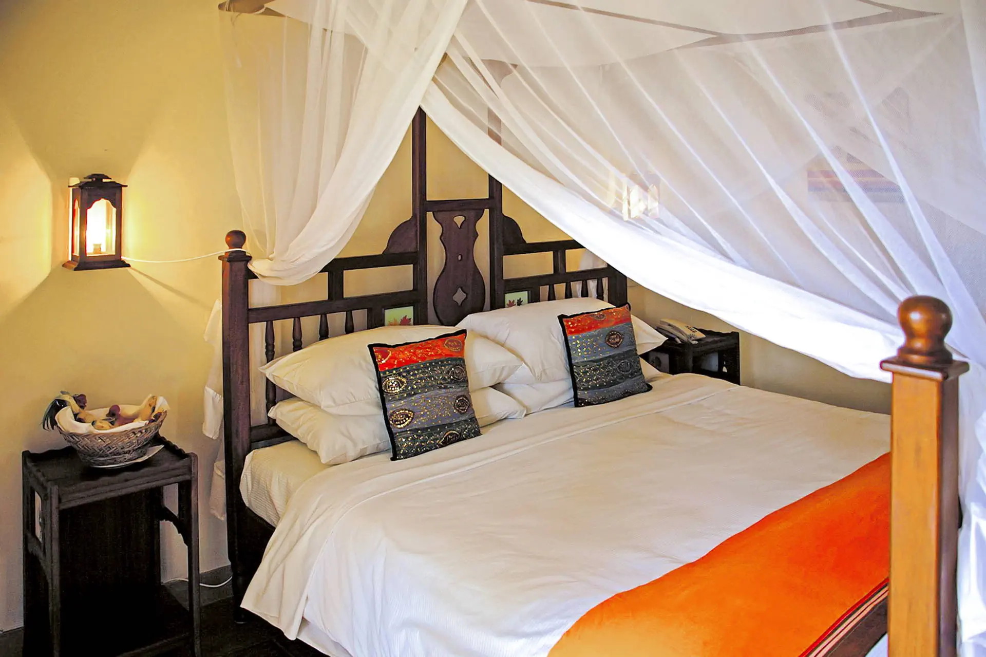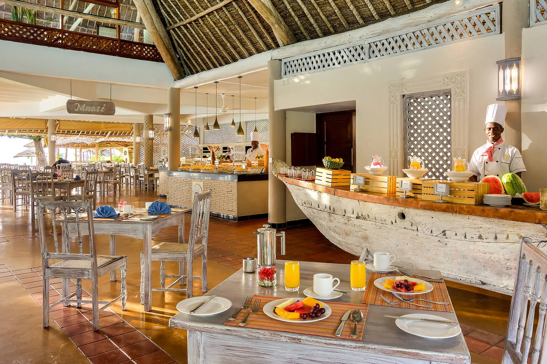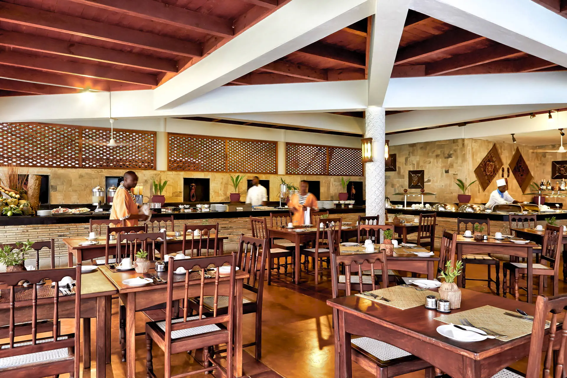 Do dyspozycji gości Recepcja 24 h, 2 restauracje: główna Mnazi oraz The Mawimbi Deck przy basenie z przepięknym widokiem na Ocean Indyjski, w ciągu dnia serwuje kawę, herbatę oraz przekąski, a wieczorami zamienia się w romantyczną restaurację serwującą owoce morza (dodatkowo płatna). 2 bary: główny oraz przy basenie. Duży basen z bezpłatnymi leżakami i parasolami. Ponadto: sala telewizyjna, butik z pamiątkami. Będąc zakwaterowanym w hotelu można korzystać z ogólnodostępnej infrastruktury hotelu Neptune Paradise Resort oraz Neptune Village (animacje). Internet Bezpłatny Internet Wi-Fi w częściach ogólnodostępnych hotelu. Kategoria lokalna ****+ Naszym zdaniem Jeden z najlepszych hoteli w Kenii o bardzo wysokim standardzie świadczonych usług, dobrym serwisie i wyśmienitej kuchni. Piękna plaża i kameralna atmosfera sprawia, że jest to doskonały hotel na romantyczny wyjazd we dwoje oraz dla osób, które szukają ciszy i spokoju. Polecamy również osobom aktywnym, amatorom windsurfingu oraz golfu ze względu na dostępność centrum sportowego w pobliskim hotelu Neptune Paradise. Plaża Hotel usytuowany jest przy pięknej, białej, piaszczystej plaży Galu. Bezpłatne leżaki, parasole oraz ręczniki plażowe dostępne na terenie hotelu przy plaży. Pokoje 60 przytulnie urządzonych pokoi deluxe (pow. ok. 34 m²) usytuowanych przy recepcji w 1-piętrowych domkach ze strzechą, z widokiem na ogród, wyposażonych w: łazienkę (prysznic, suszarka do włosów), indywidualnie sterowaną klimatyzację, moskitierę, TV Sat., sejf, telefon, mini lodówkę, zestaw do przygotowywania kawy i herbaty, duży umeblowany taras. W pokojach znajduje się 1 ogromne łóżko małżeńskie i mniejsze łóżko w ramach dostawki, brak pokoi z dwoma osobnymi łóżkami. Za dopłatą pokoje: deluxe sea side znajdujące się bliżej basenu oraz deluxe ocean front znajdujące się w pierwszym rzędzie od strony basenu, blisko restauracji głównej z częściowym widokiem na ocean. Położenie Luksusowy, kameralny hotel wybudowany w rustykalnym stylu o charakterze małej idyllicznej afrykańskiej wioski. Położony jest na południowym wybrzeżu Kenii. Do lotniska w Mombasie ok. 45 km. Program sportowy i animacyjny Animacje dostępne są w pobliskim hotelu Neptune Village. Ponadto: 2 podświetlane korty tenisowe, tenis stołowy, mini golf, windsurfing, nurkowanie, siatkówka plażowa. Niektóre usługi dodatkowo płatne. Luksusowy salon kosmetyczny oferujący masaże i stylizację włosów oraz paznokci w afrykańskim stylu (za dodatkową opłatą). Niedaleko hotelu znajduje się 18-dołkowe pole golfowe. Strona www www.neptunehotels.com Wyżywienie All Inclusive: śniadania (07:00-09:30), lunche (12:30-15:30) oraz obiadokolacje (19:00-22:00) serwowane w formie bufetu w restauracji głównej. Napoje podczas posiłków: soki, woda, herbata, kawa, lokalne wino i piwo. Napoje bezalkoholowe i lokalne alkohole serwowane w godzinach otwarcia barów (10:00-24:00).